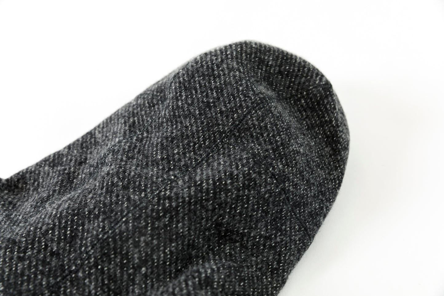 やや肉感のある混率(毛 45% 和紙 44% カシミア 11%)で編み立てられたボディは、霜降りがかった独特の表情。