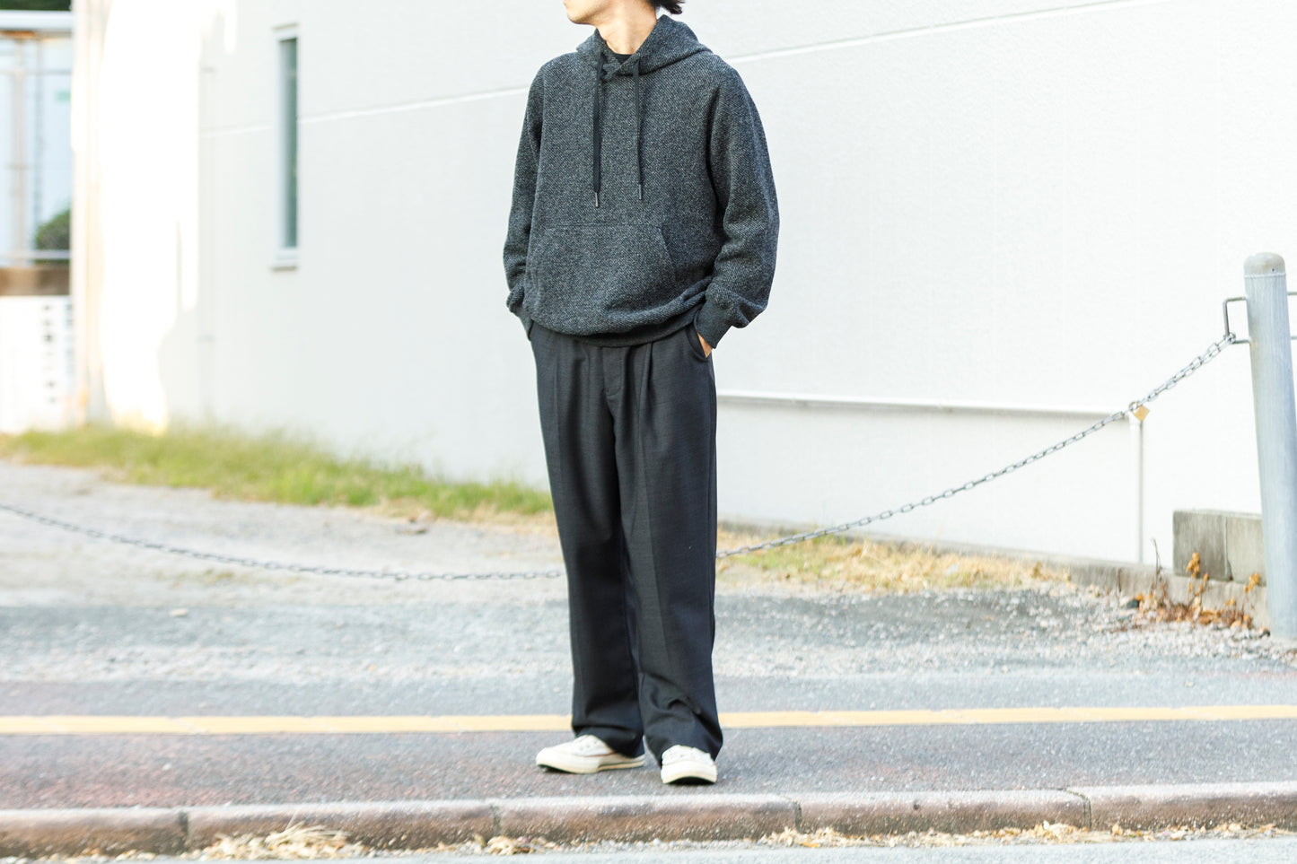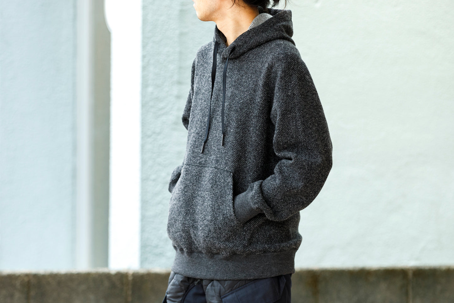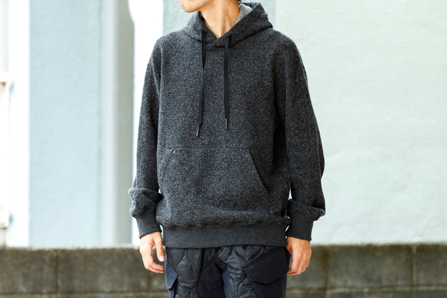 ウールでパジャマを作りたいという発想からスタートしたルームウエアシリーズからリリースされた、24251-wo / ウール&和紙・モザイクニットパーカー。