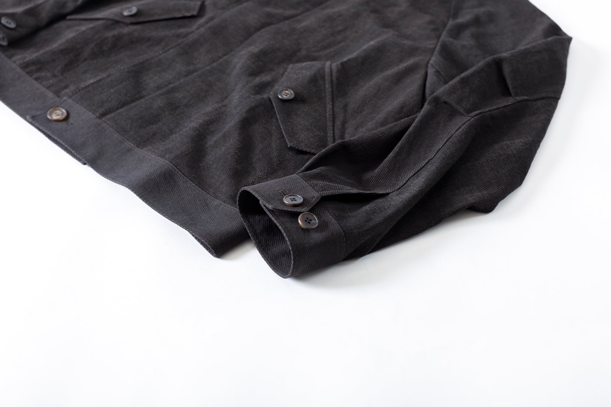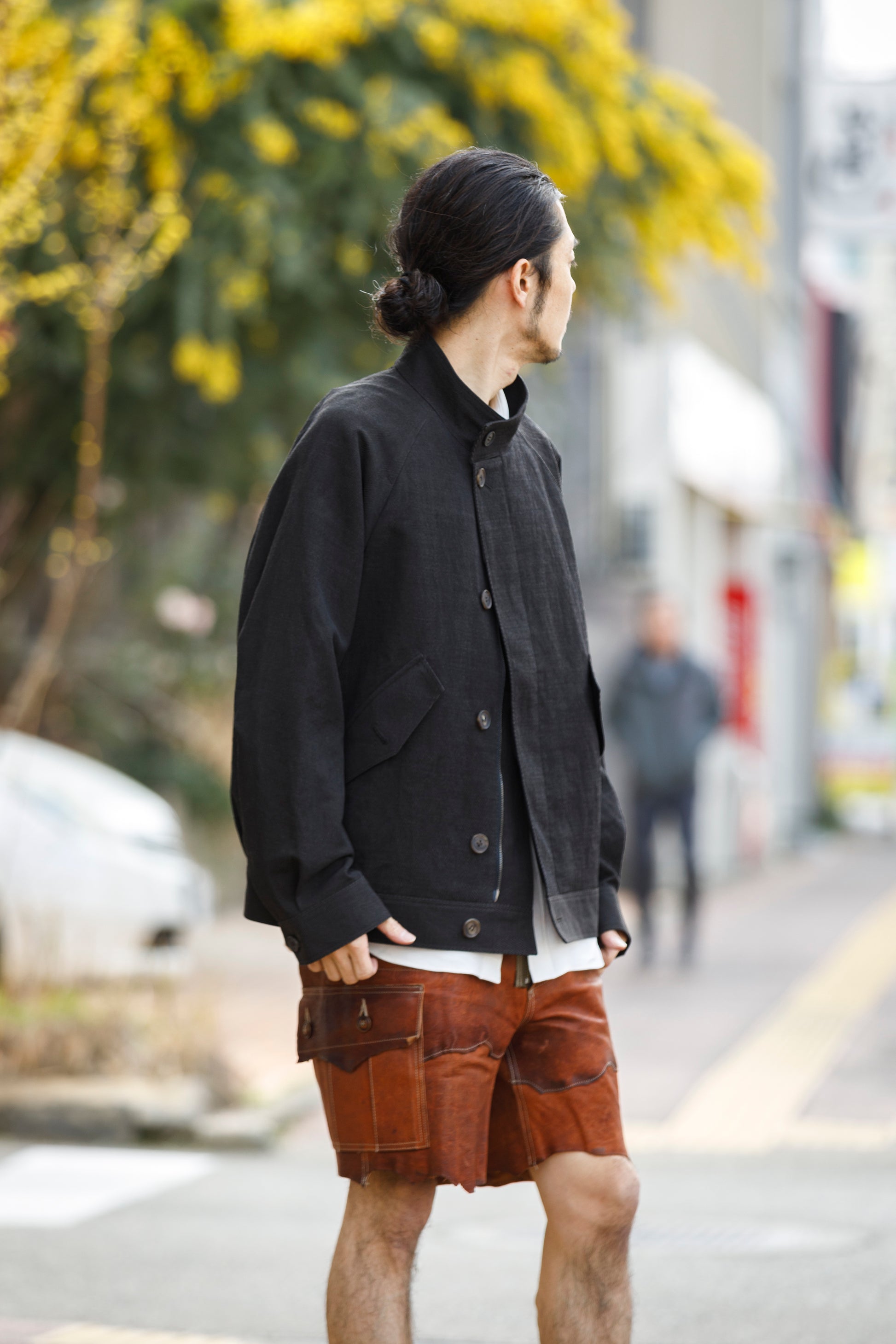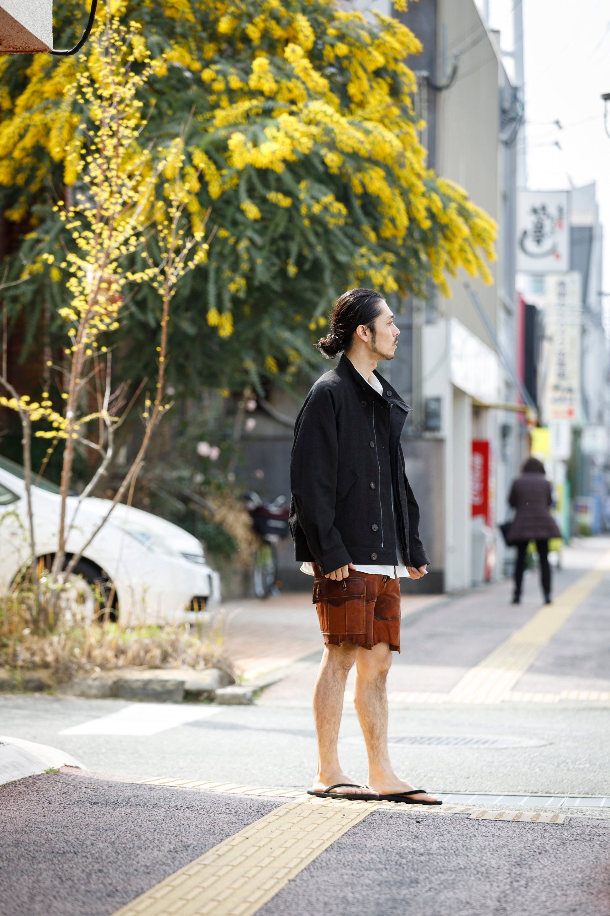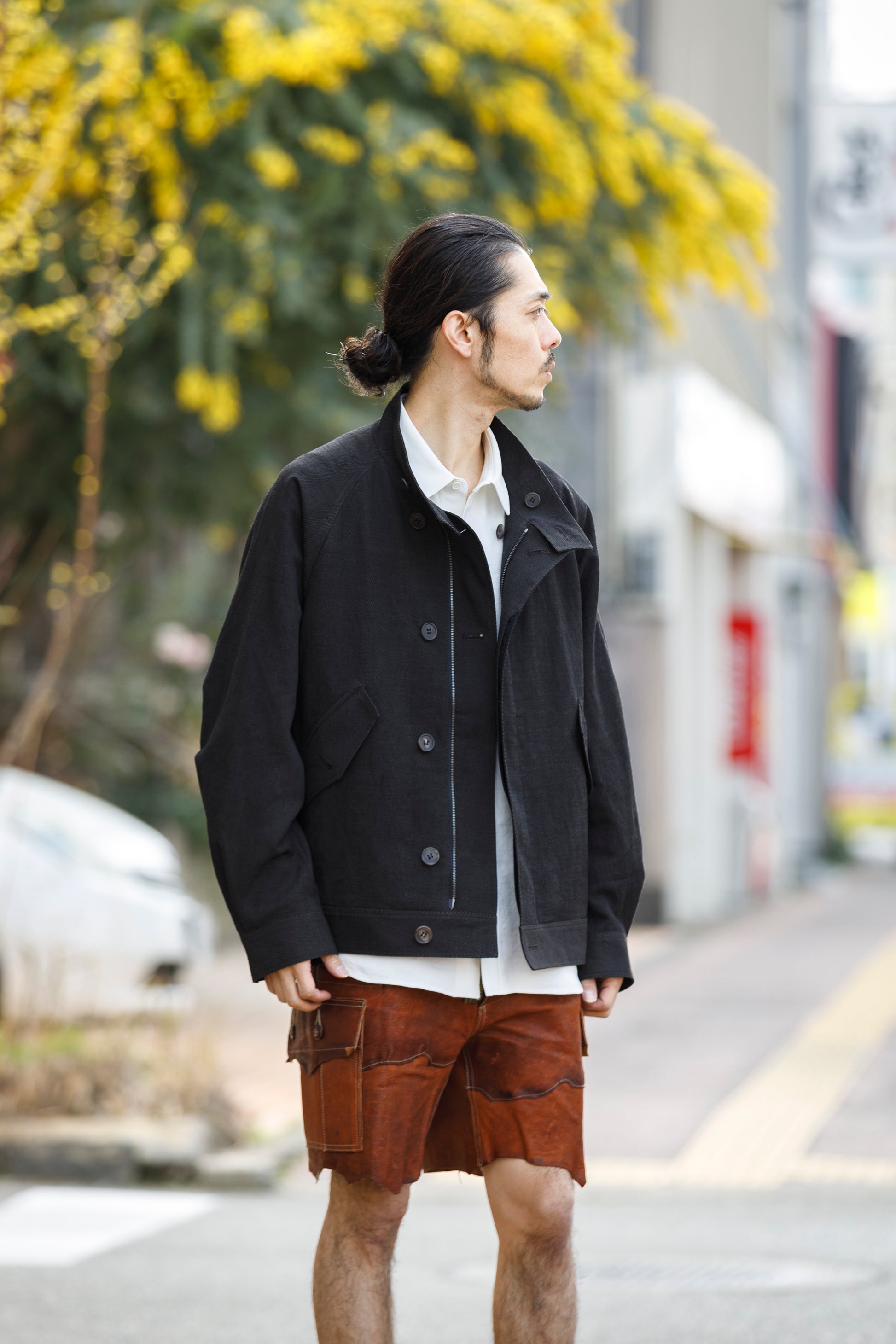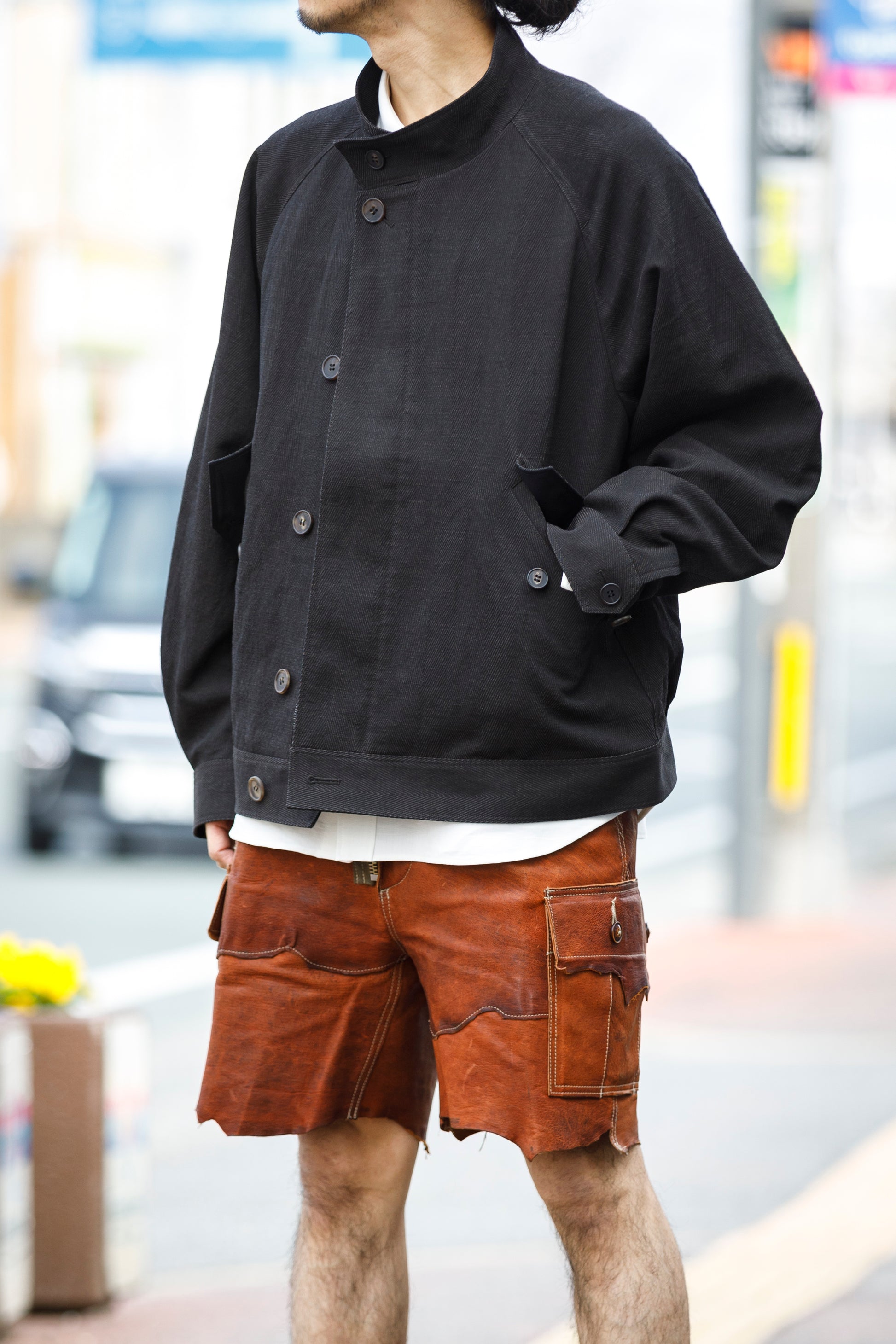 シンプルなデザインを大胆なシルエットに落とし込みながらクラフト感のある泥染生地を使い、それぞれの良さを最大限に引き立てた1枚です。