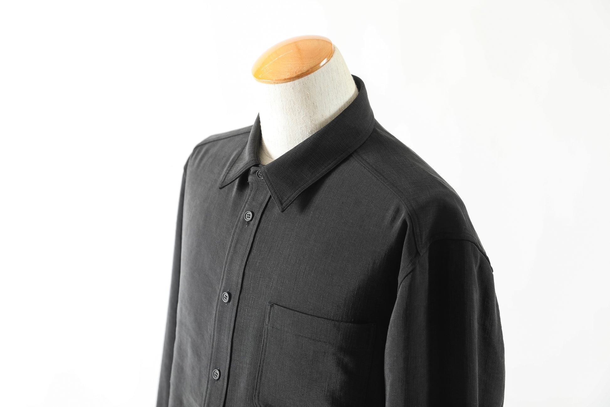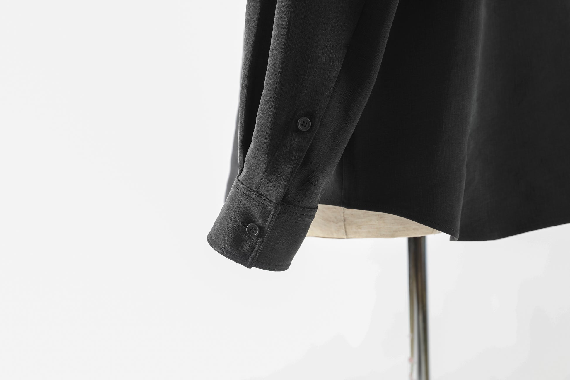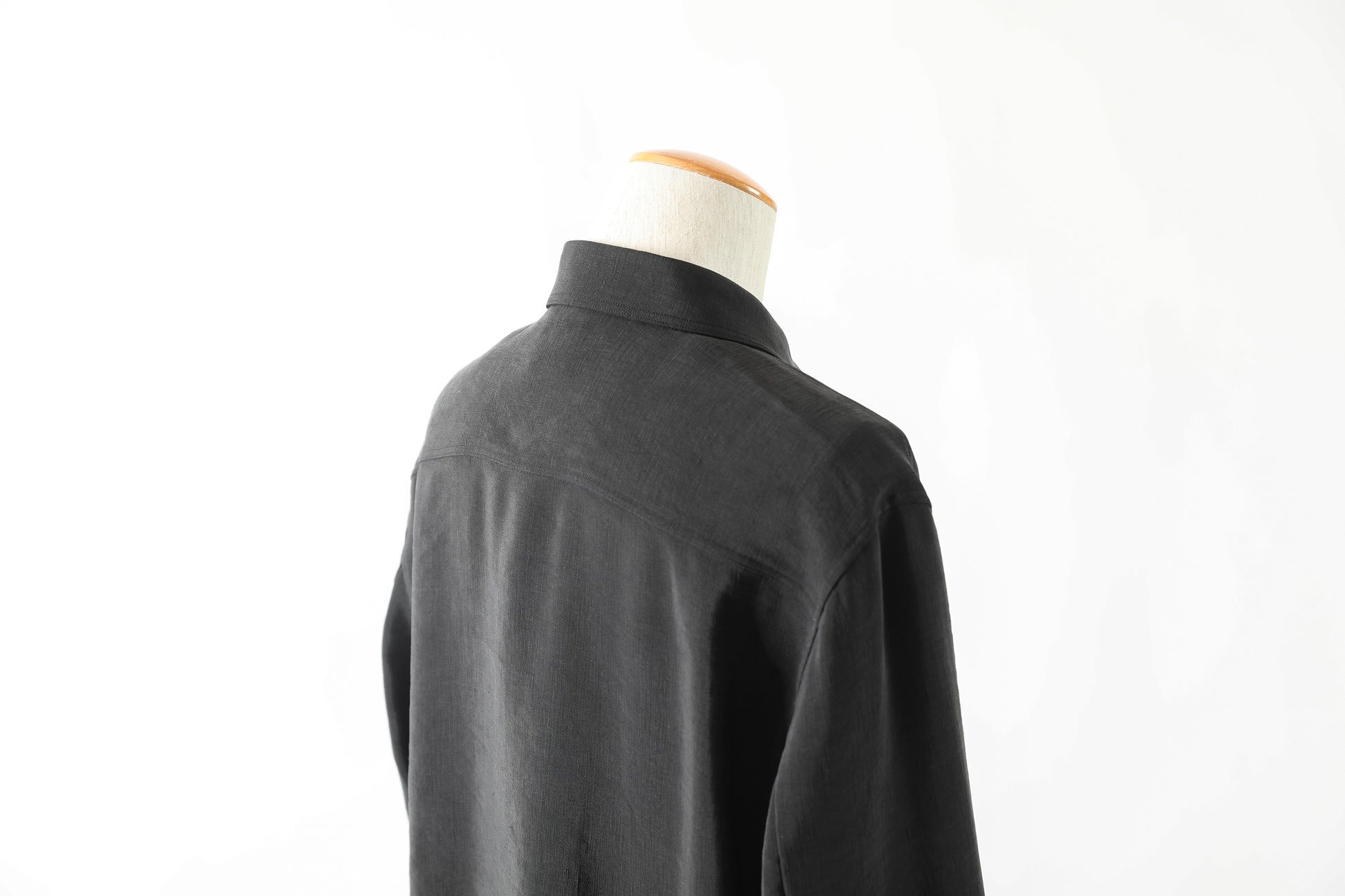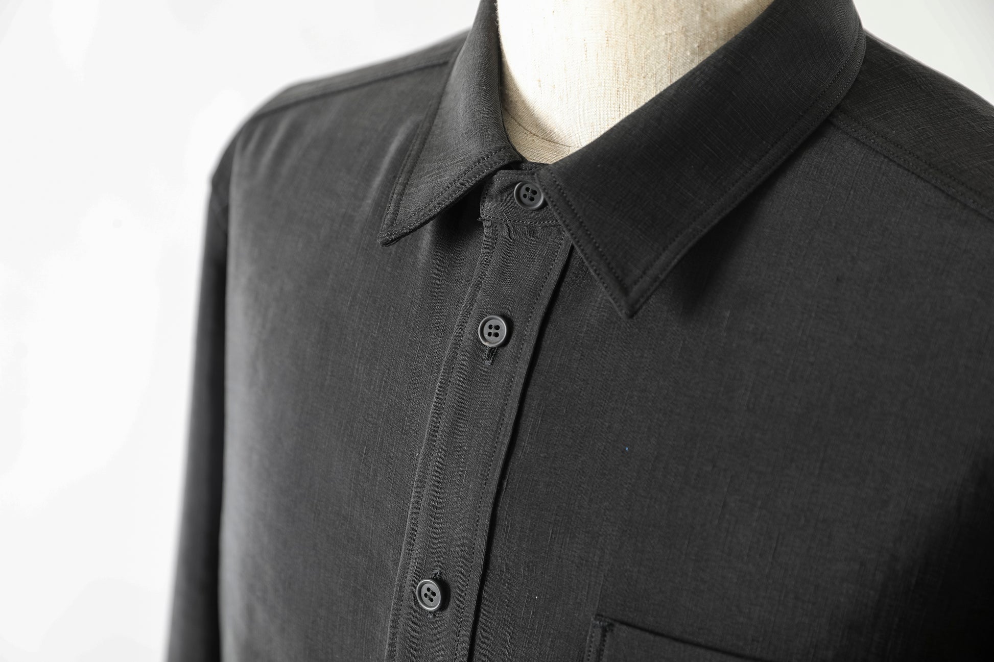 山内 / 26143-sili / ビンテージシルクリネン・ダブルステッチシャツ - sumi kuro