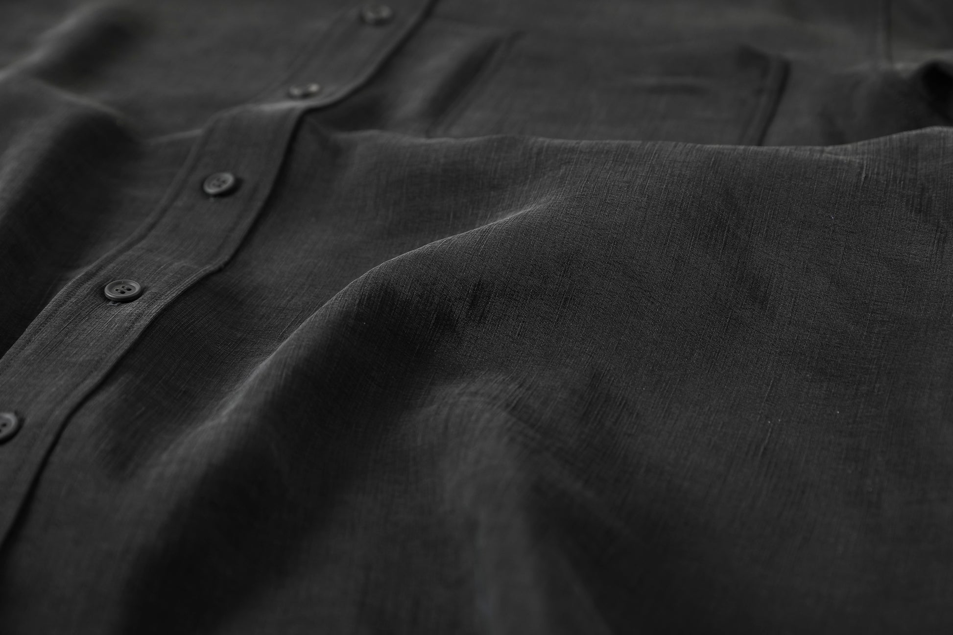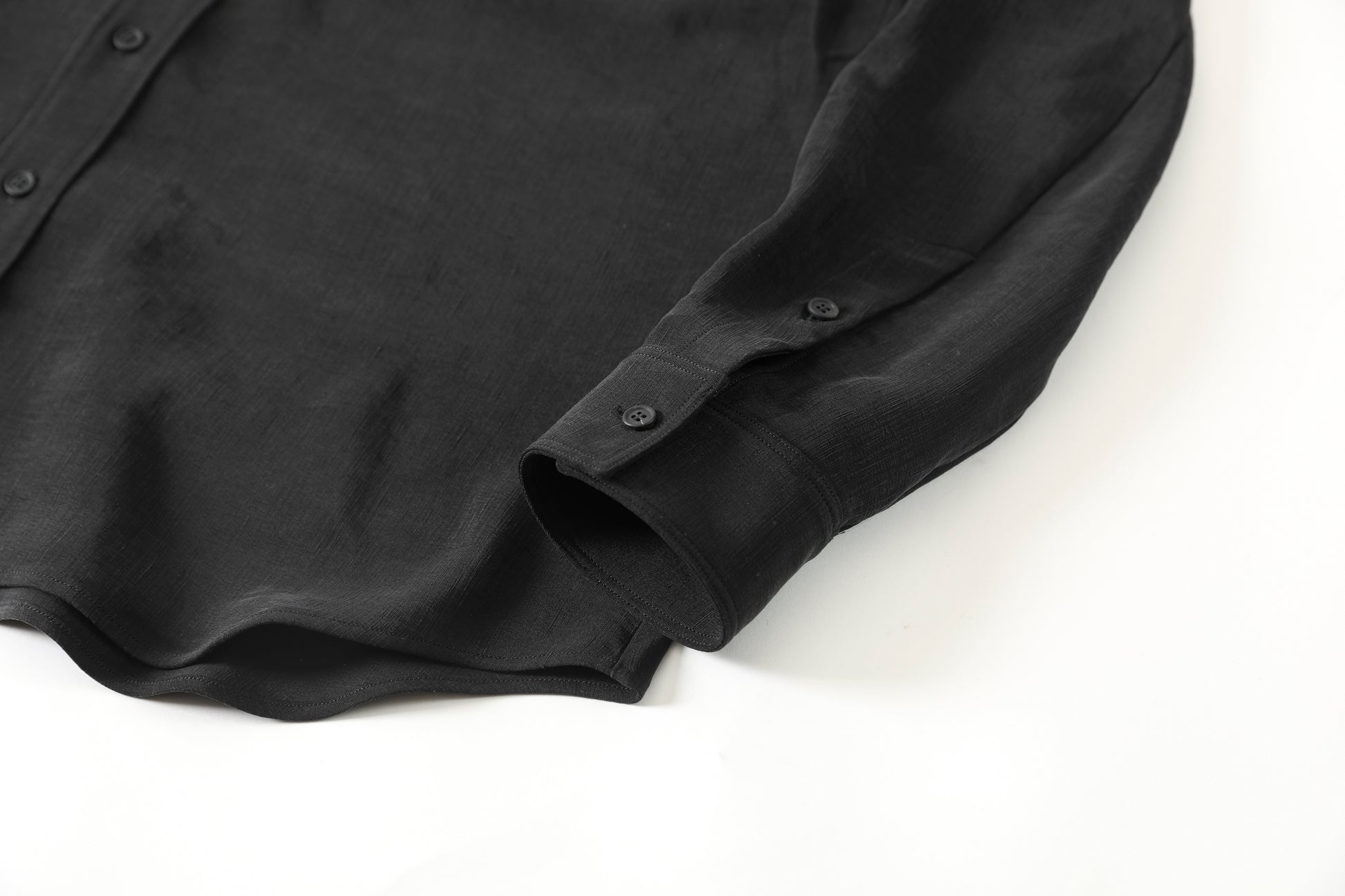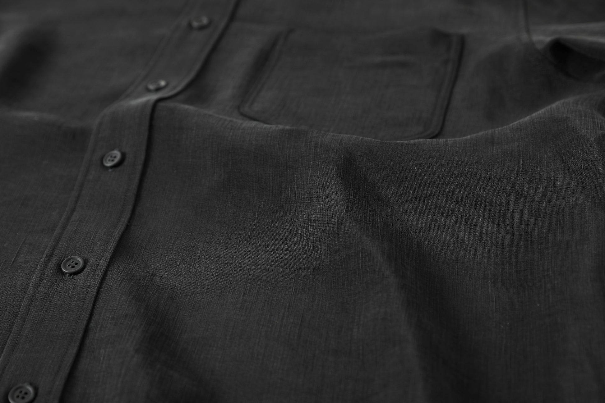山内 / 26143-sili / ビンテージシルクリネン・ダブルステッチシャツ - sumi kuro
