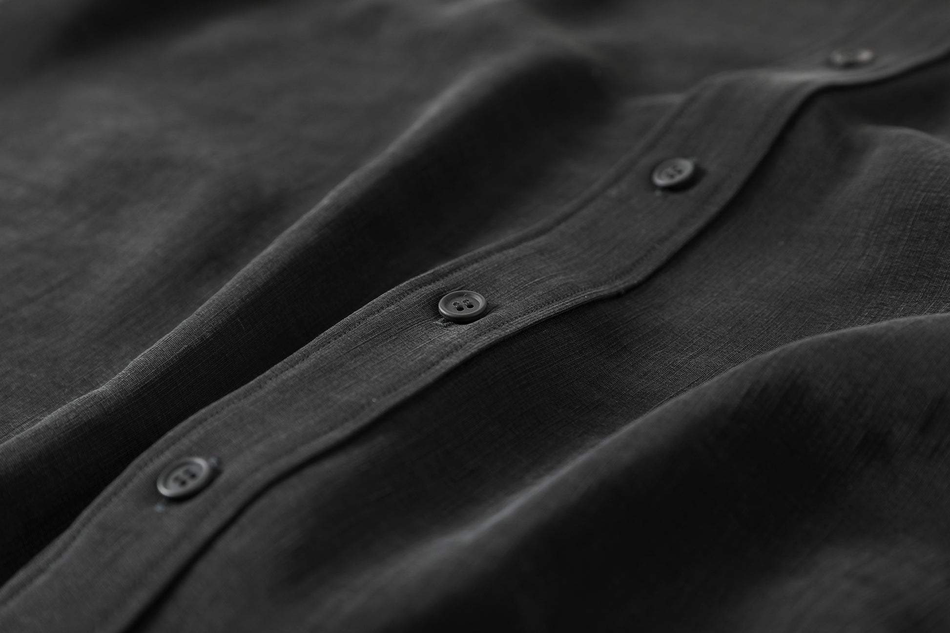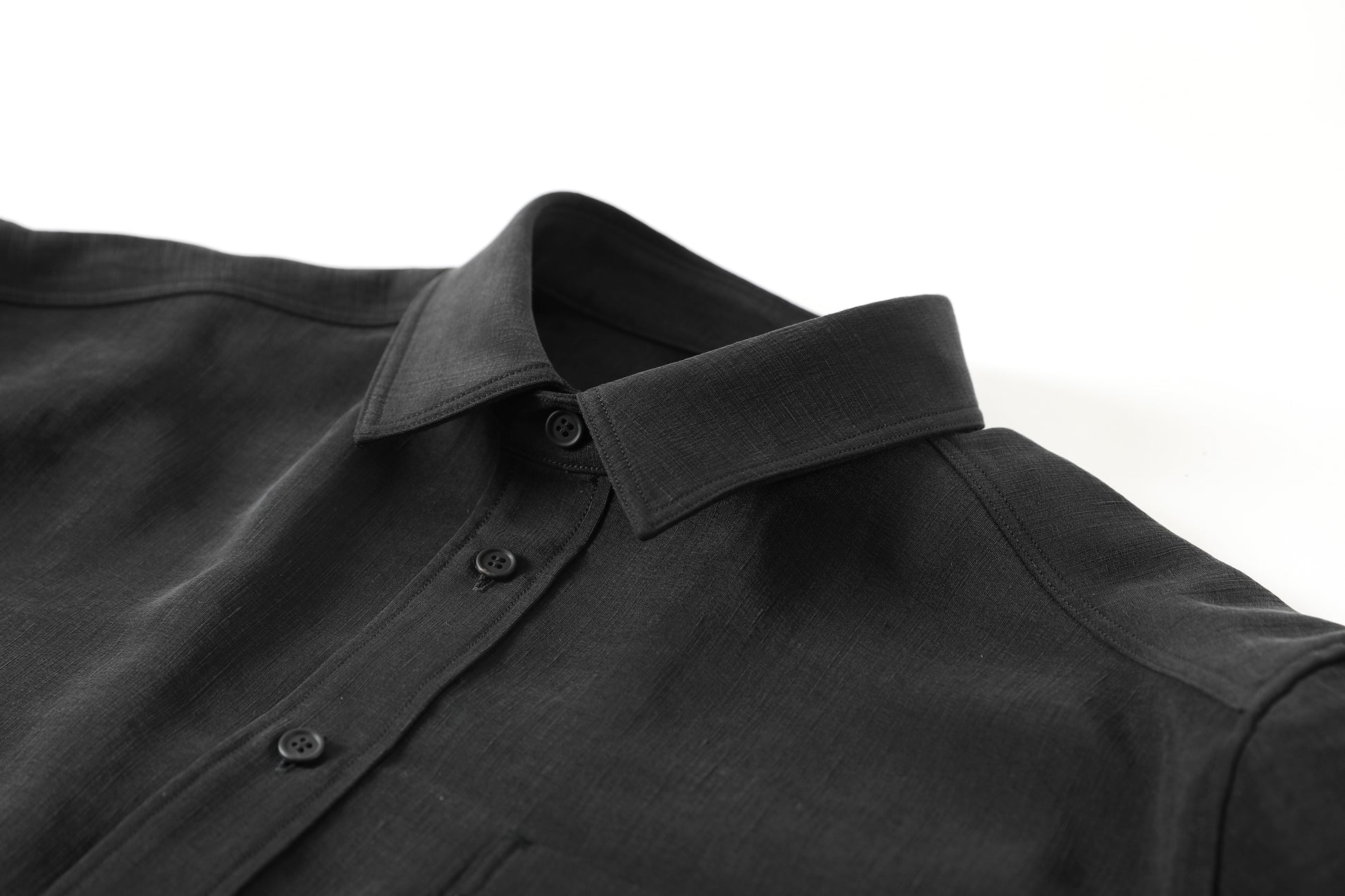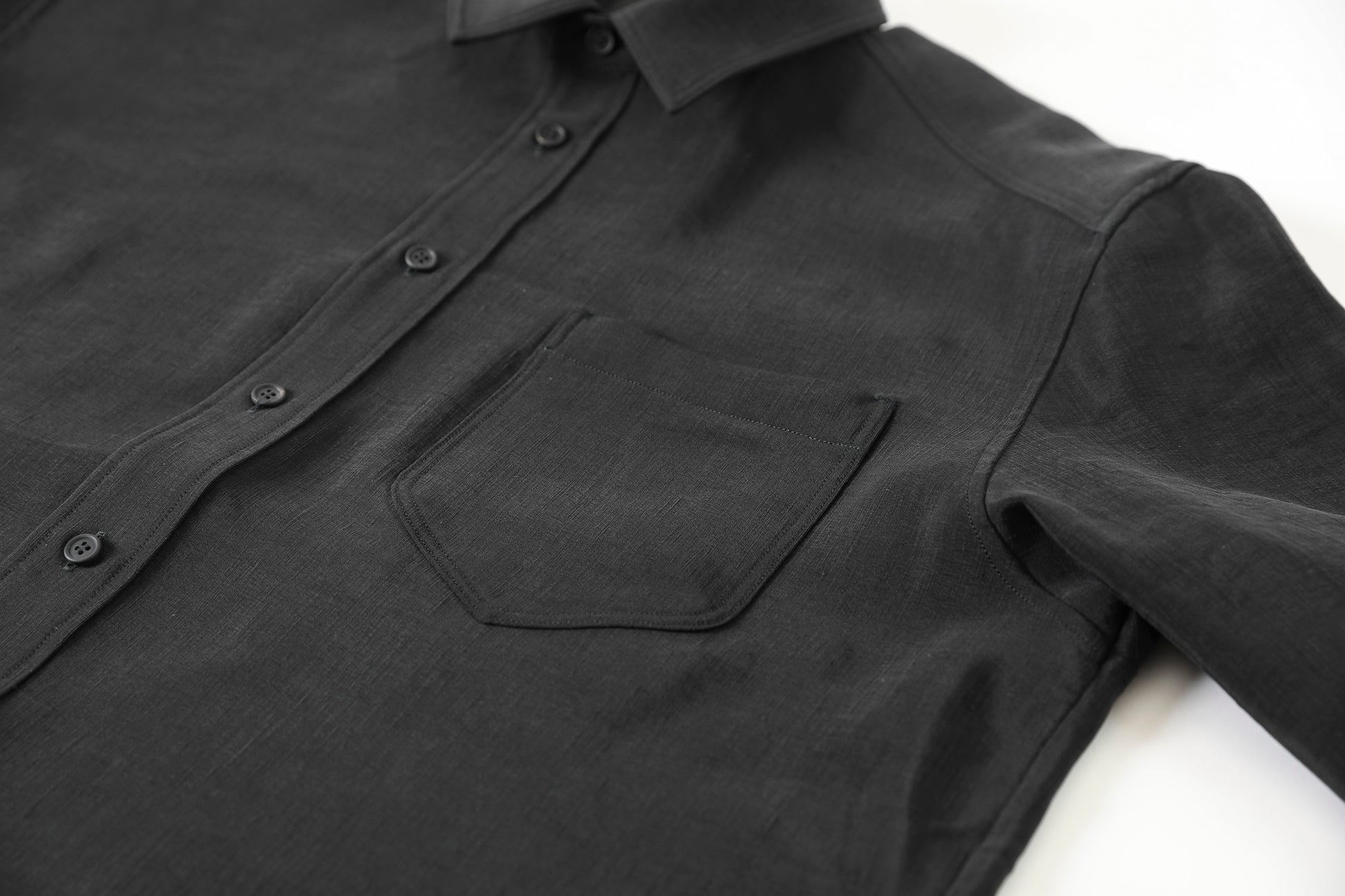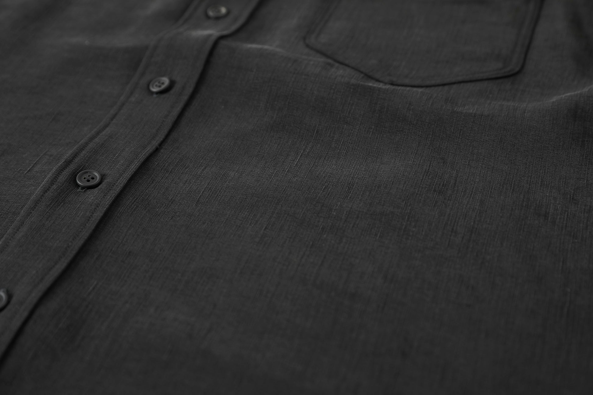 山内 / 26143-sili / ビンテージシルクリネン・ダブルステッチシャツ - sumi kuro
