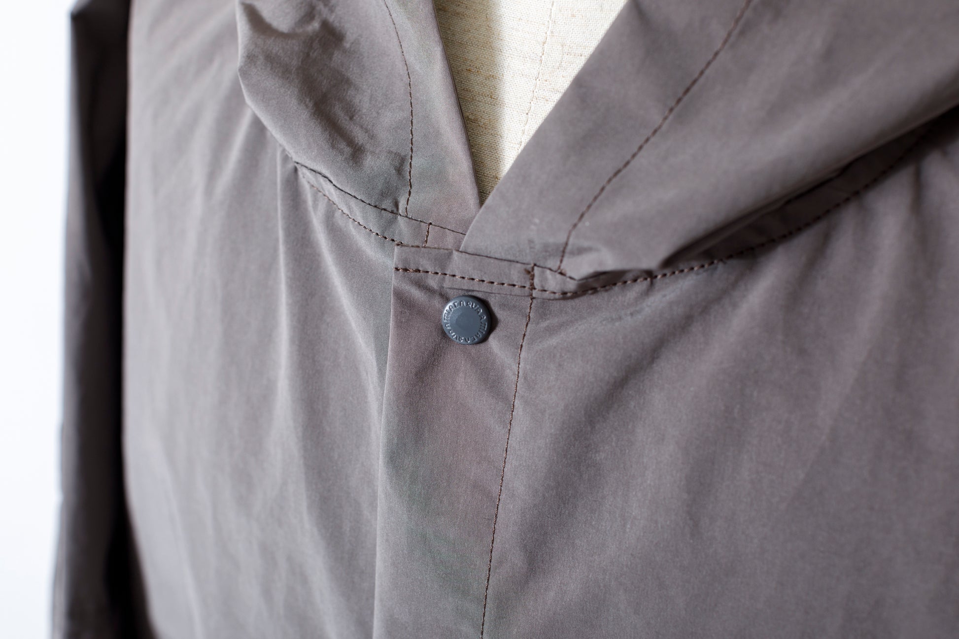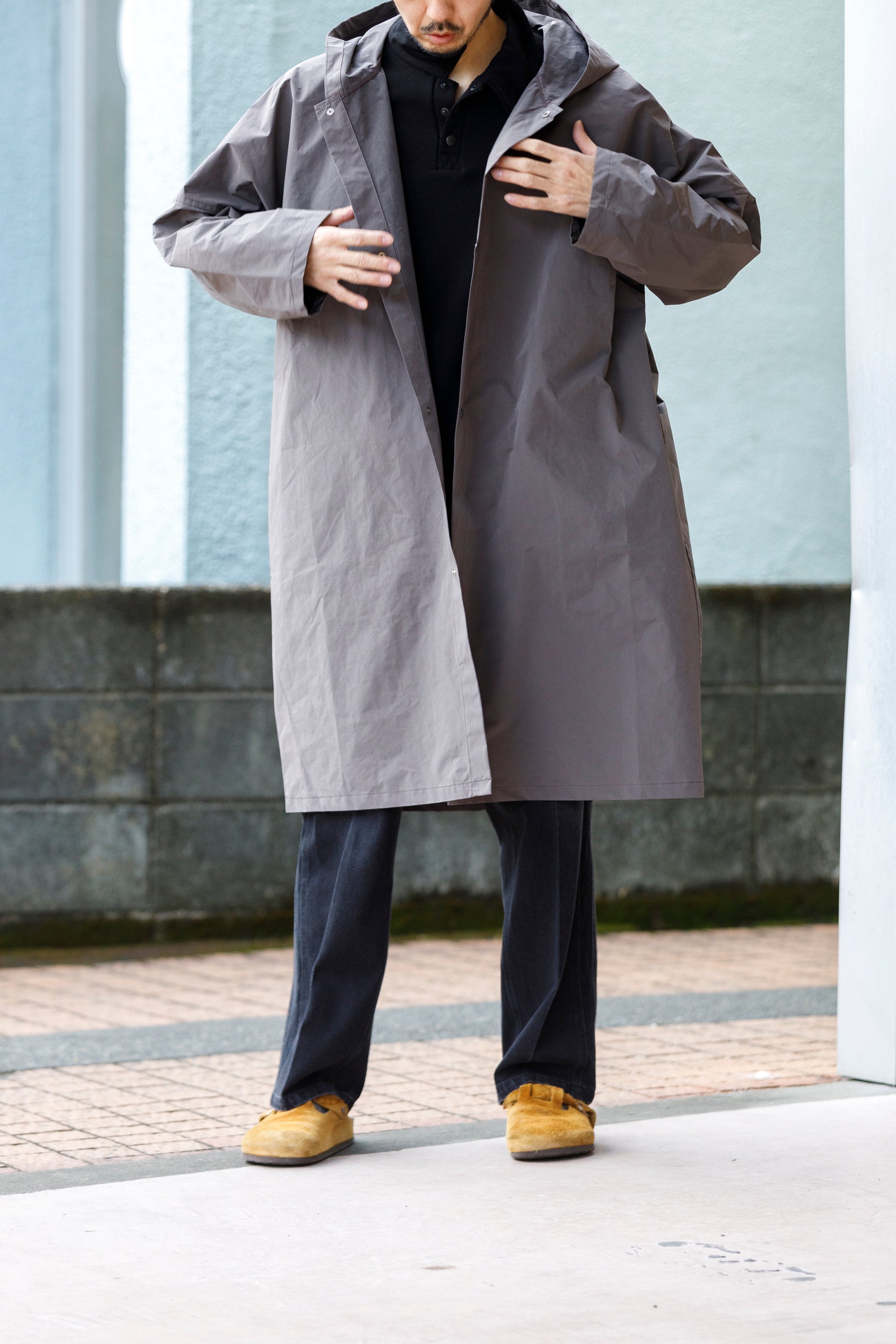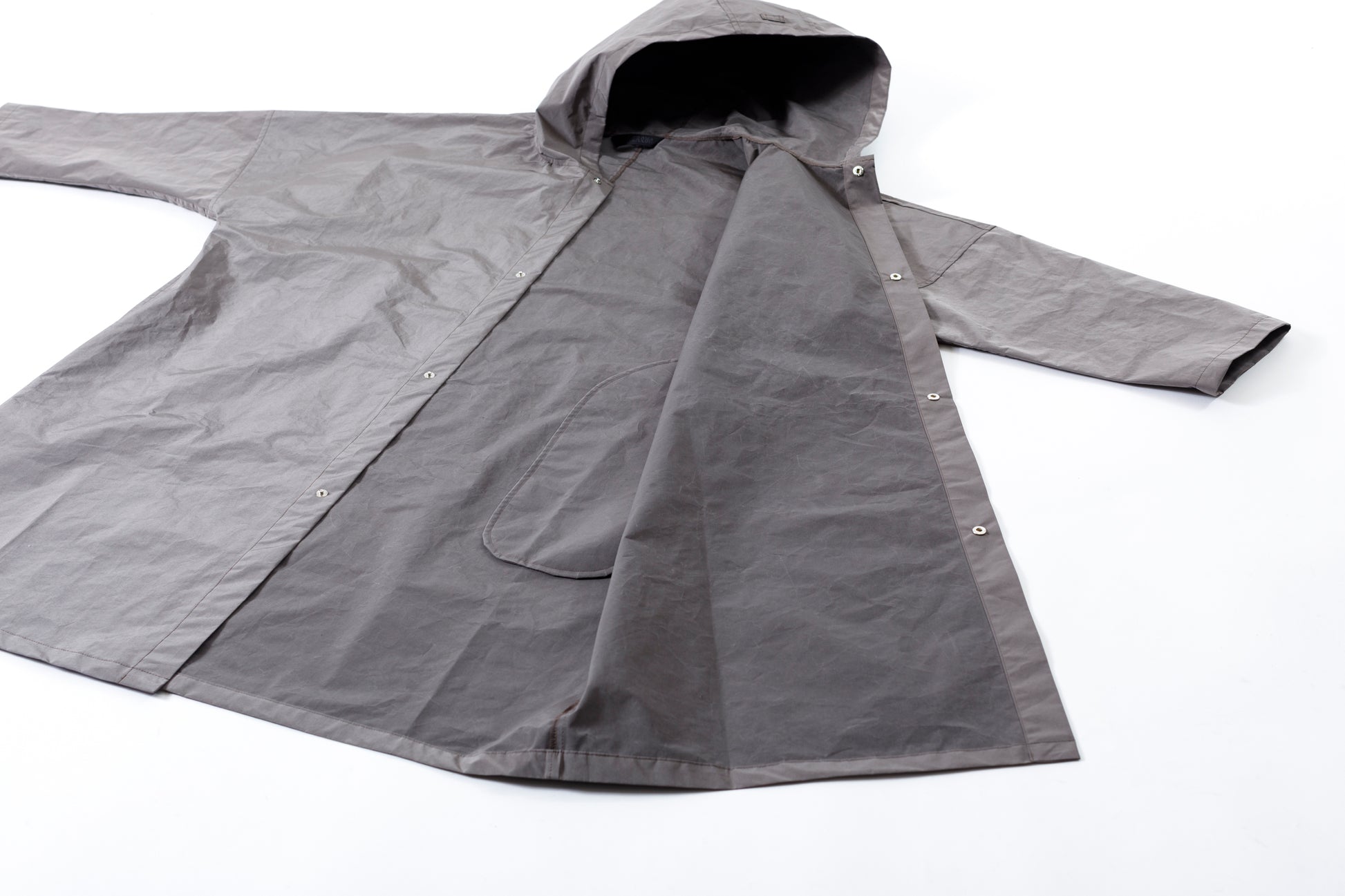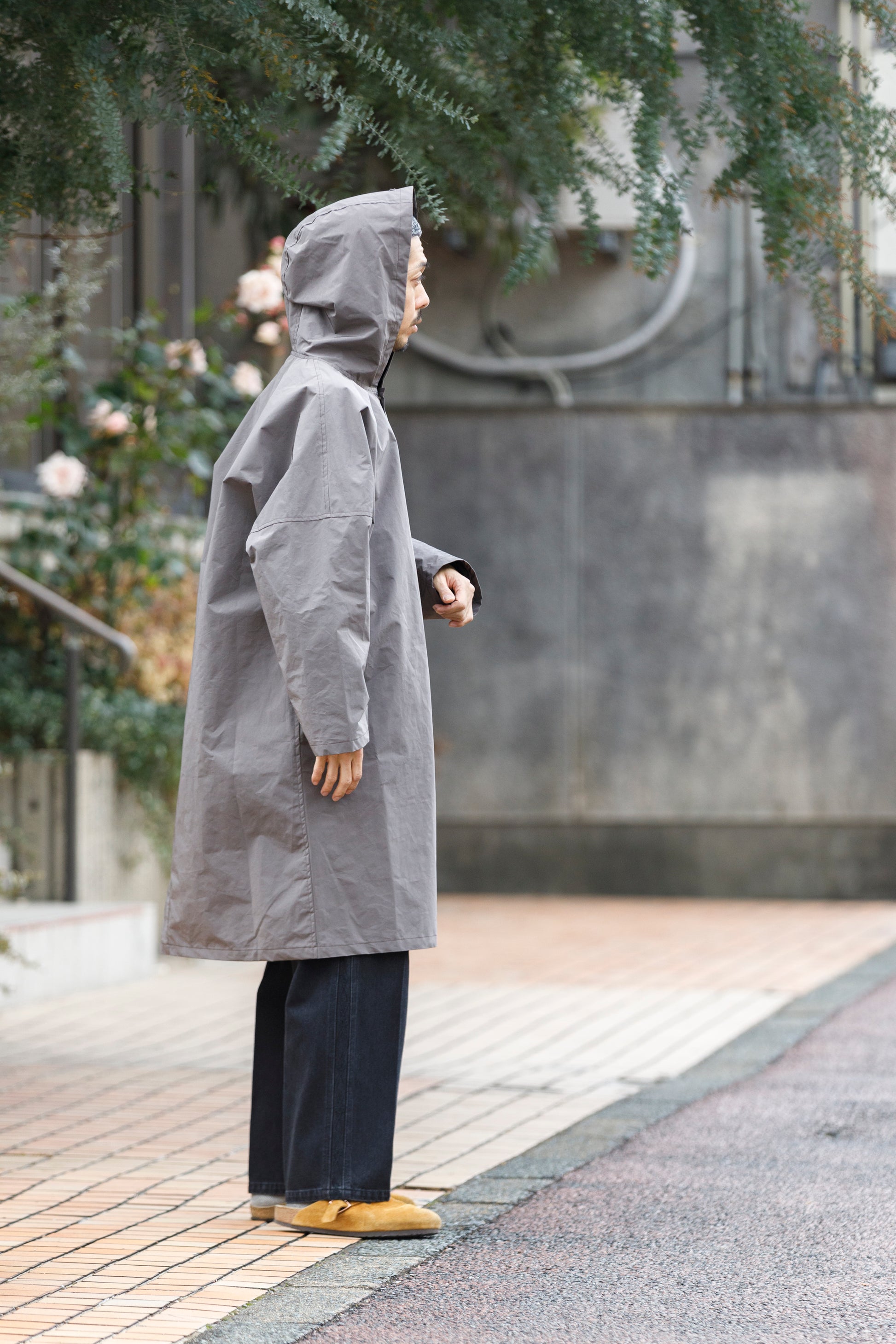 ブランドならではの特徴的な生地をシンプルなデザインで構成し、日常使いから軽い雨にも耐えるレインコートとしての役割を果たす、Drizzle Coat - Gray(SPRIT YARN)。