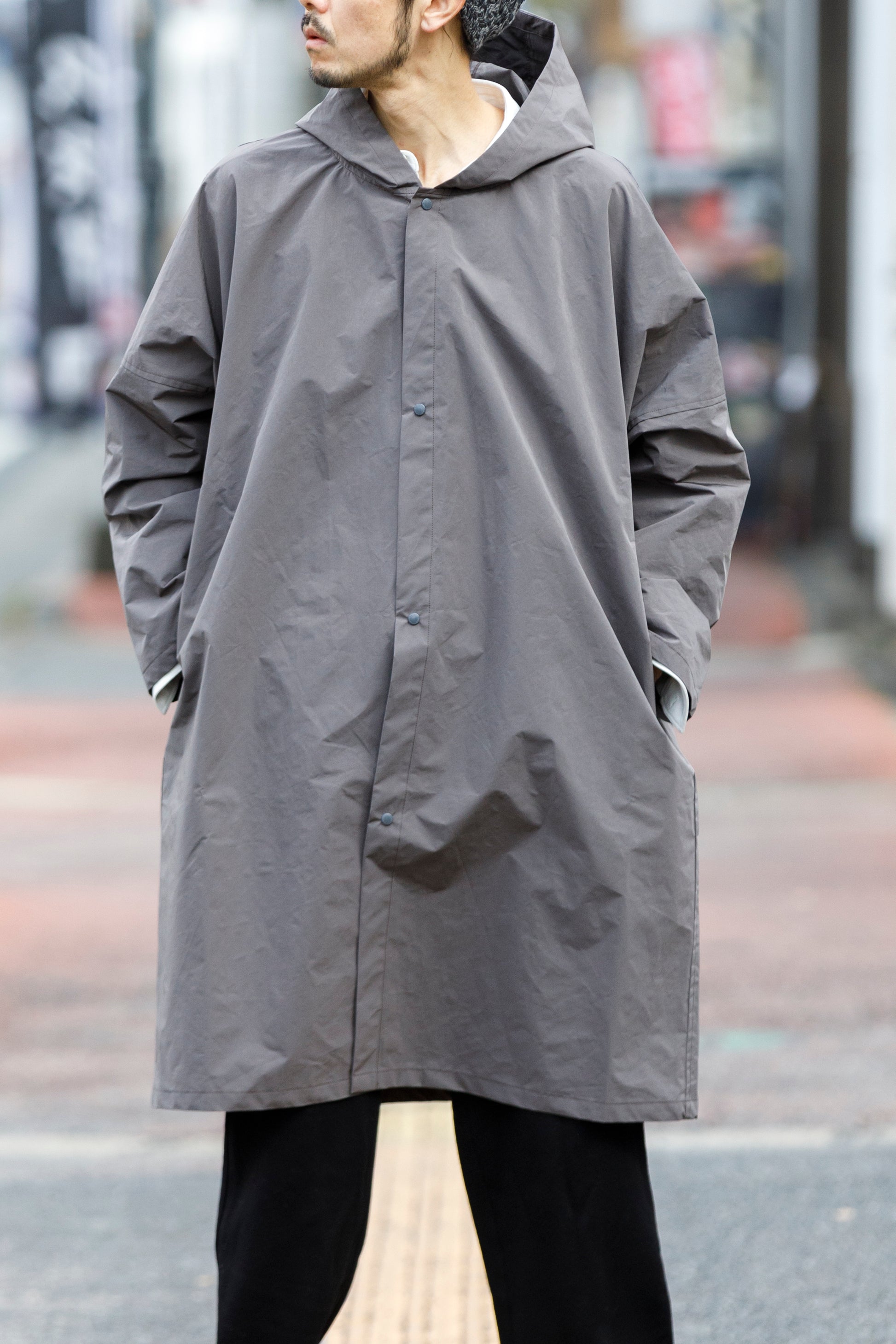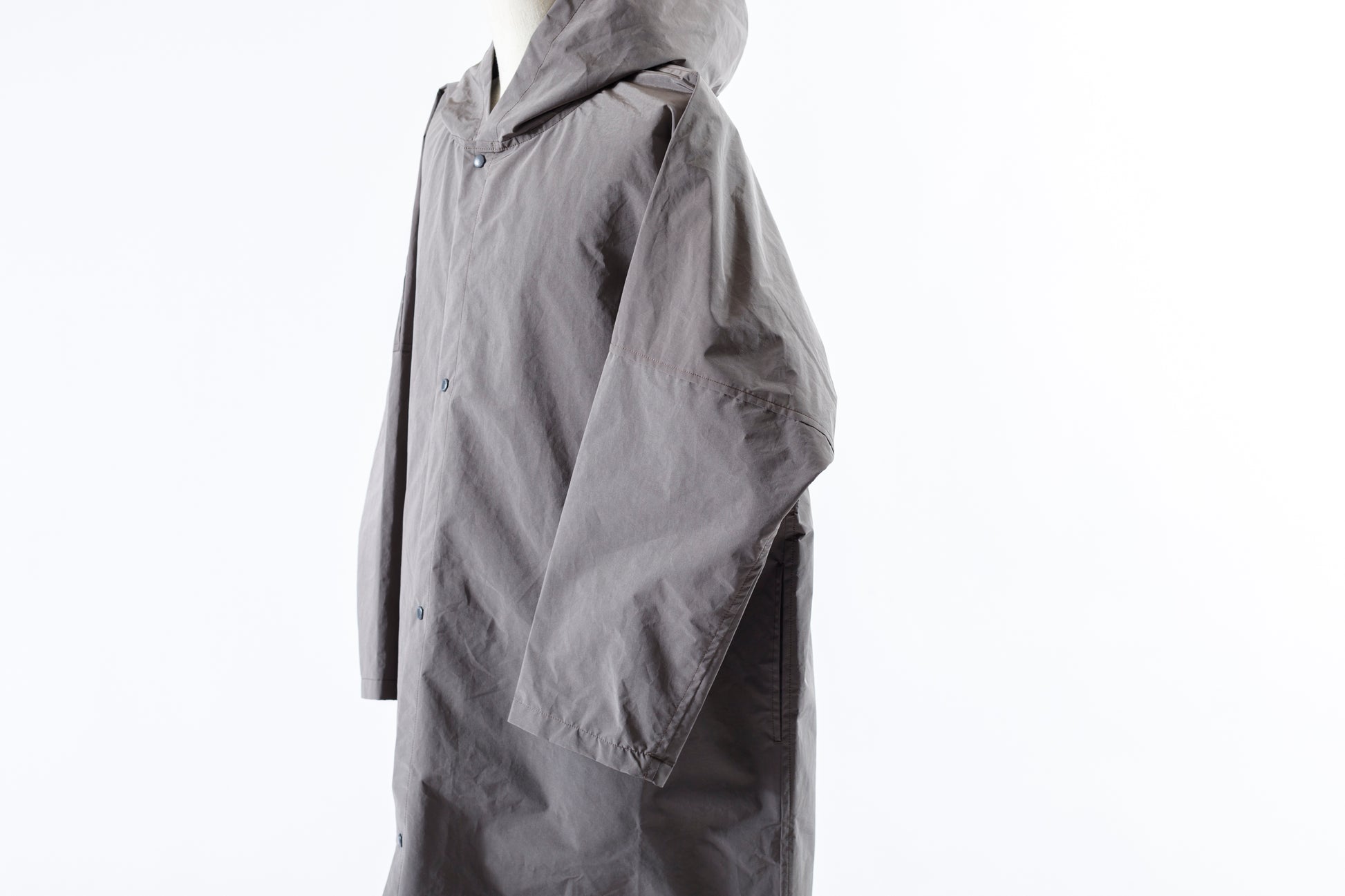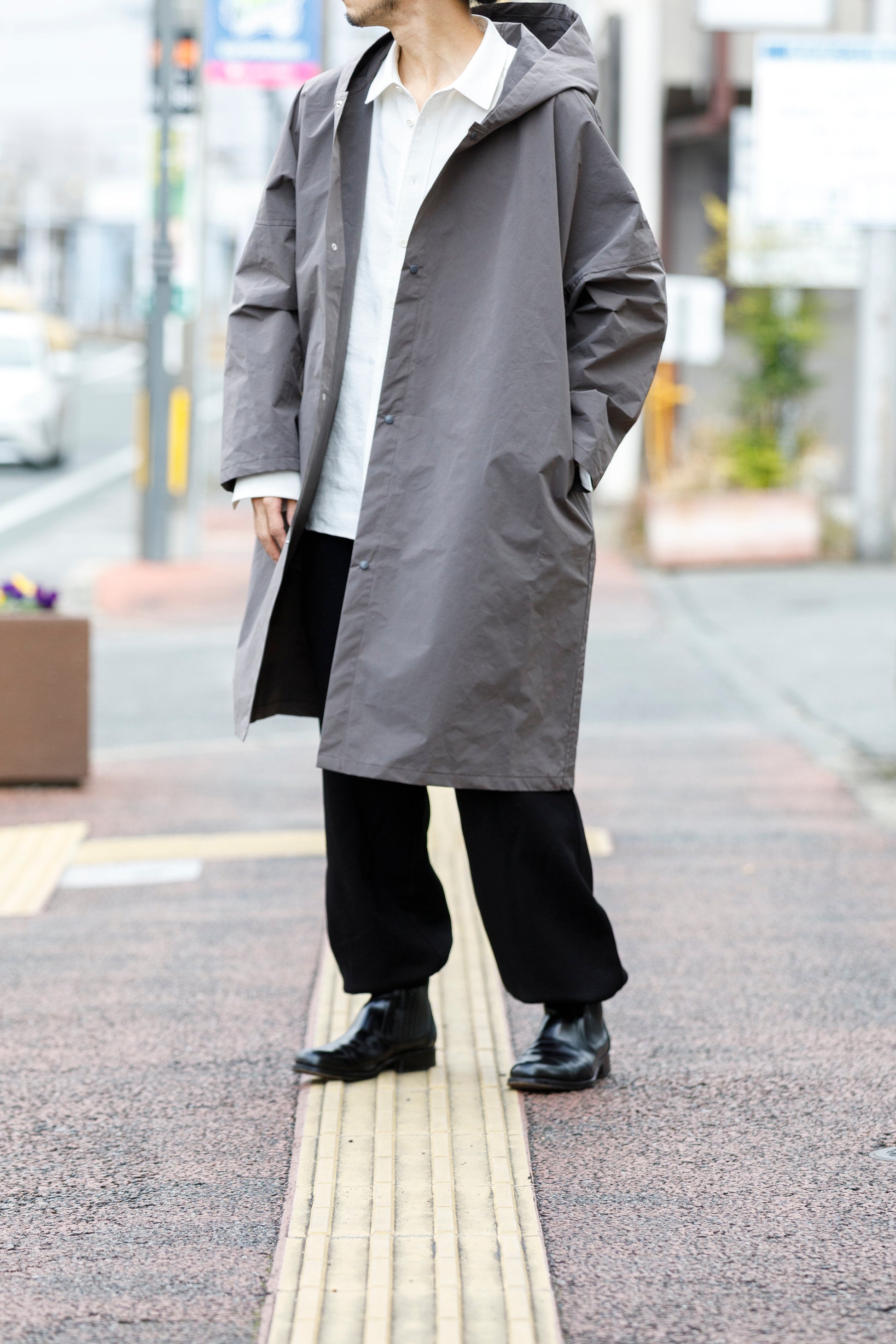 ブランドならではの特徴的な生地をシンプルなデザインで構成し、日常使いから軽い雨にも耐えるレインコートとしての役割を果たす、Drizzle Coat - Gray(SPRIT YARN)。