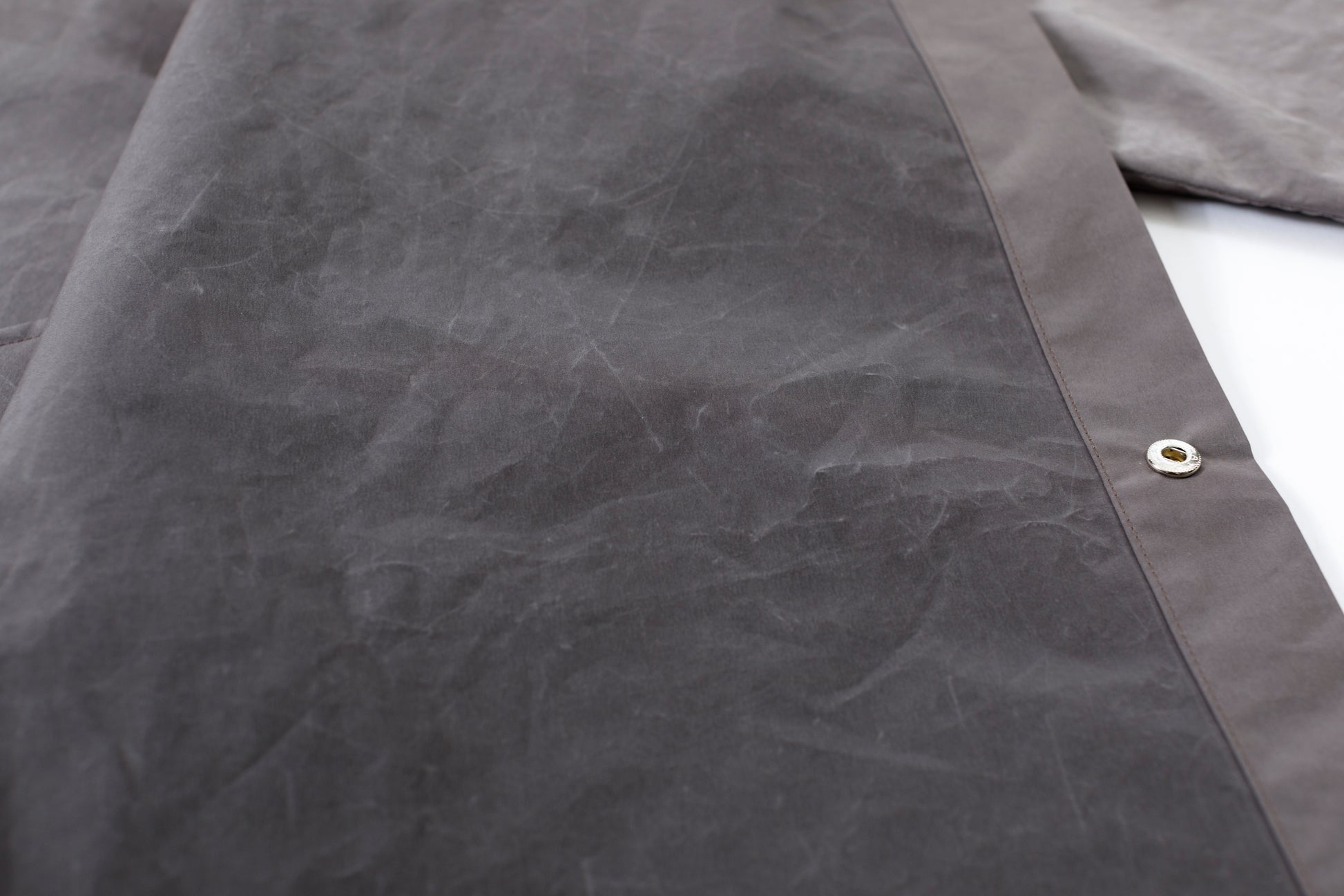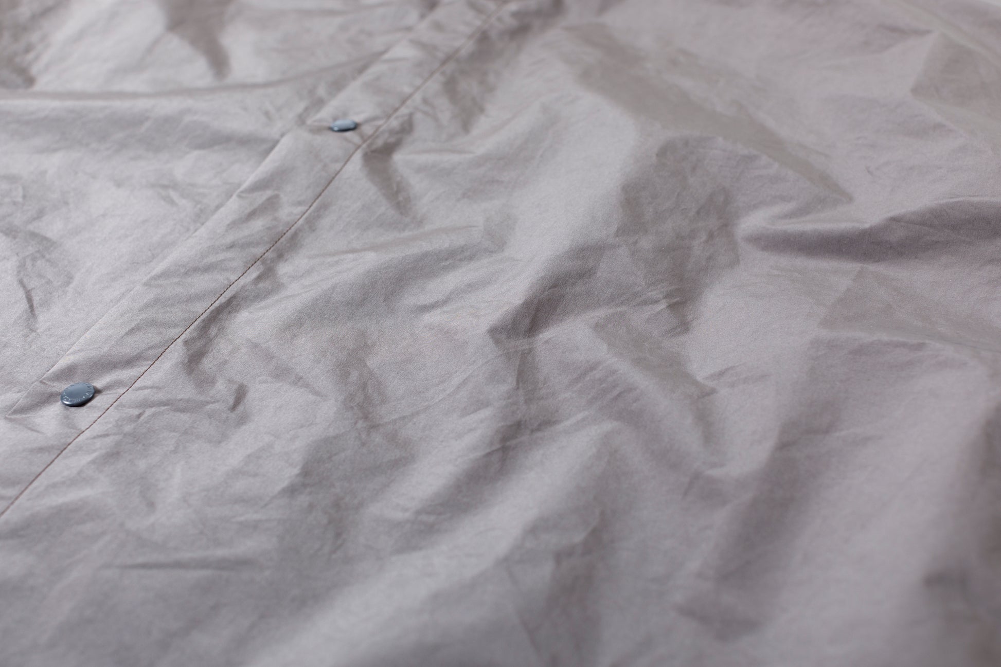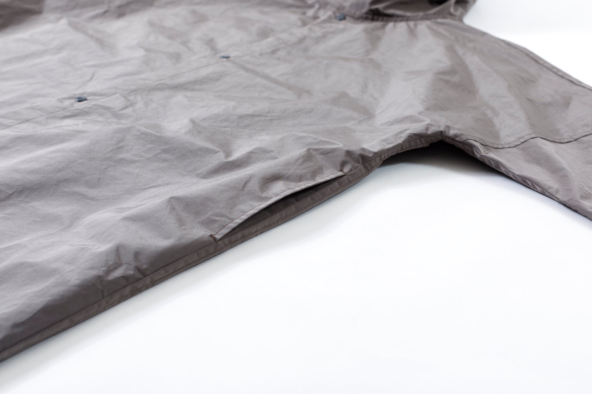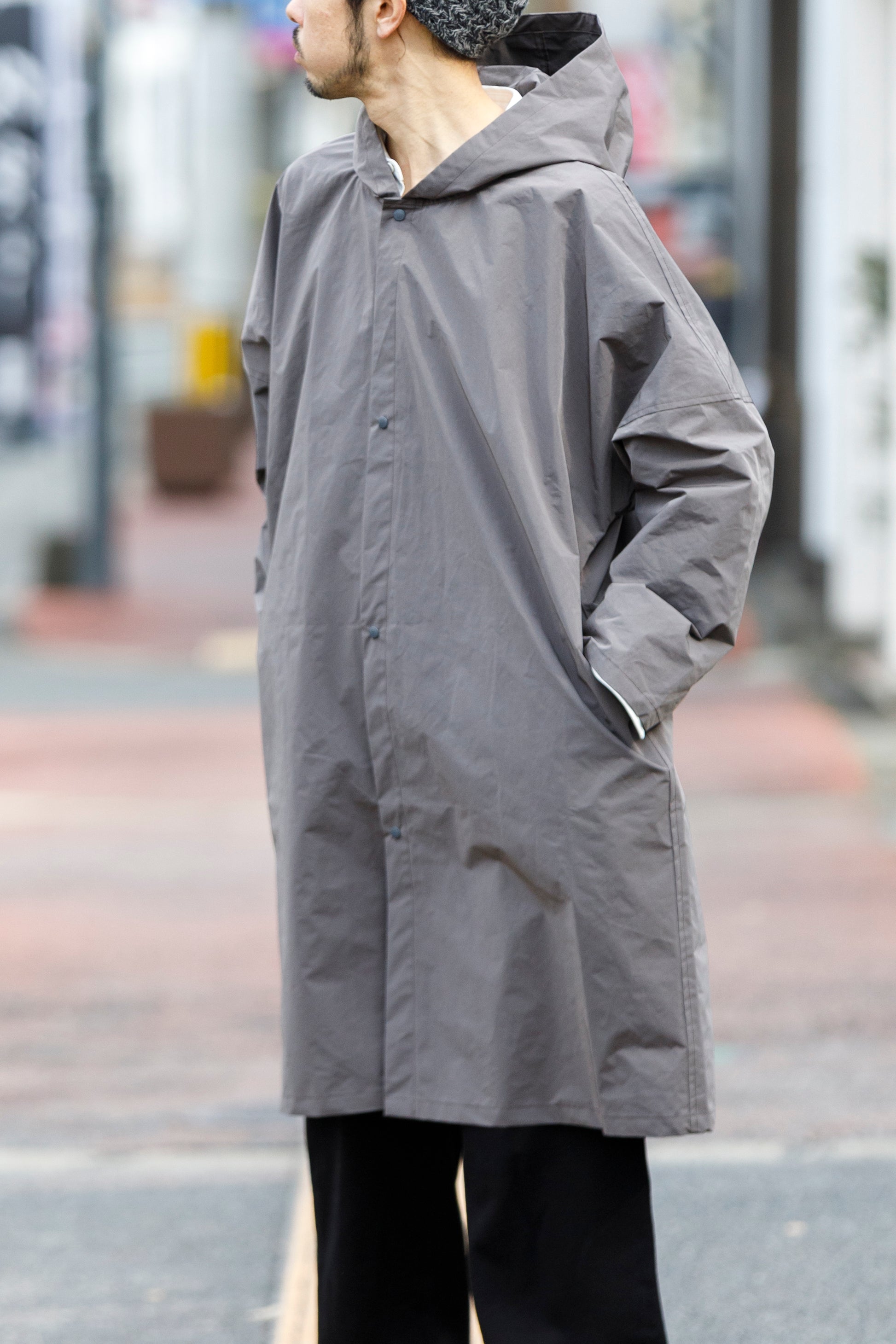 ブランドならではの特徴的な生地をシンプルなデザインで構成し、日常使いから軽い雨にも耐えるレインコートとしての役割を果たす、Drizzle Coat - Gray(SPRIT YARN)。