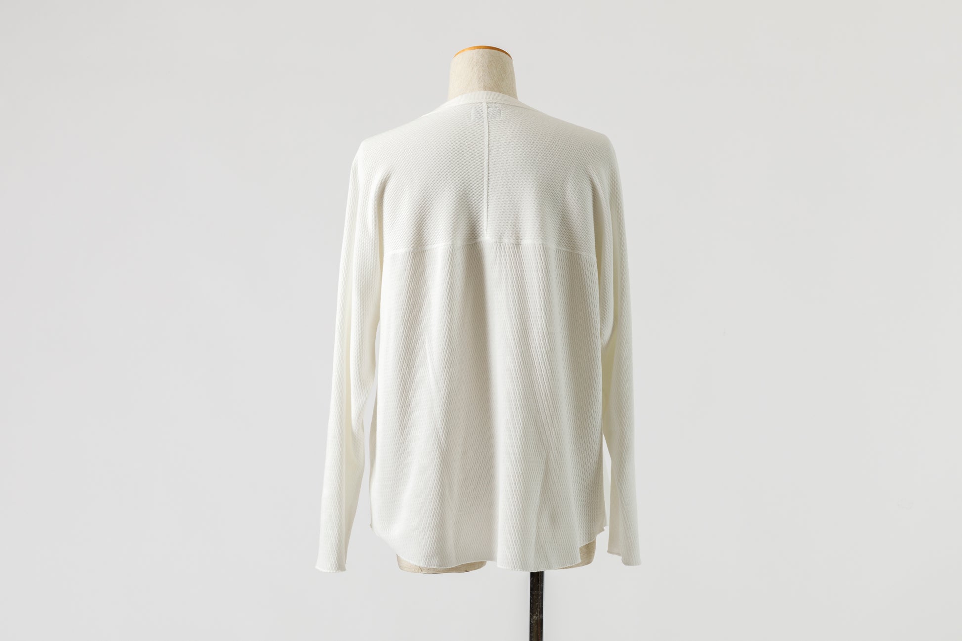 クラシックなサーマルに見られるピタッとしたシルエットではなく、秋口には1枚での着用も可能なやや緩めのサイズ設定。