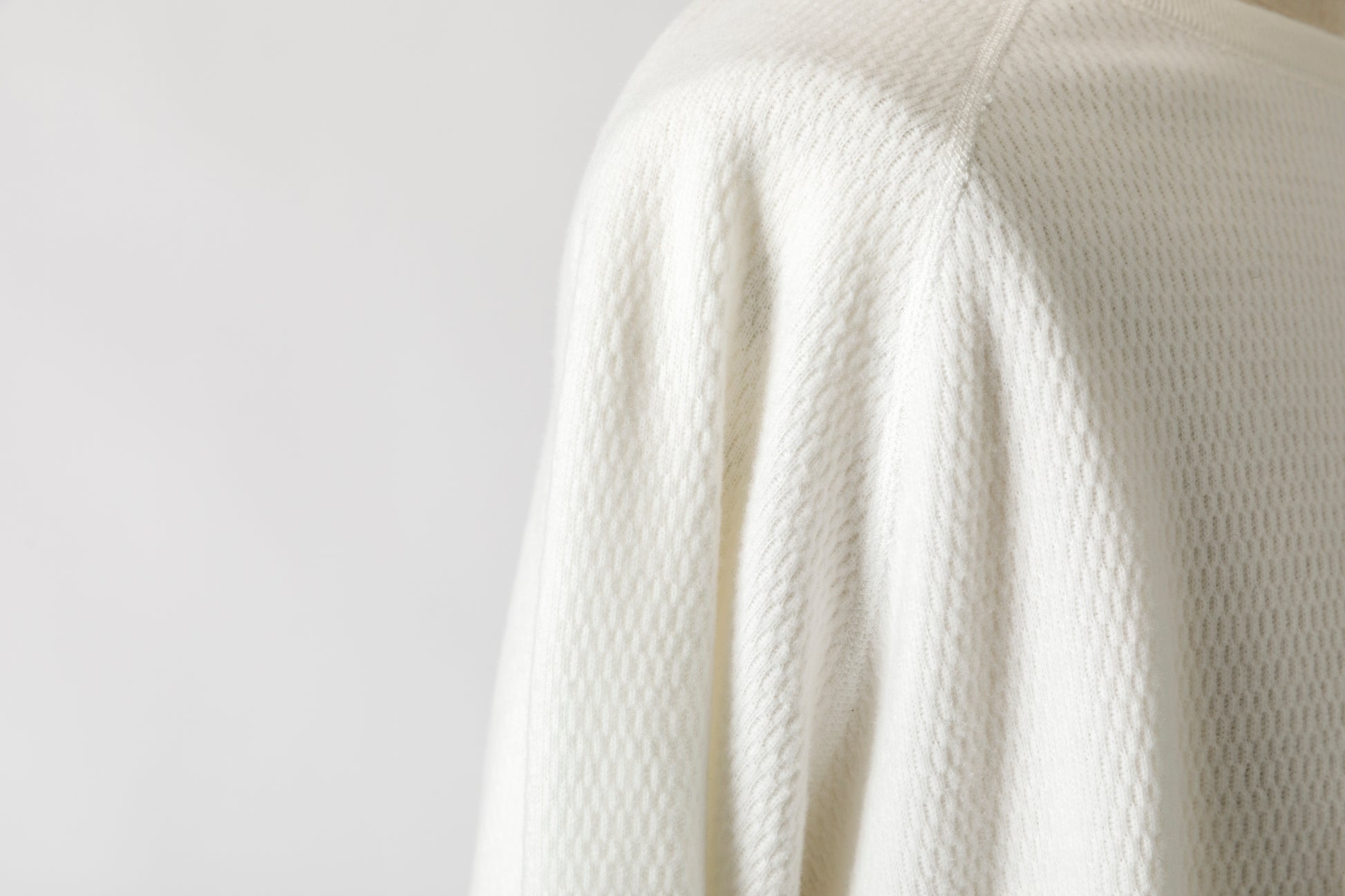 フロントはサーマルらしいリブ幅のクルーネックで、袖はフリーダムスリーブが採用されております。