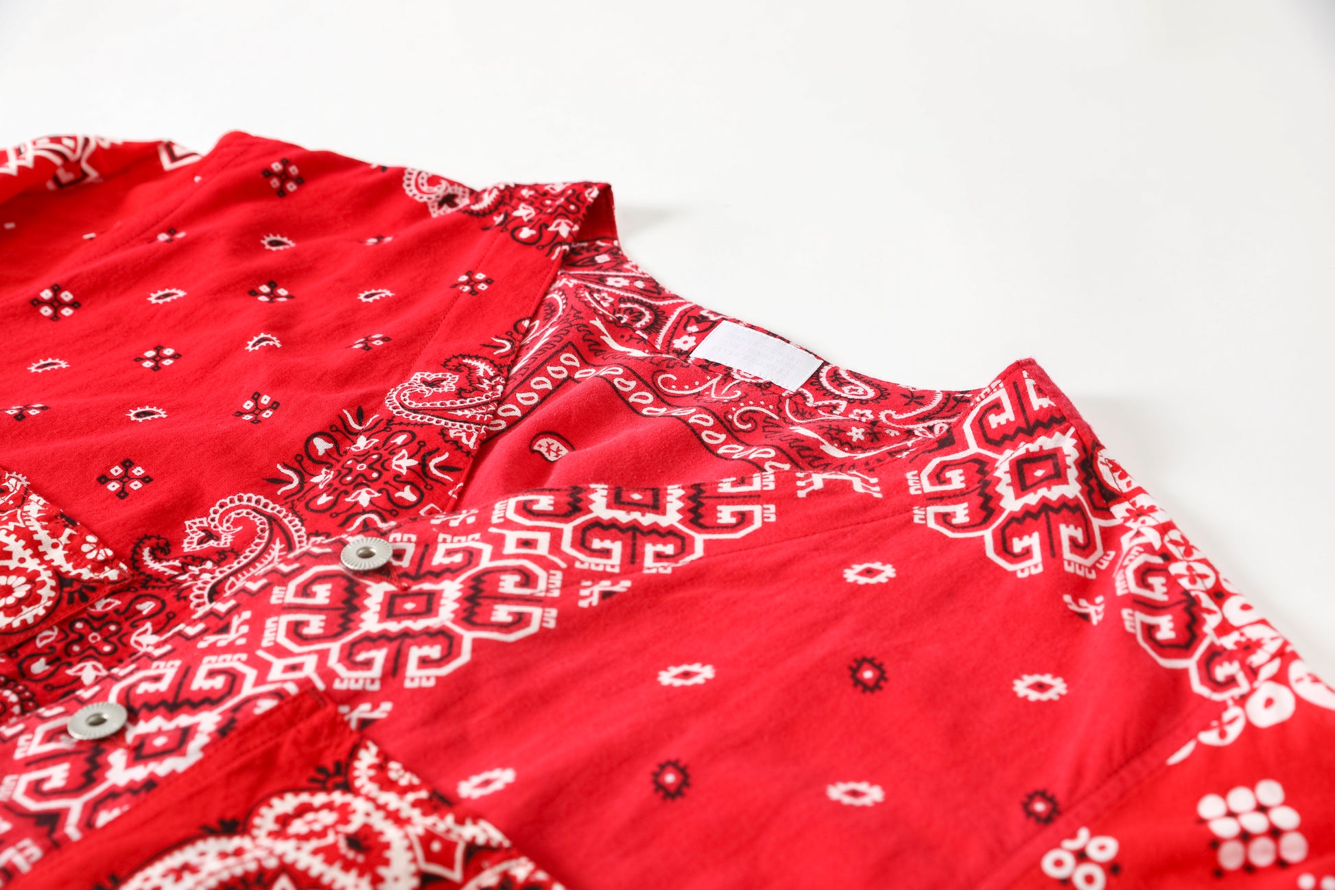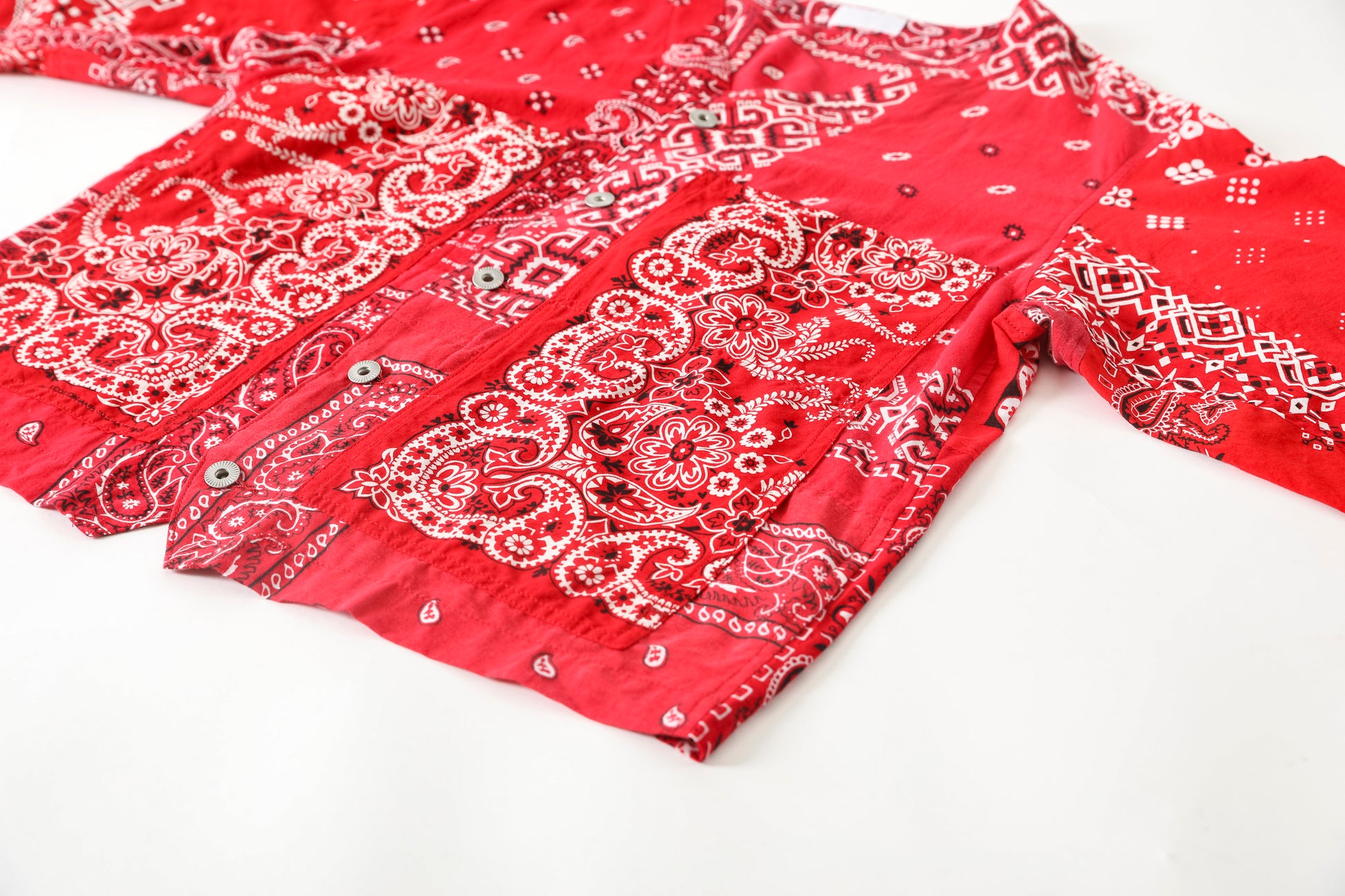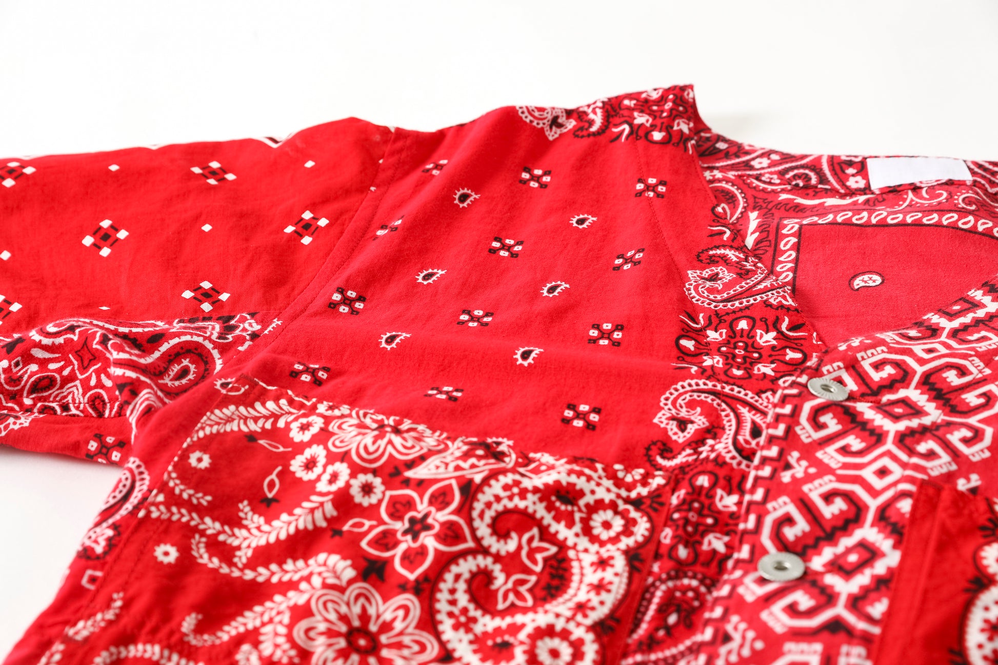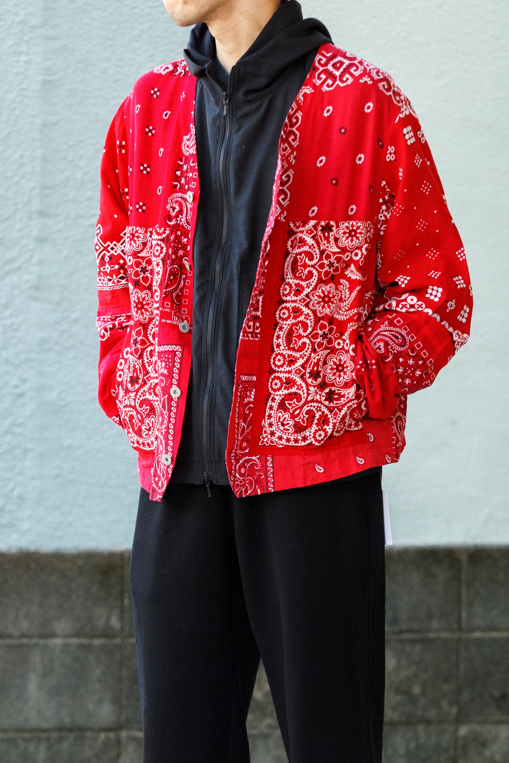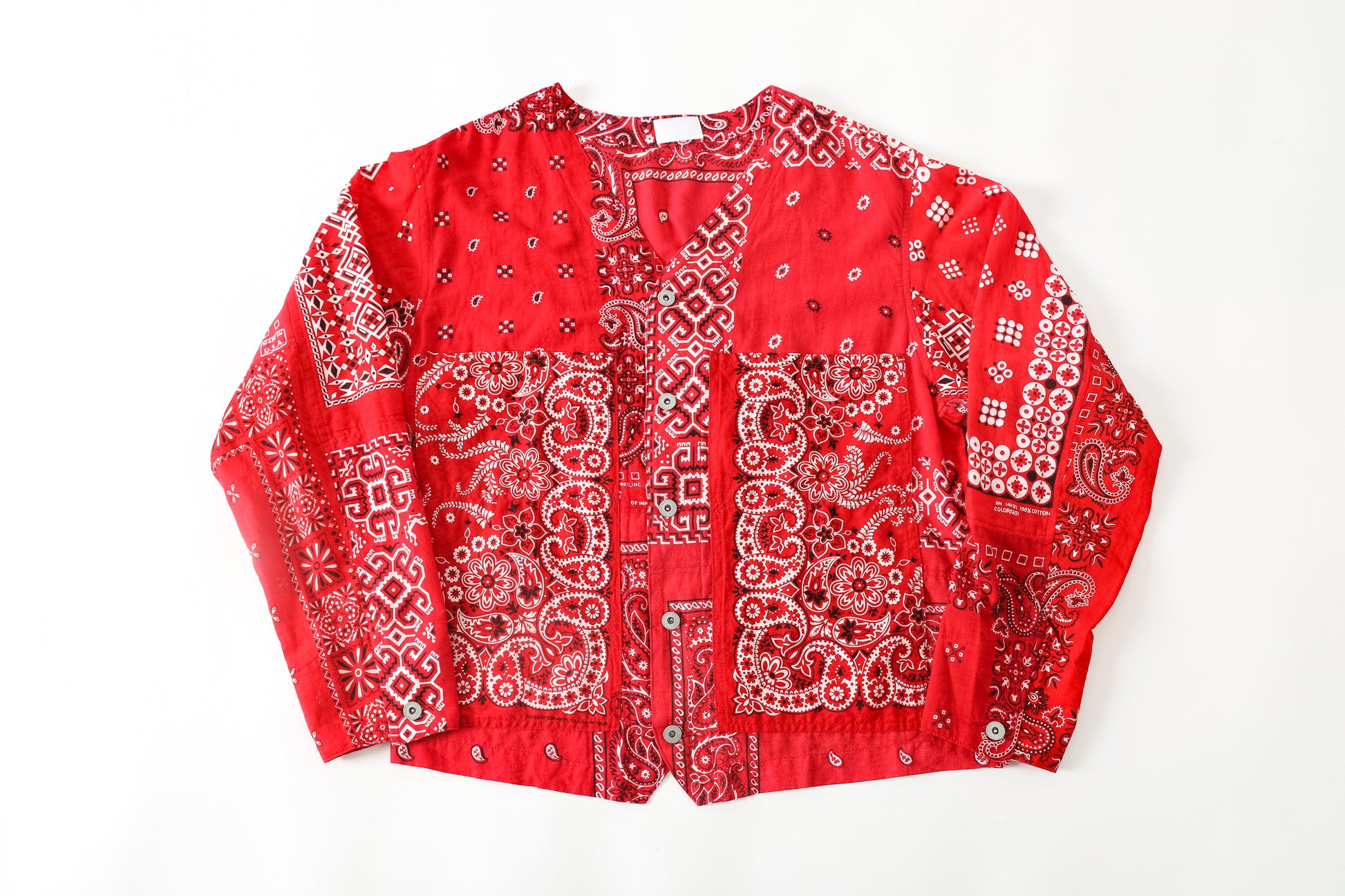 Usedのバンダナを複数枚解体し、エンジニアジャケットベースのノーカラージャケットに再構築した、Remake Engineer Jacket。