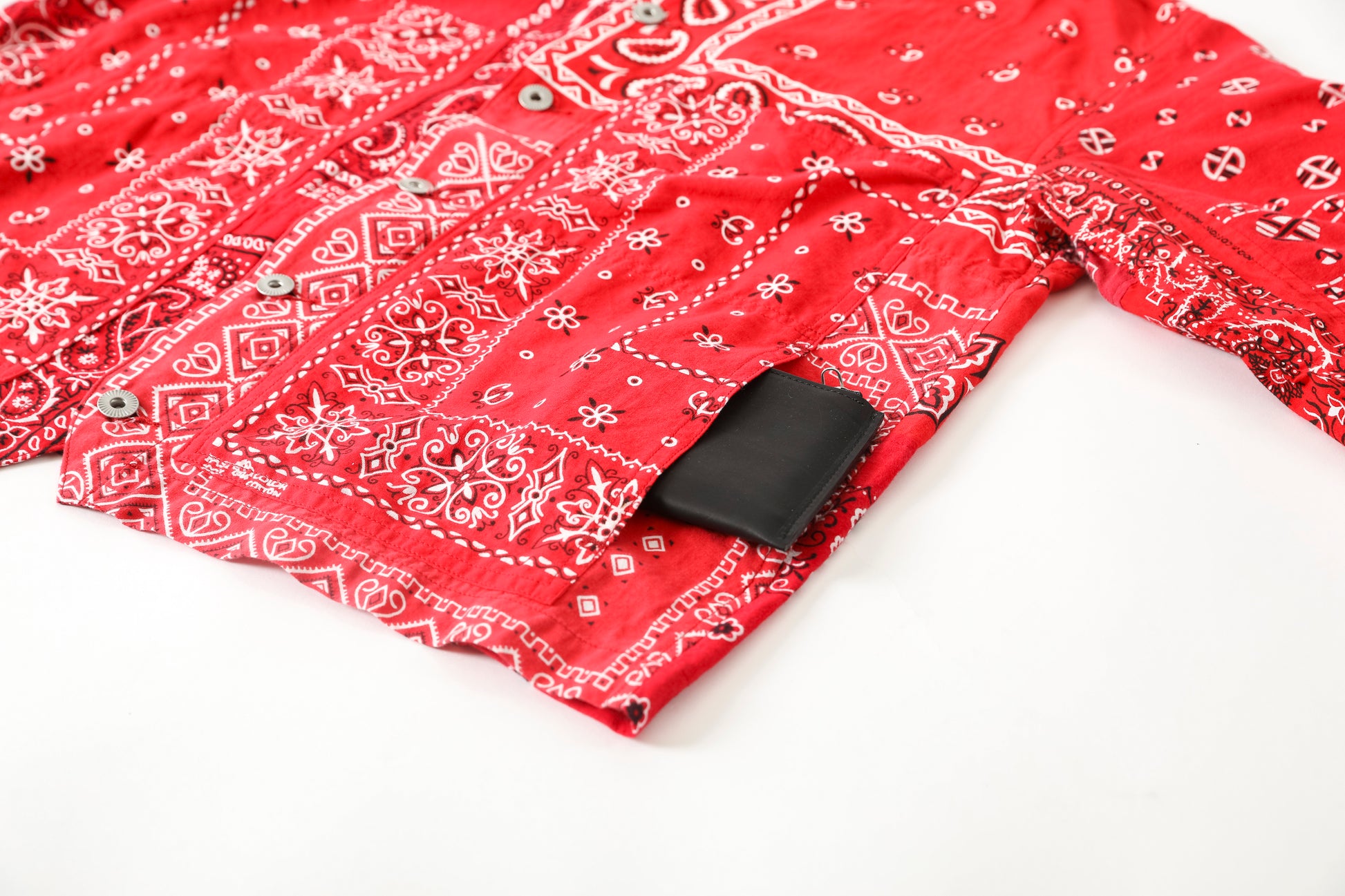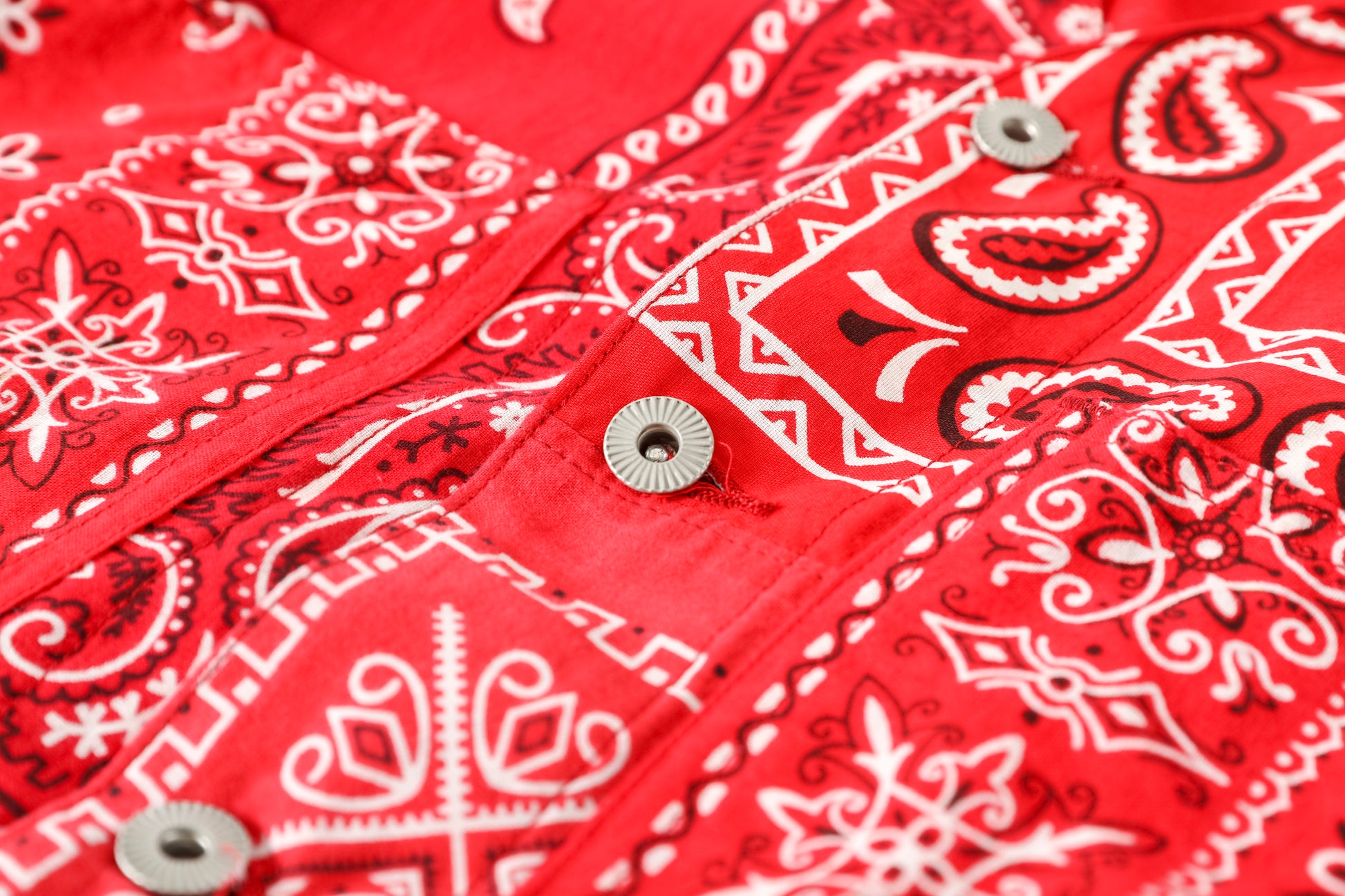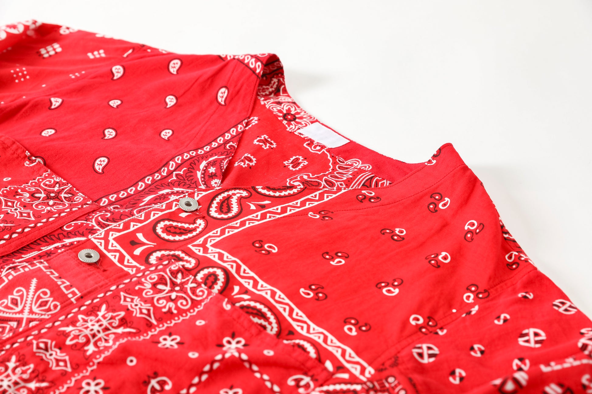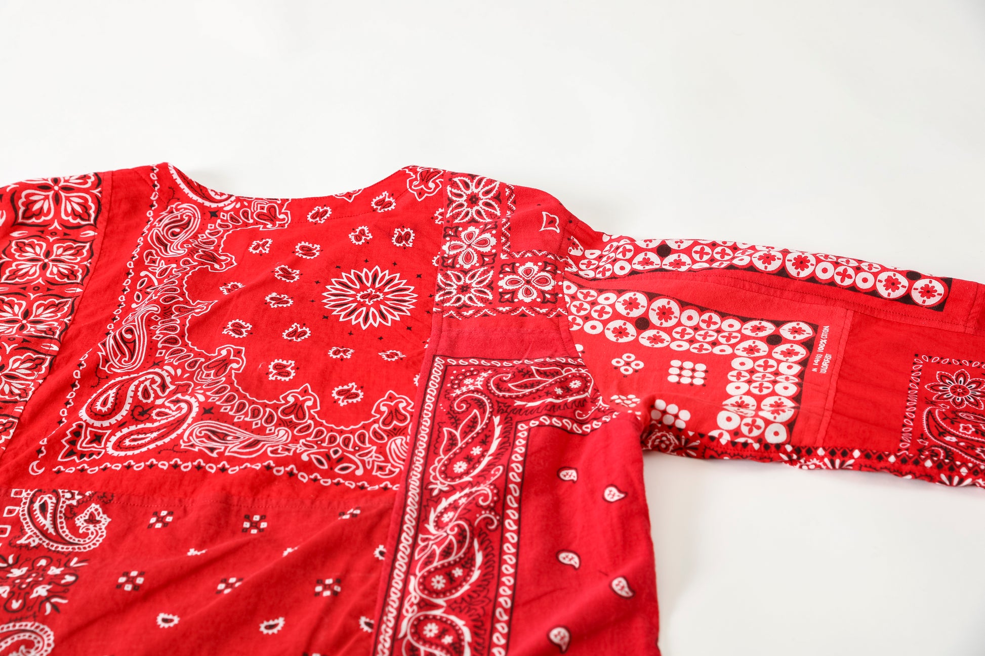Usedのバンダナを複数枚解体し、エンジニアジャケットベースのノーカラージャケットに再構築した、Remake Engineer Jacket。