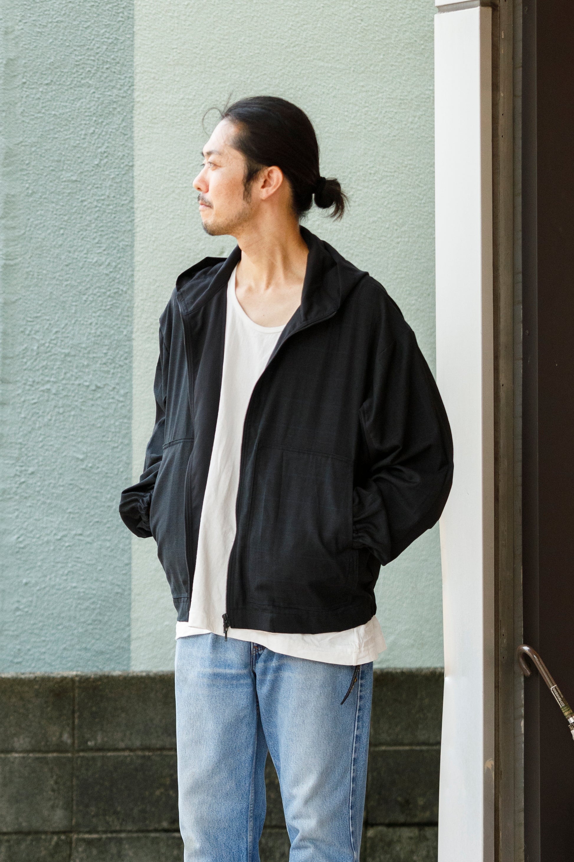 古着のスラックスパンツを解体し、フードブルゾンに再構築した、CH5053 Remake Hoodie(slacks)。
