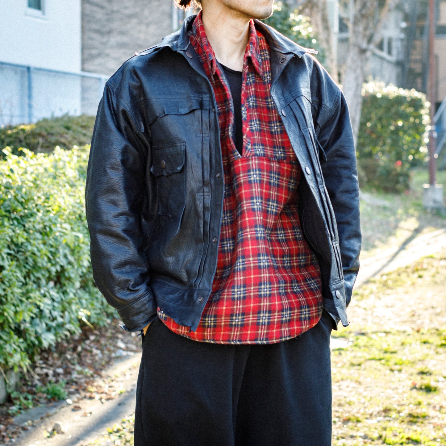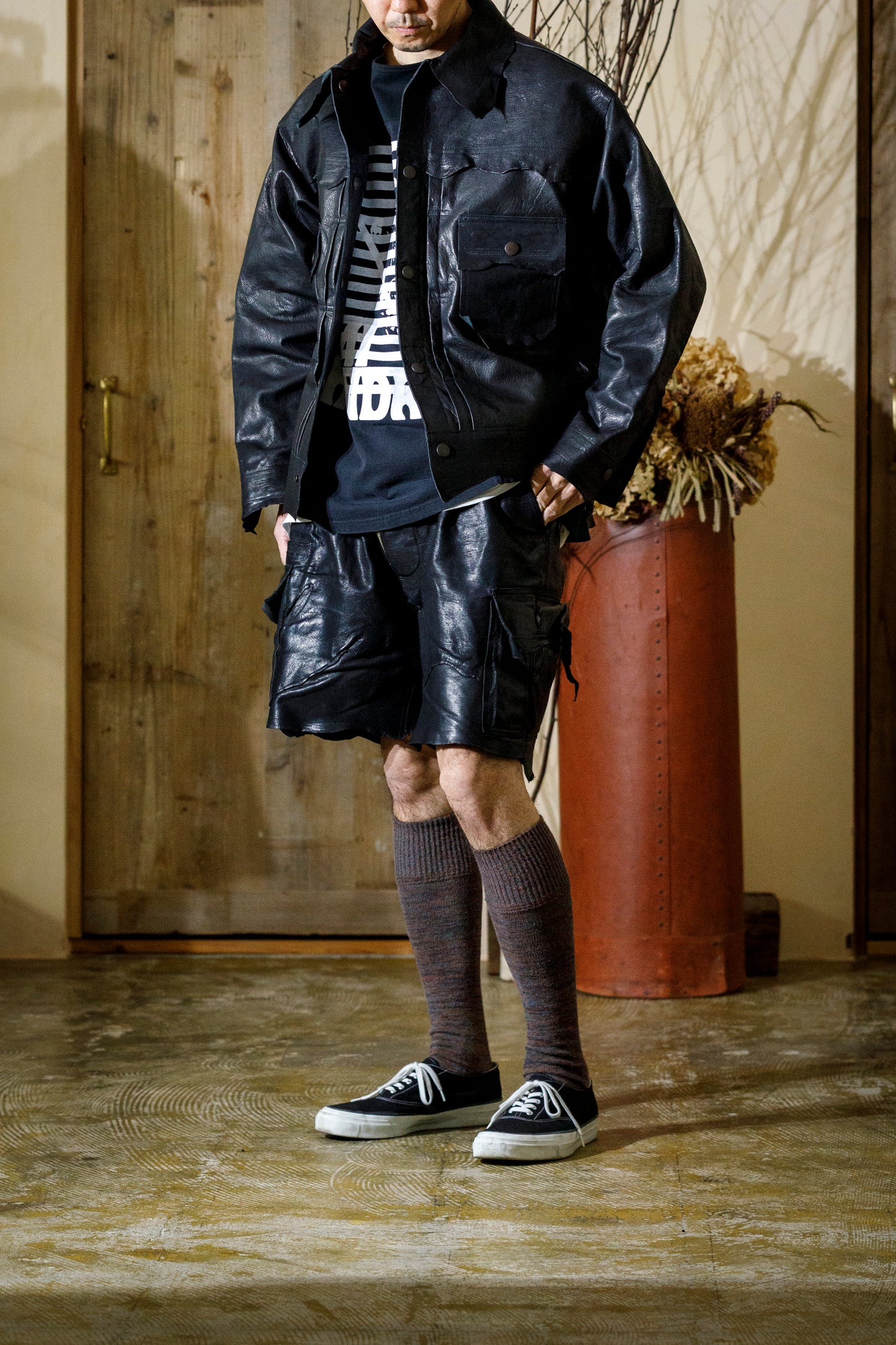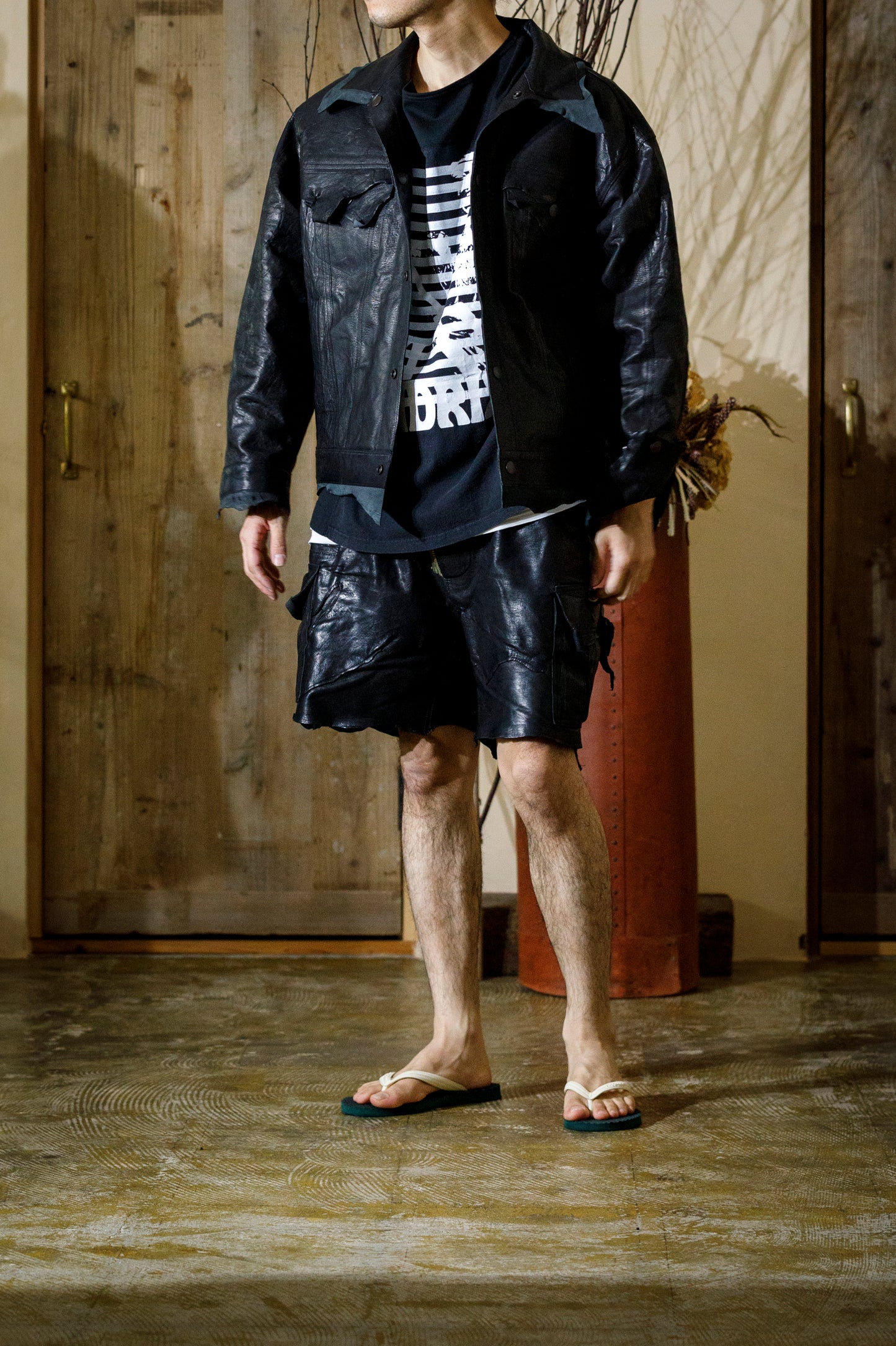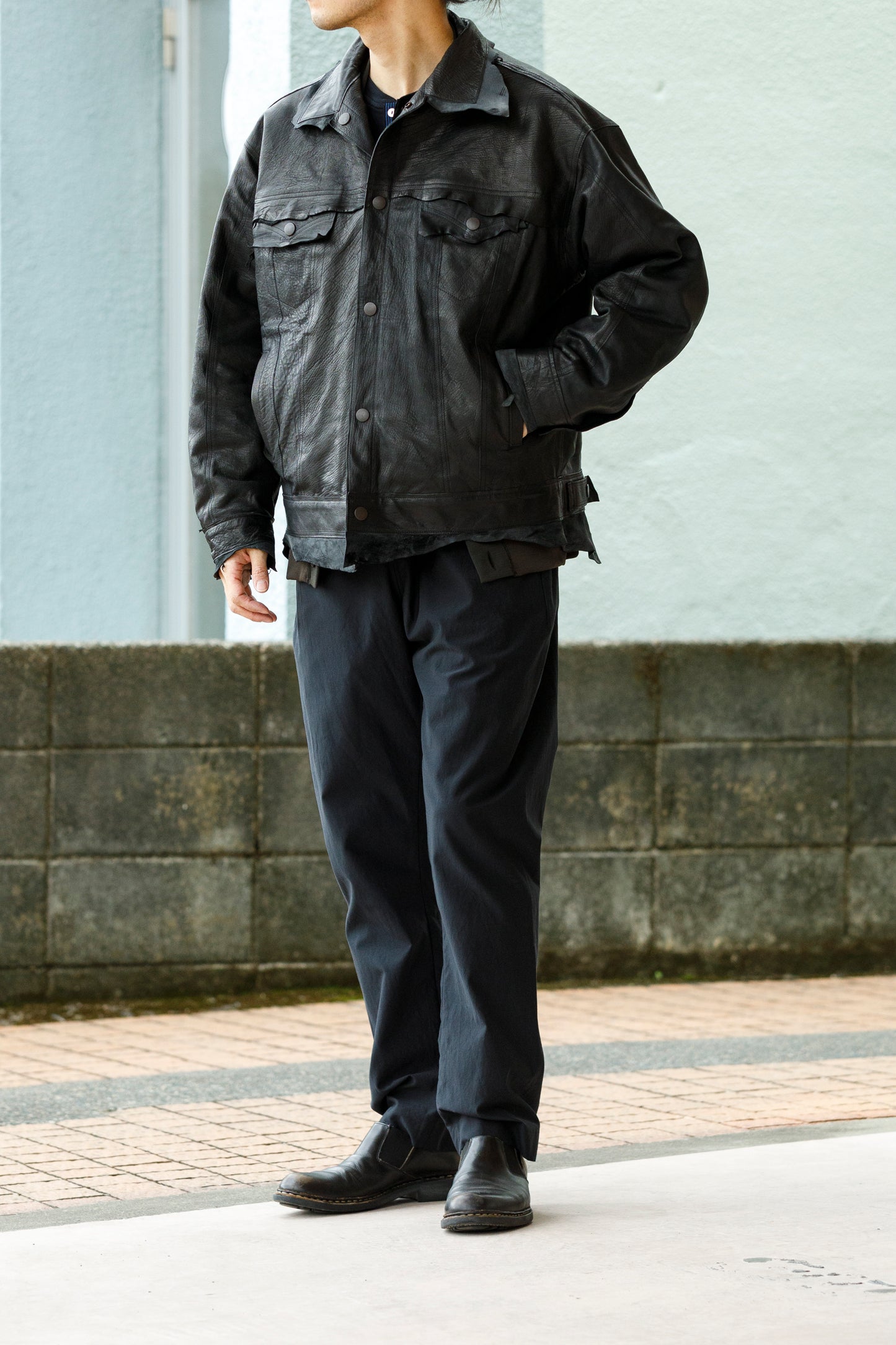 デザイナーがバイヤー時代にニューヨークはチェルシーマーケットで手に入れたジャケットからインスピレーションを受け、2ndと3rdタイプのリバーシブル仕様で仕上げた新作、Leather Trucker Jacket"CHELSEA"。