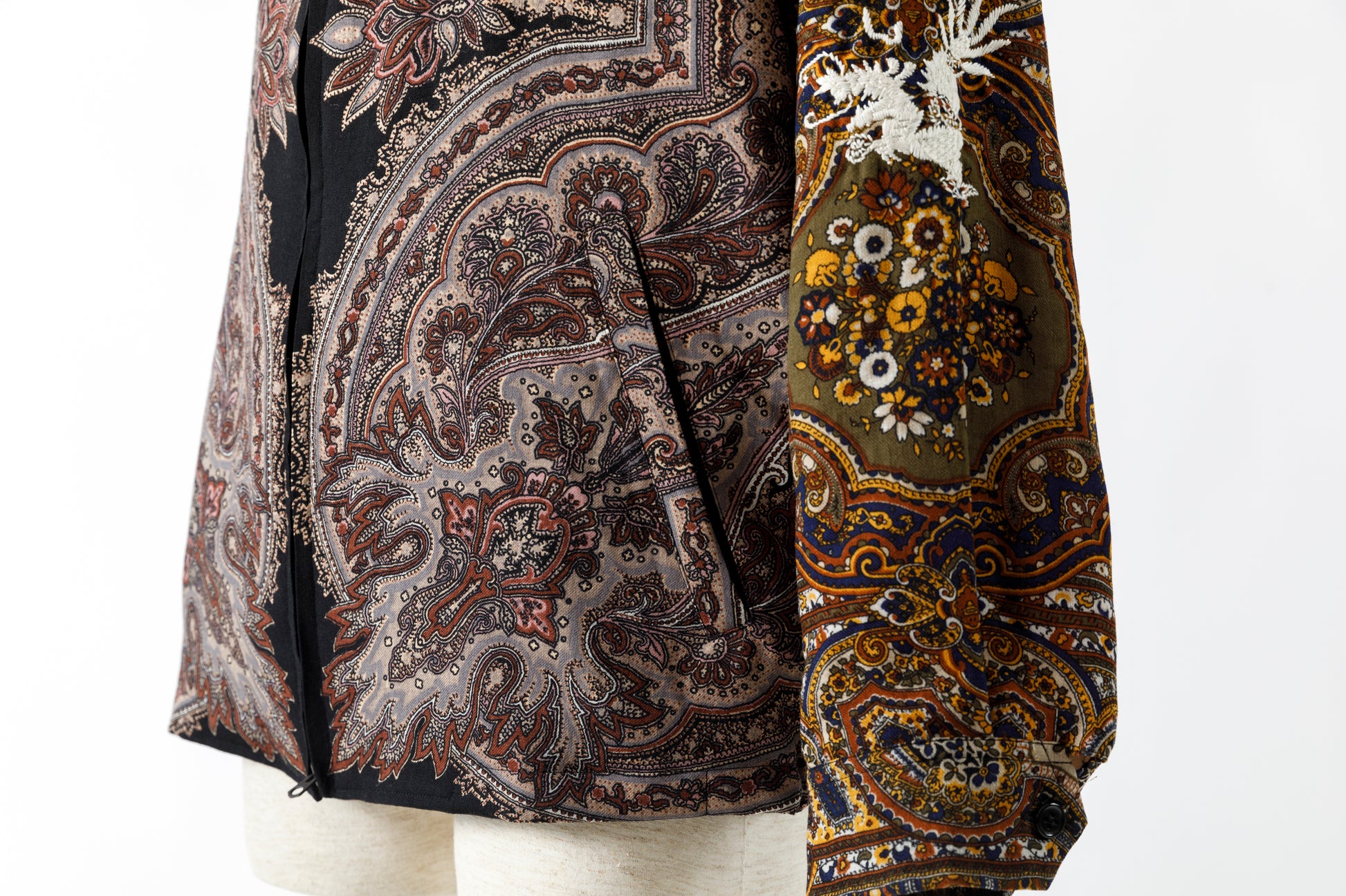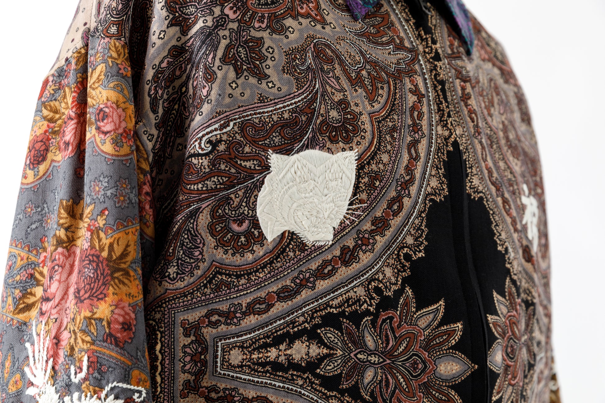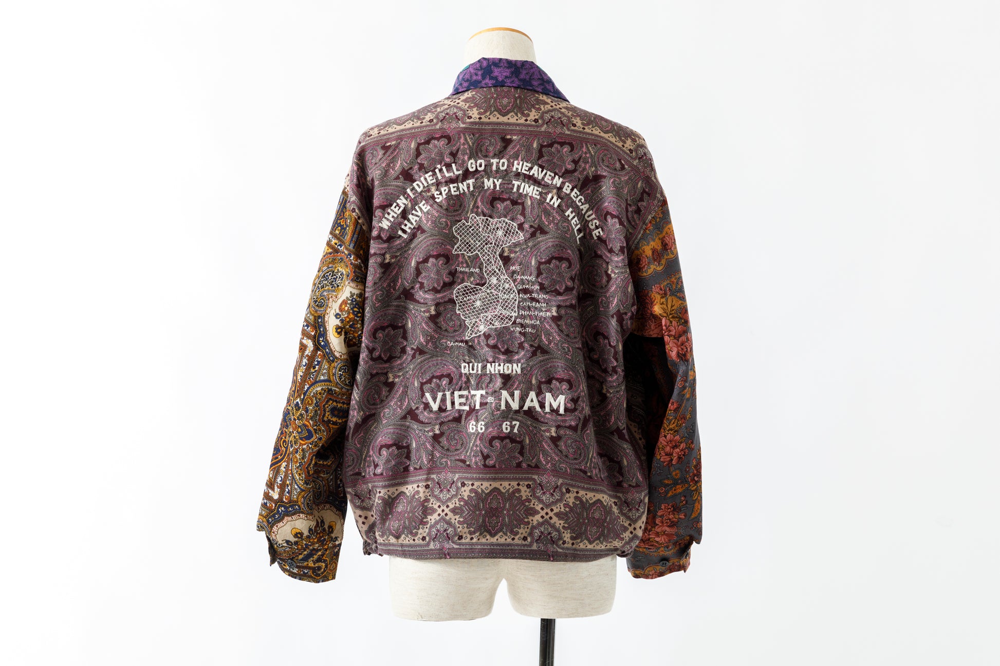 オーストリアのチロリアンスカーフを6枚使用し、オリジナルのシャツジャケットに再構築した、TYROLEAN VIETNAM JACKET(COOL)。
