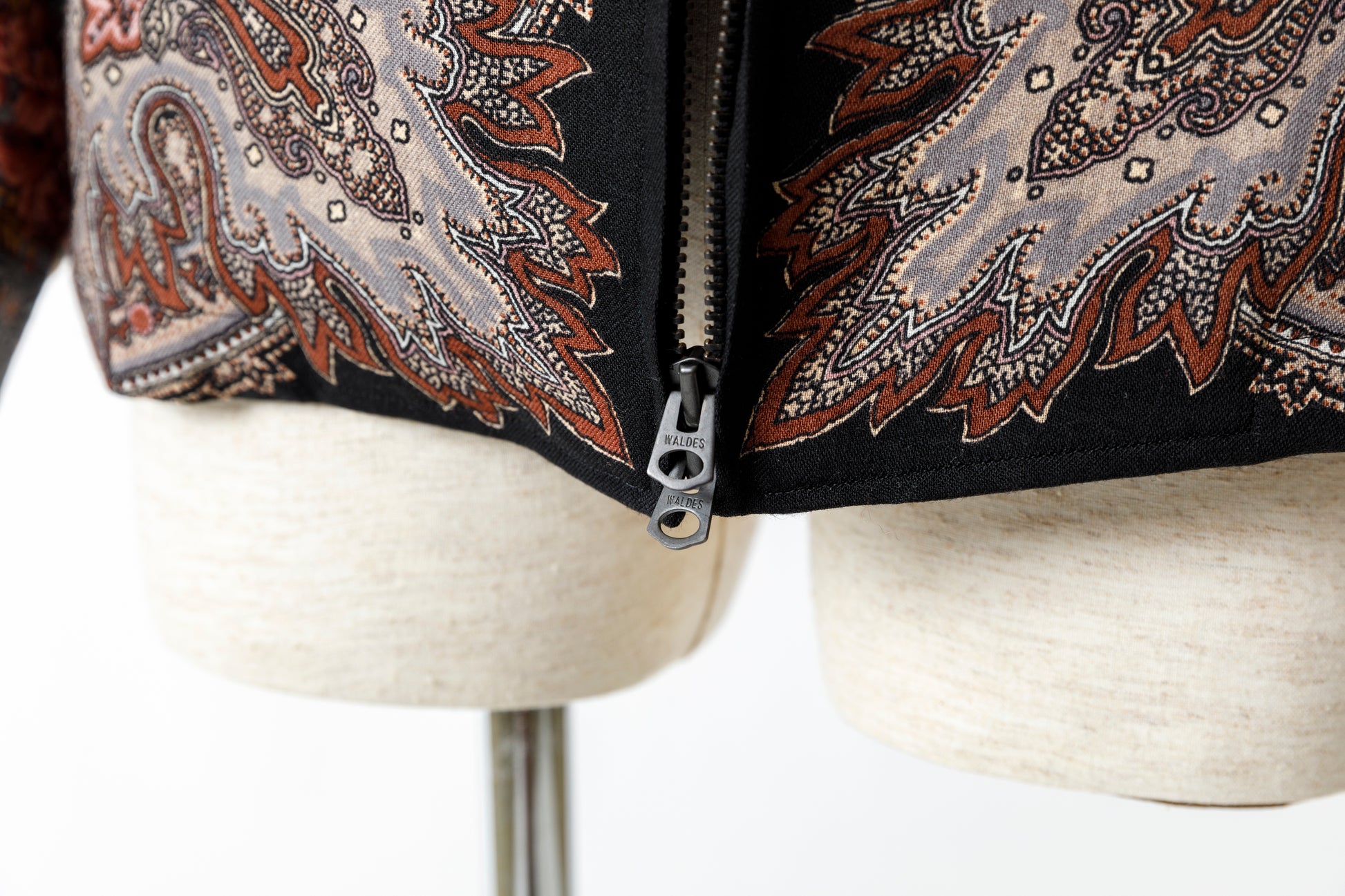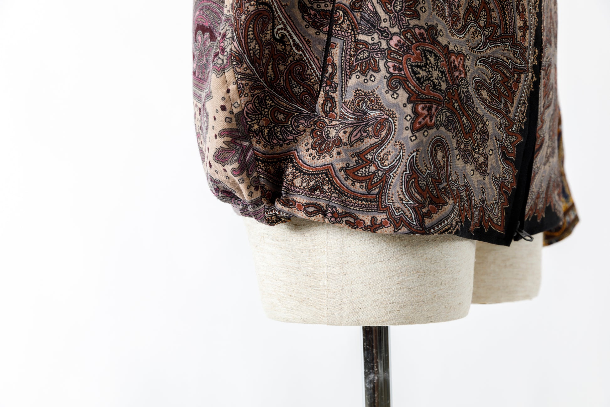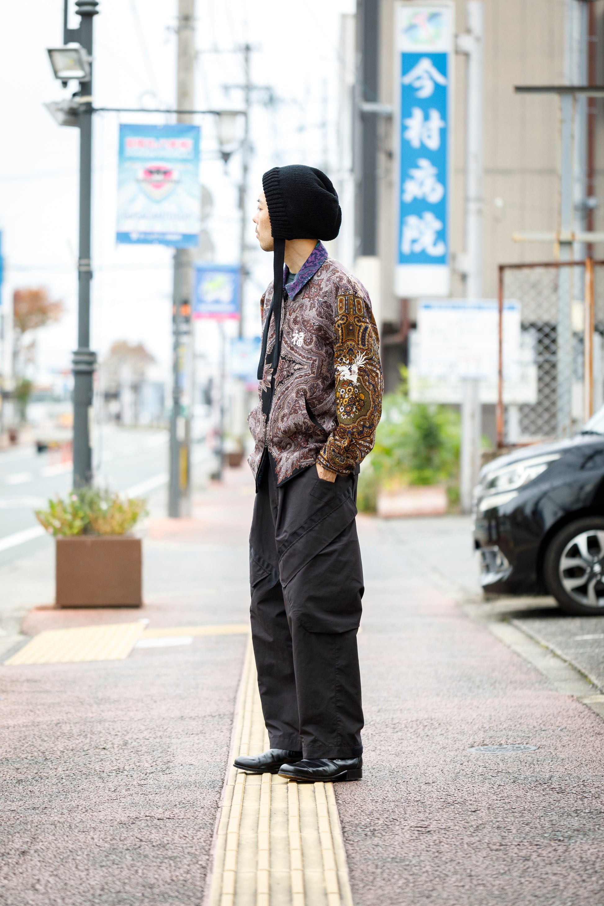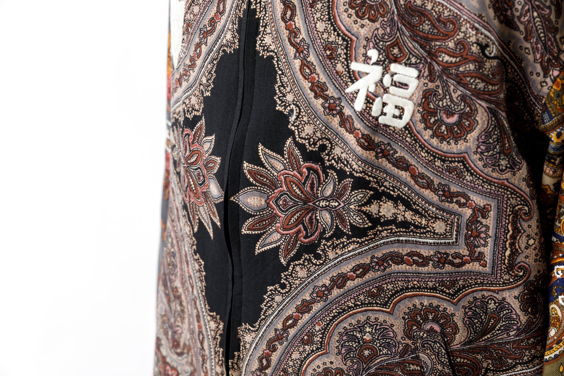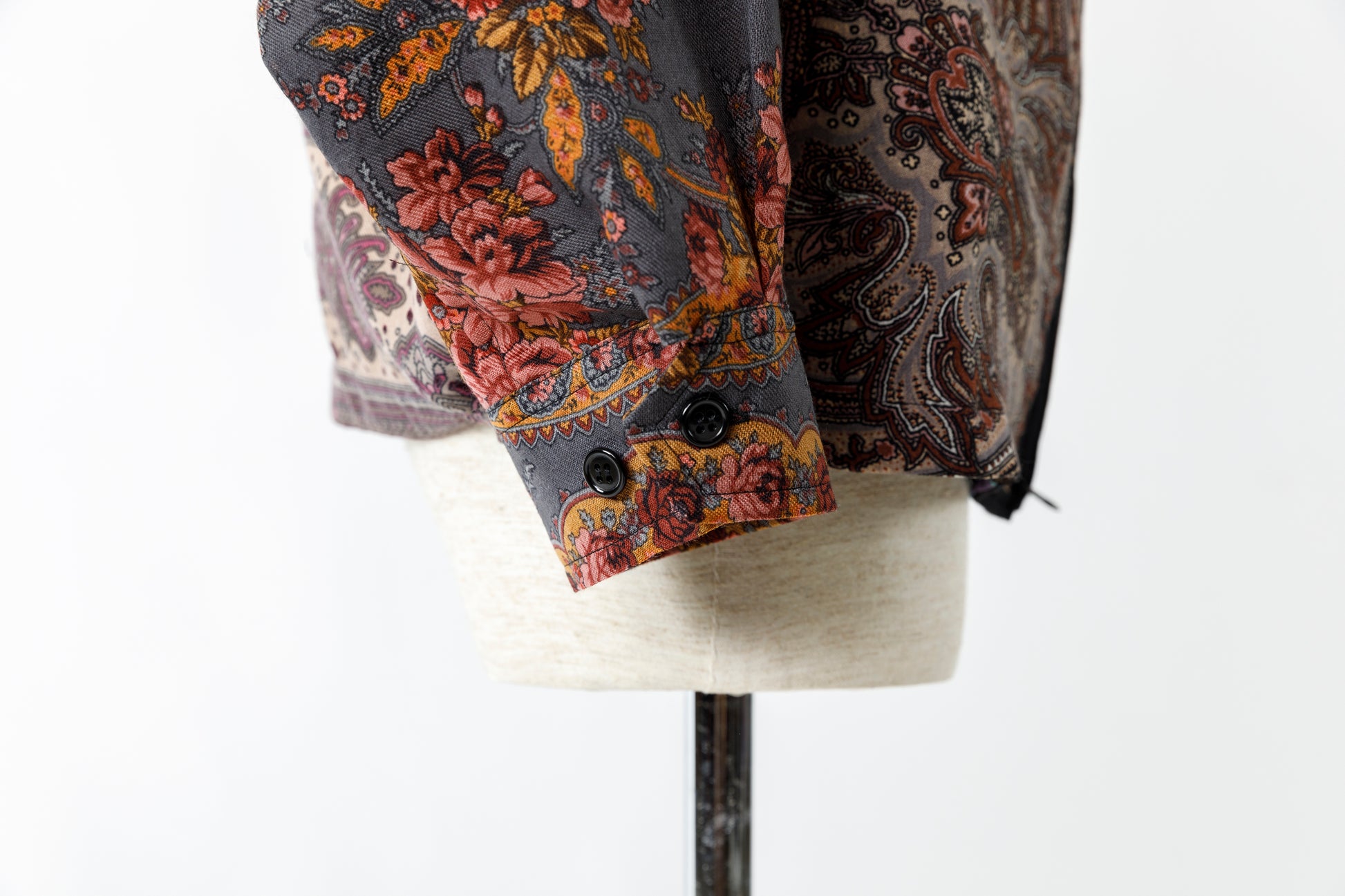 生地の落ち感もあり軽くサラッとした着心地で、ペイズリーや幾何学模様のような存在感のある柄です。