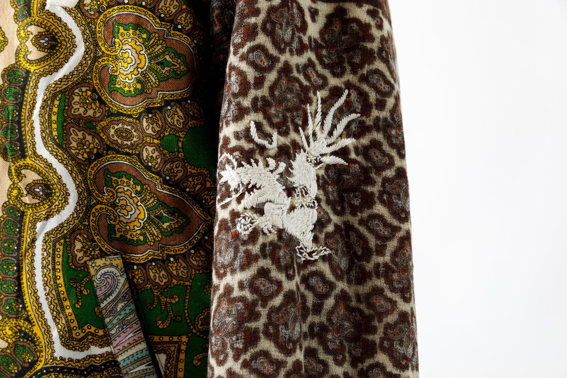 オーストリアのチロリアンスカーフを6枚使用し、オリジナルのシャツジャケットに再構築した、TYROLEAN VIETNAM JACKET(WARM))。