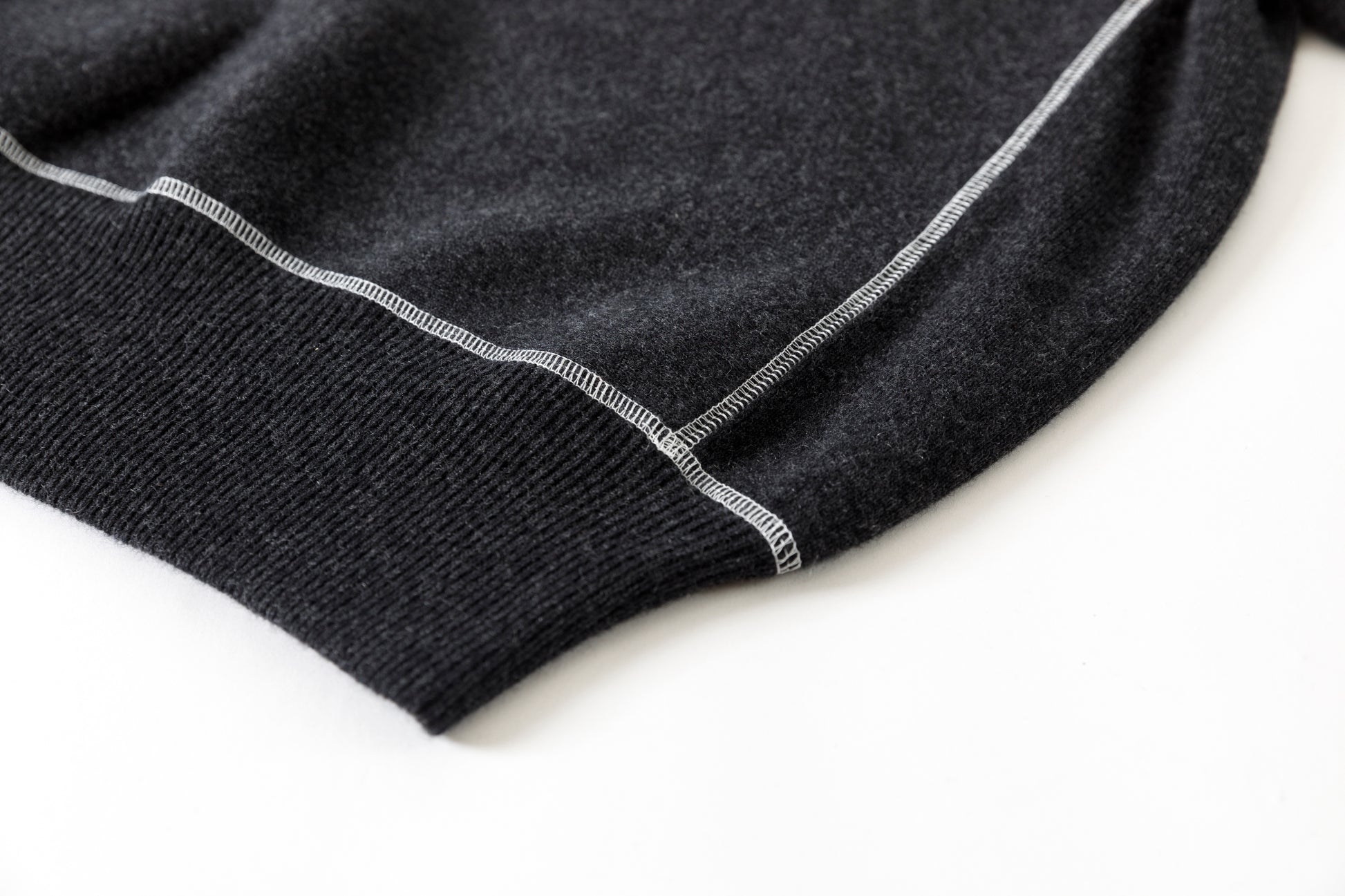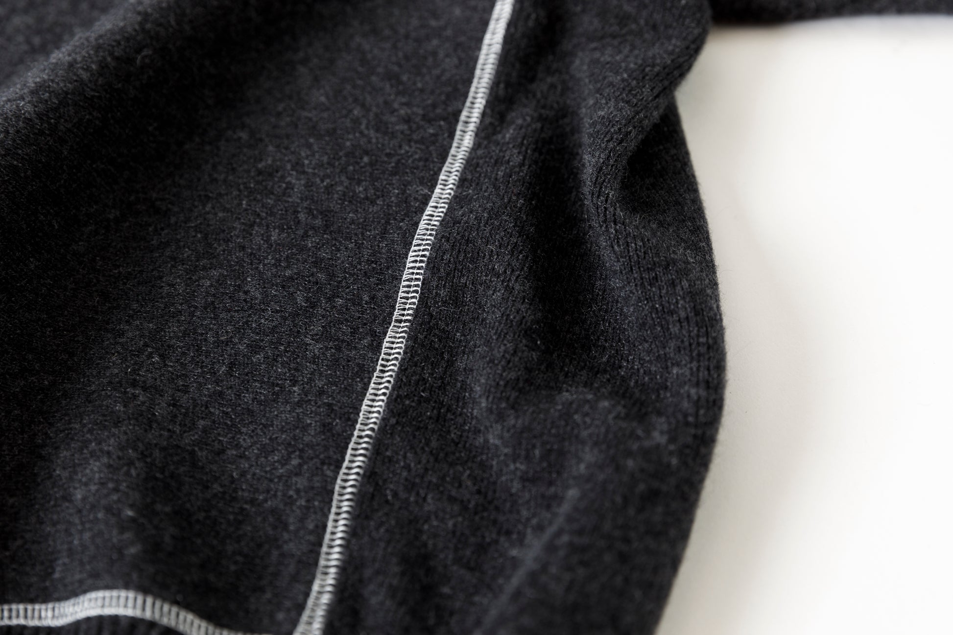 カシミアの強度を高めるために採用されたスムース編みは編み地の中でも隙間の少ない密な組織。