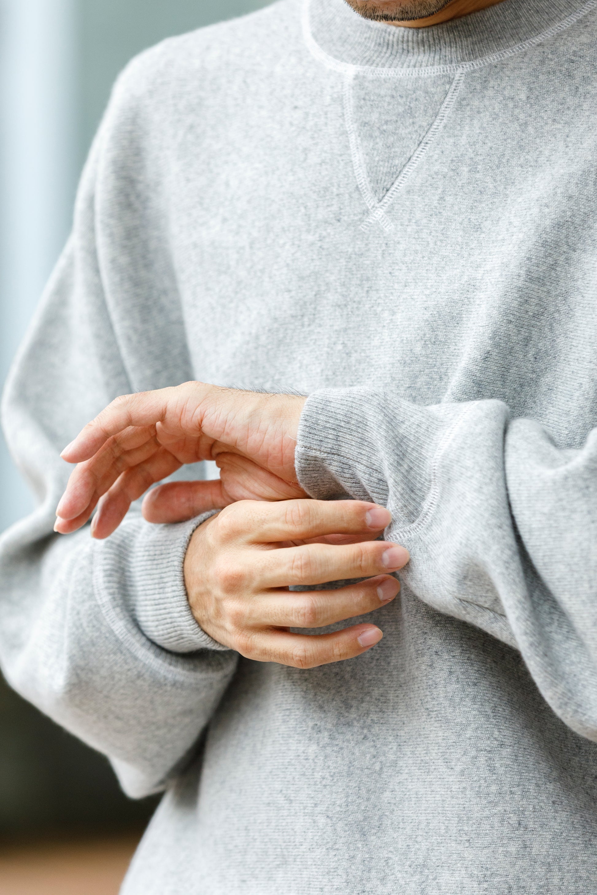 贅沢にカシミア100%を使用したリバースウィーブ型のスウェット品番、PURE CASHMERE SWEAT PO - T.Gray。