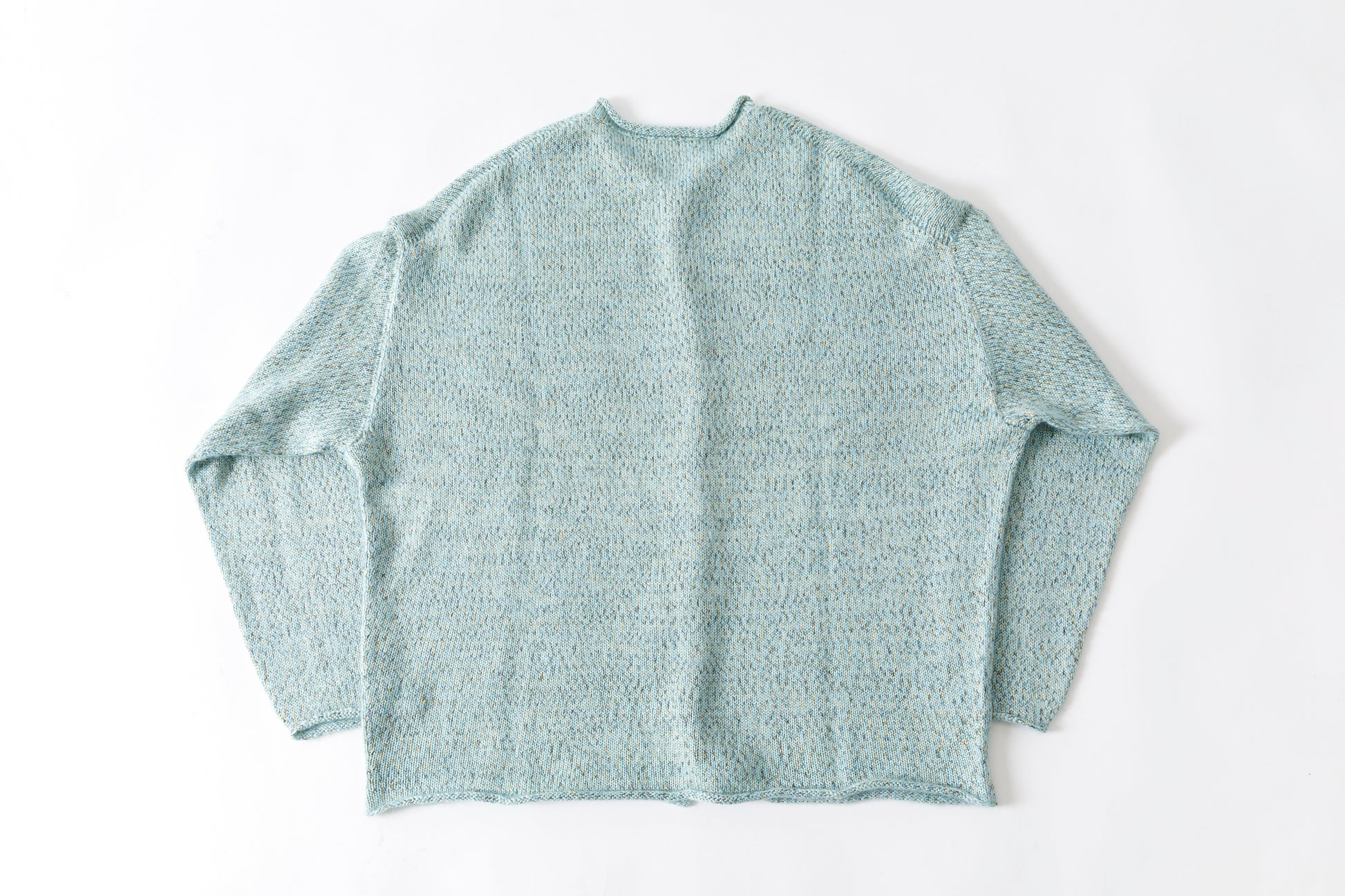 袖つけは縫い目を無くしチューブ状に編み、着用した際のごろつきや脇下の全体のシワが寄りにくい着心地を目指してたどり着いたデザイン。