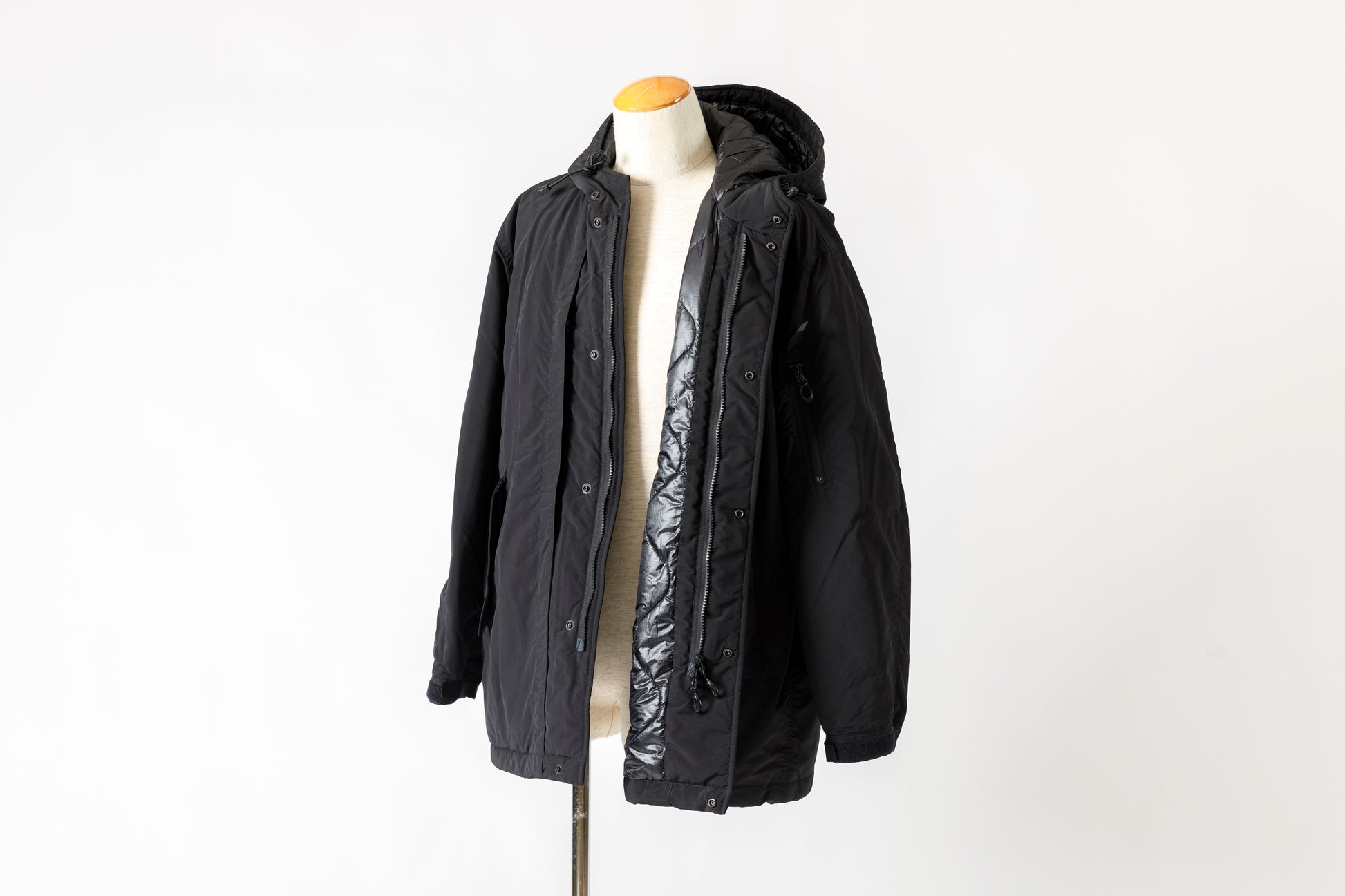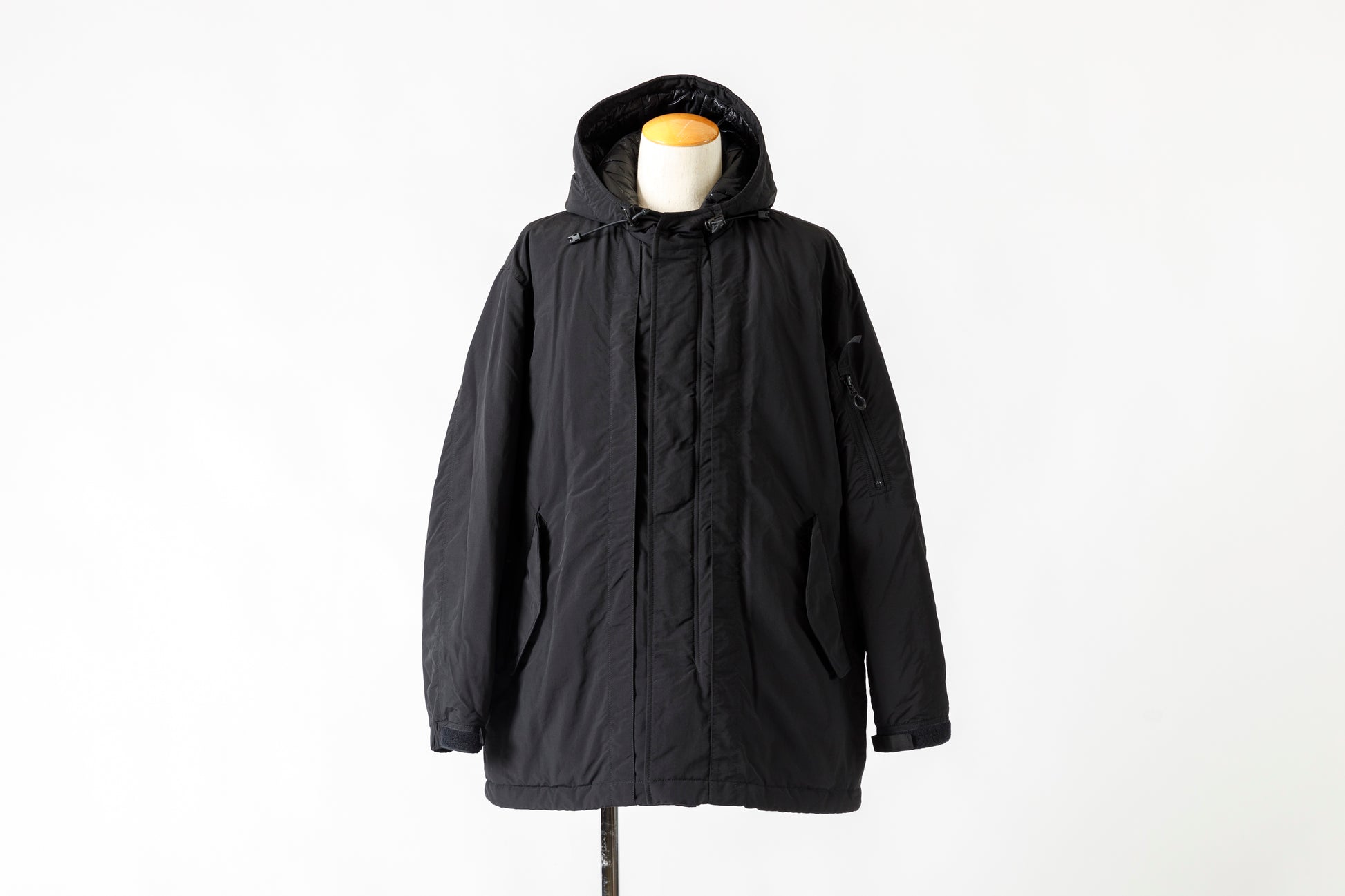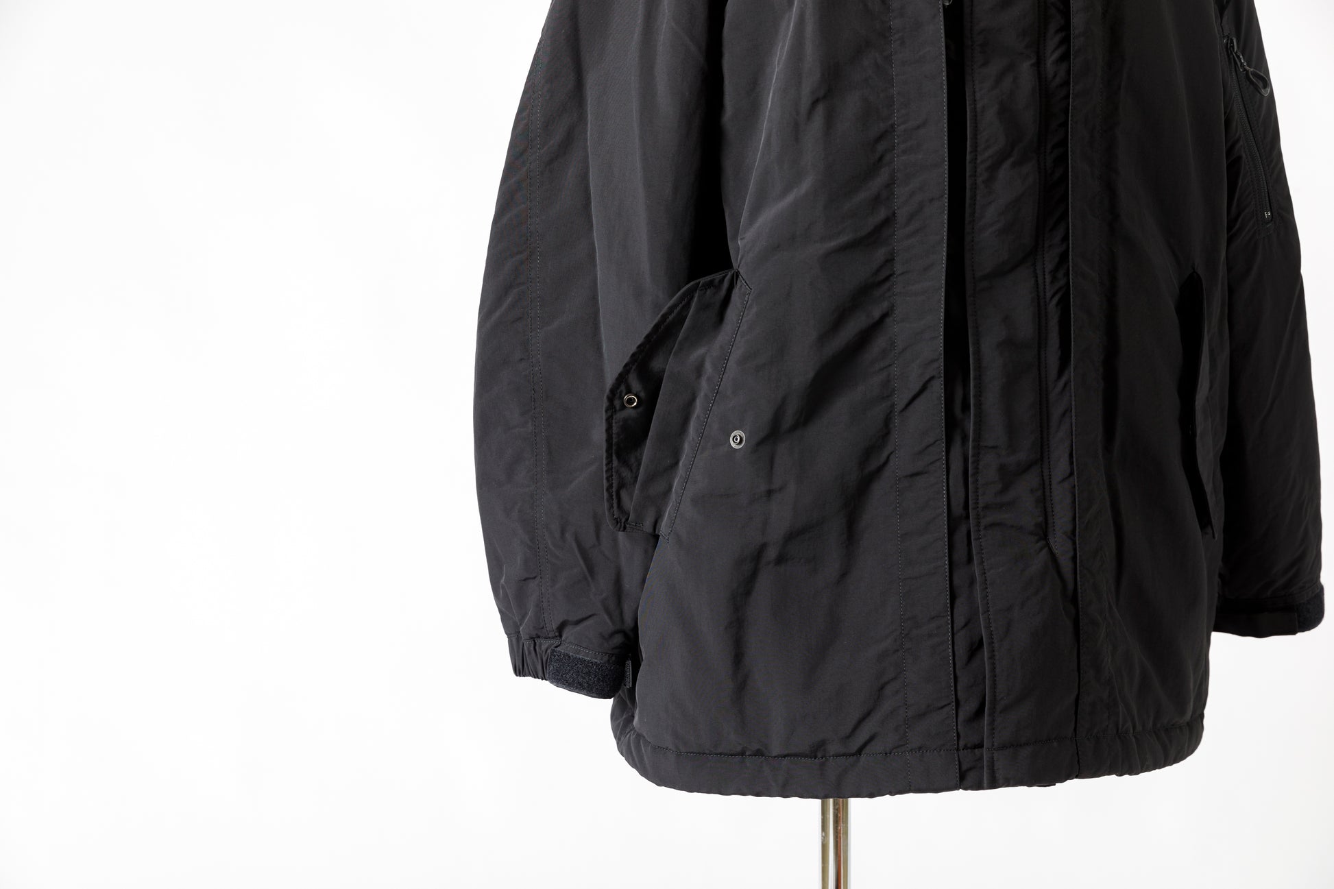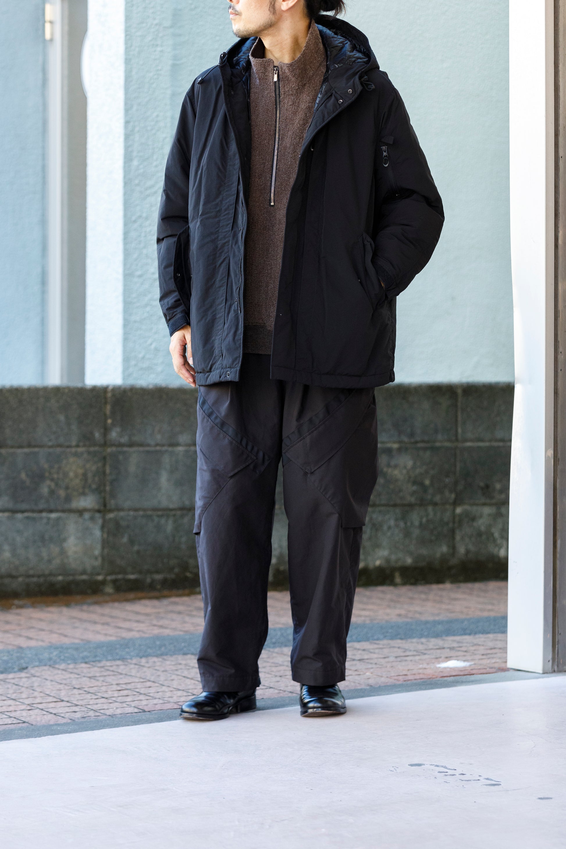 米国陸軍で1940年代後半から支給され、変遷を繰り返したシェルパーカーからインスピレーションを受け、現代の気候や都市生活にアジャストするために制作された、MT1801 MOUT INSULATION FIELD COAT - Black。