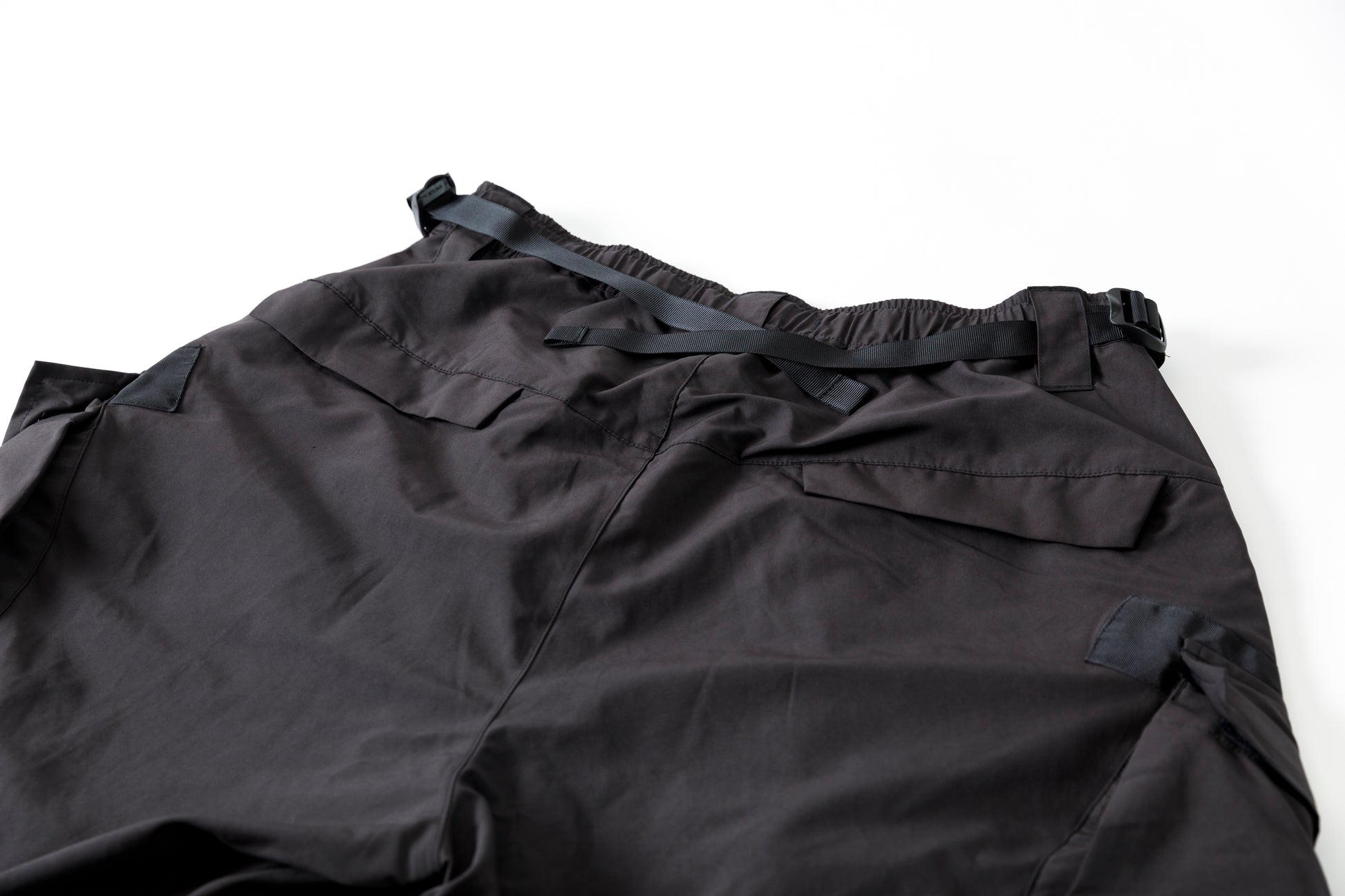 体のラインに沿うように大きく取られたカーゴポケット(iPadが入るほどの大きさ)内にも2つの内ポケット、バックのフラップポケットと全12箇所のポケットが配されております。