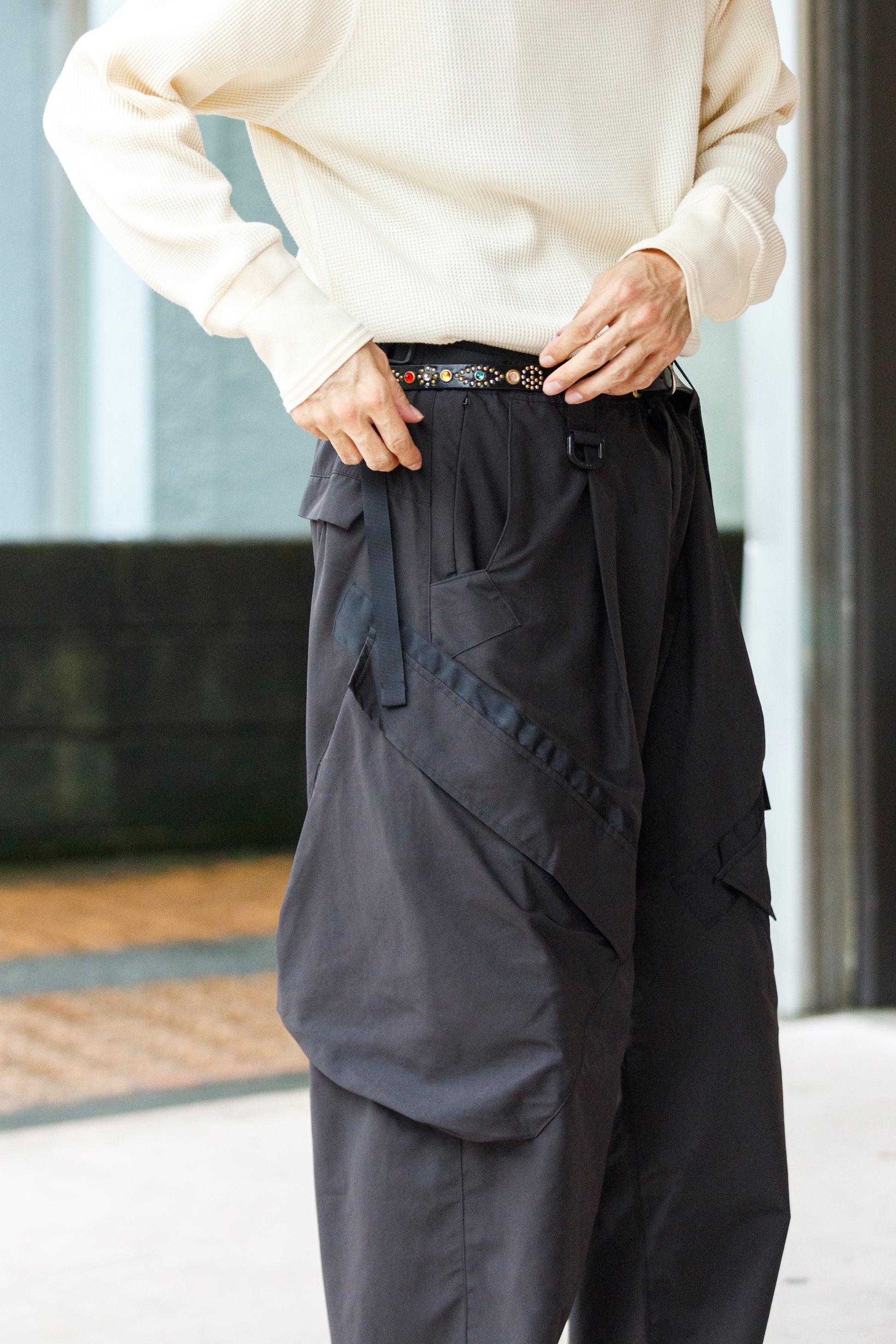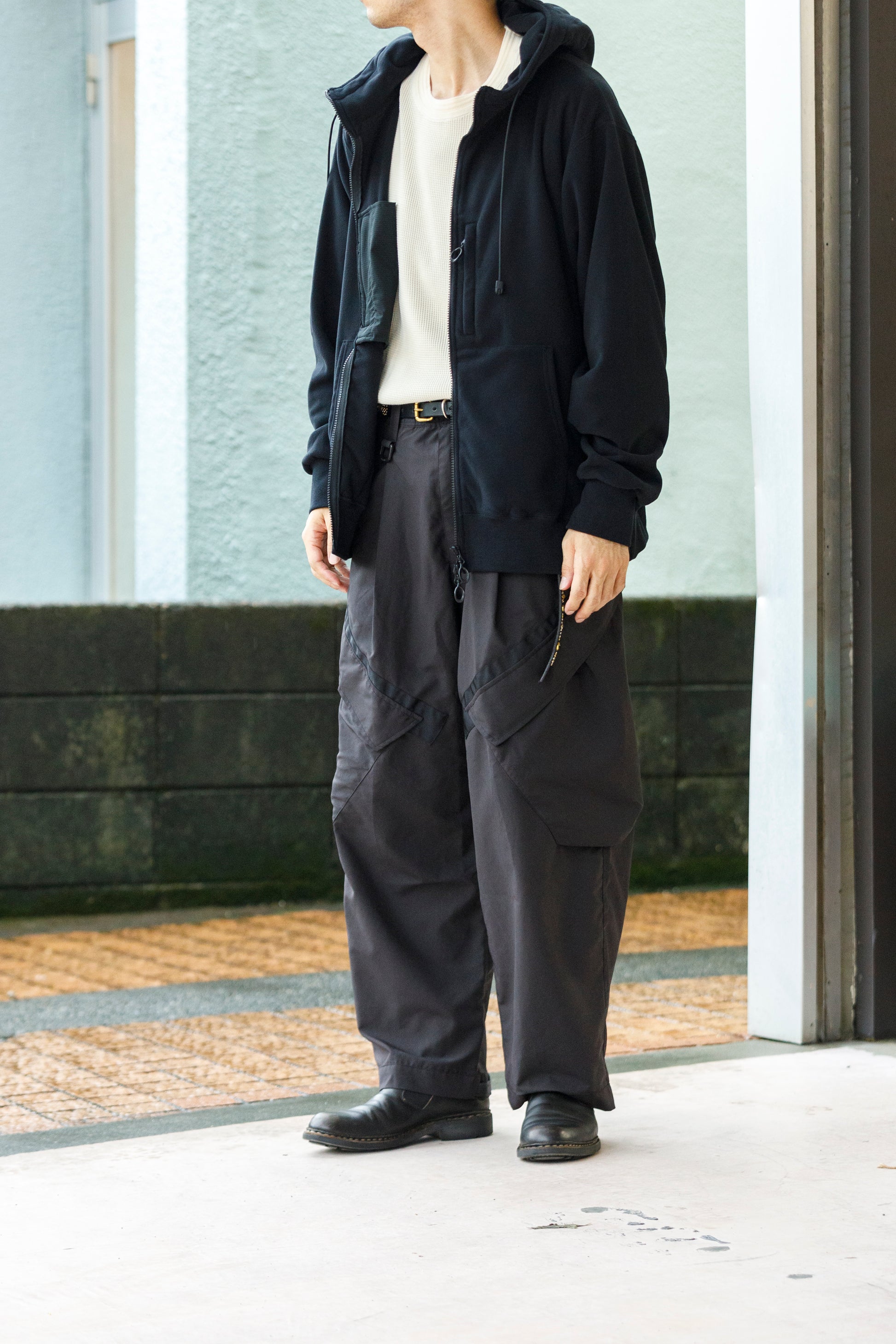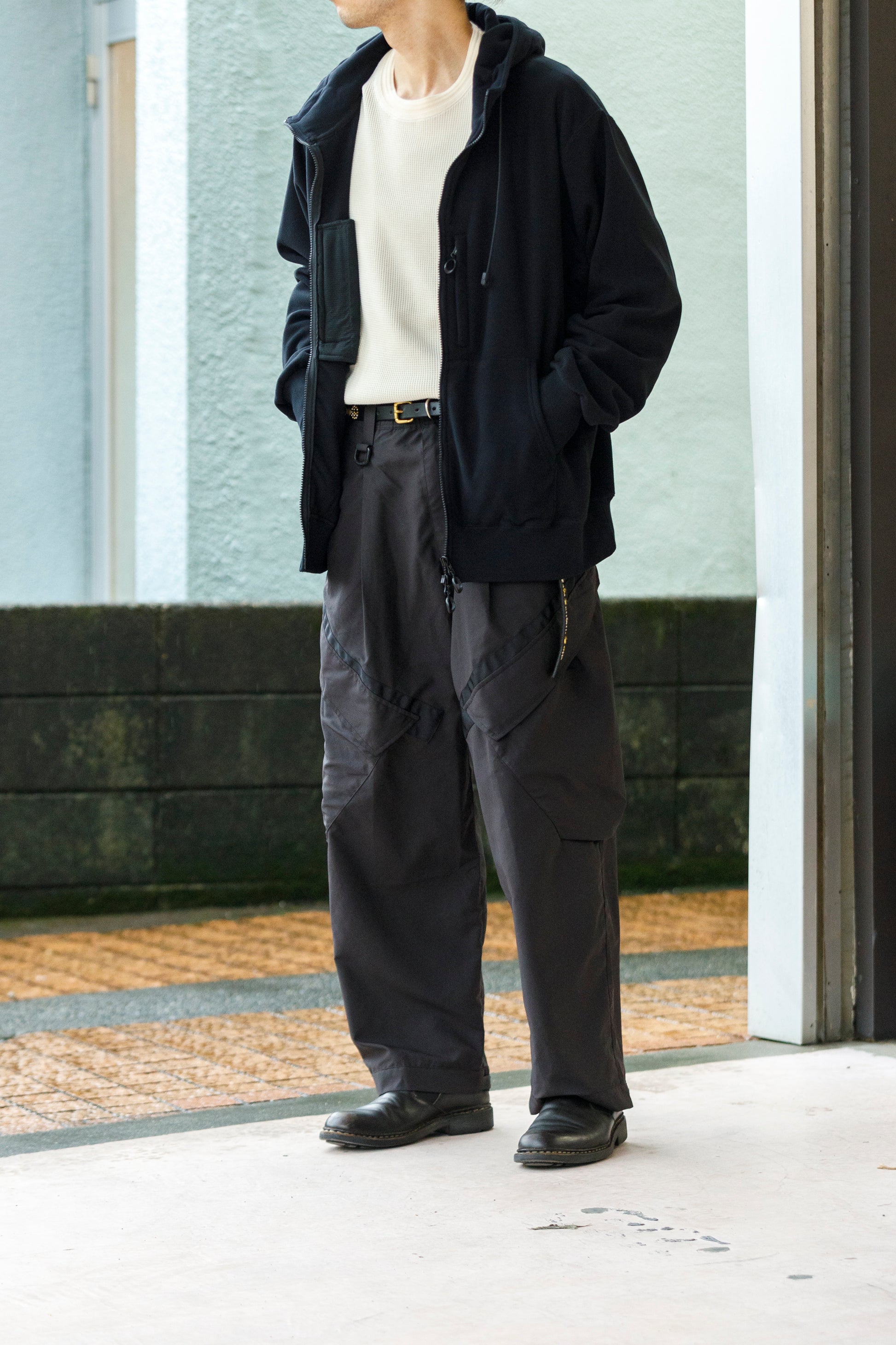 ミリタリーパンツをベースにしながらもアーバンな印象を与えるブラックカラー。