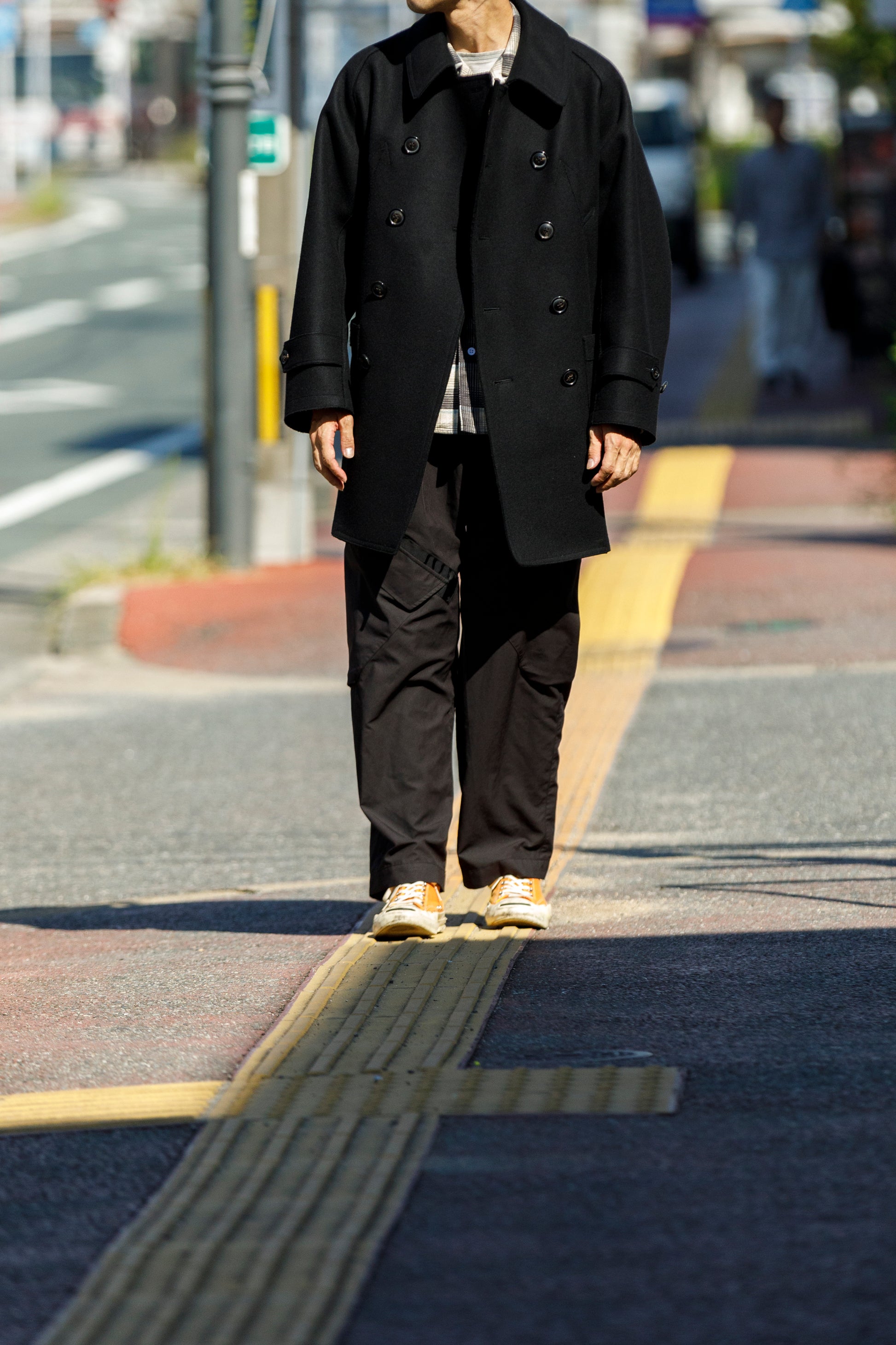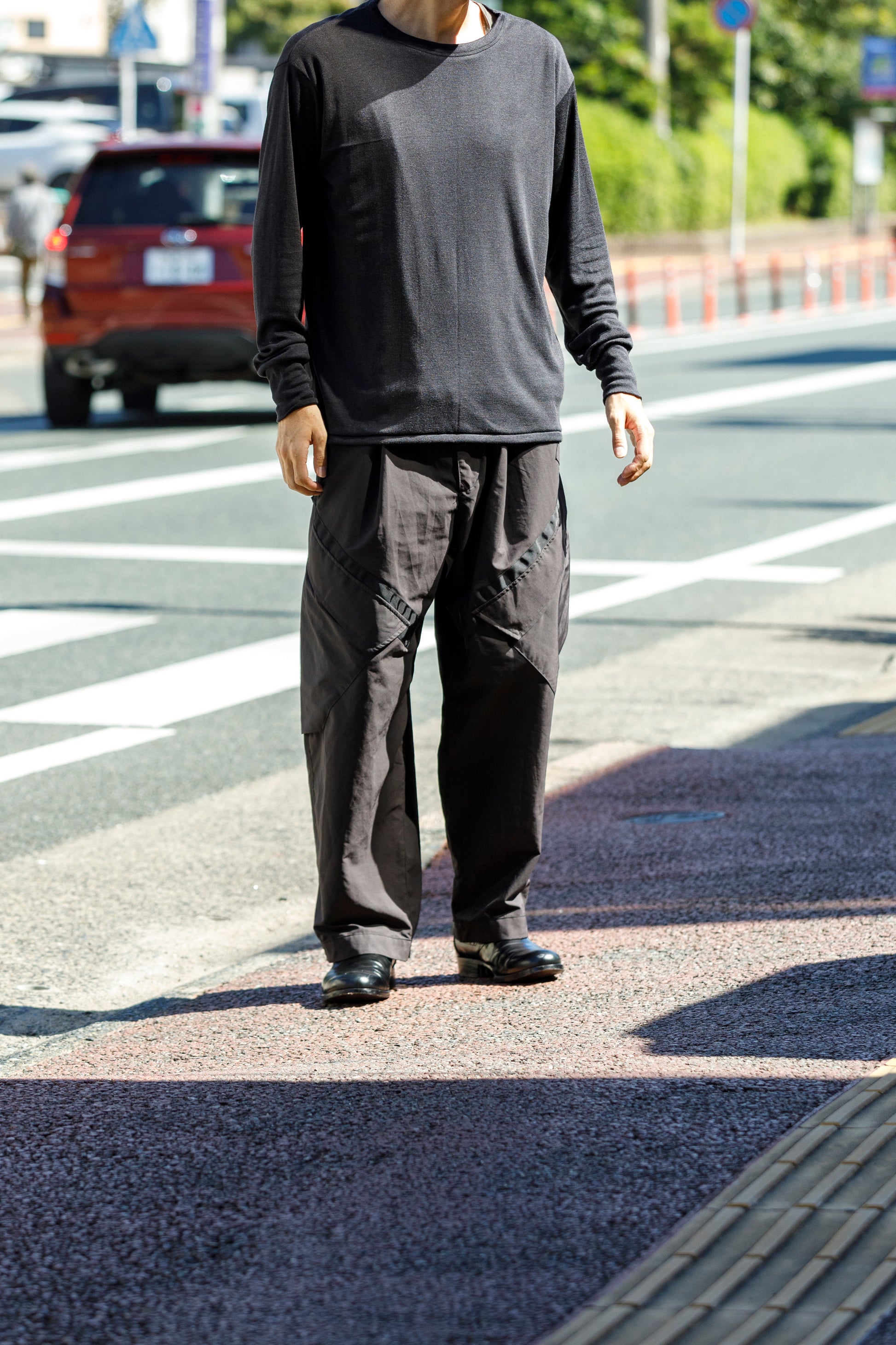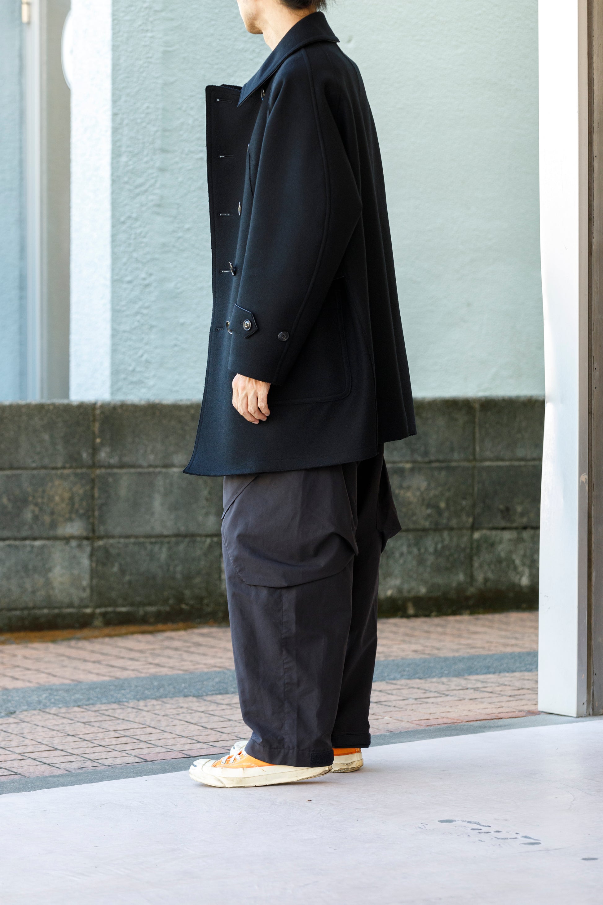 やや短めの潔いワイドストレートシルエットが秀逸なバランスとなっております。