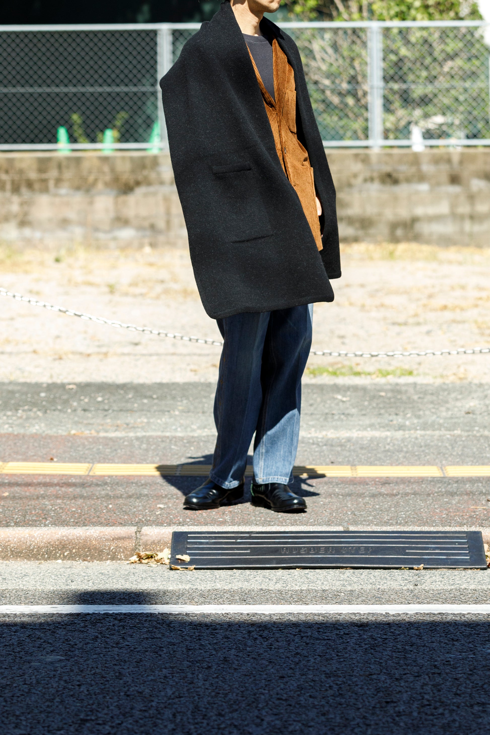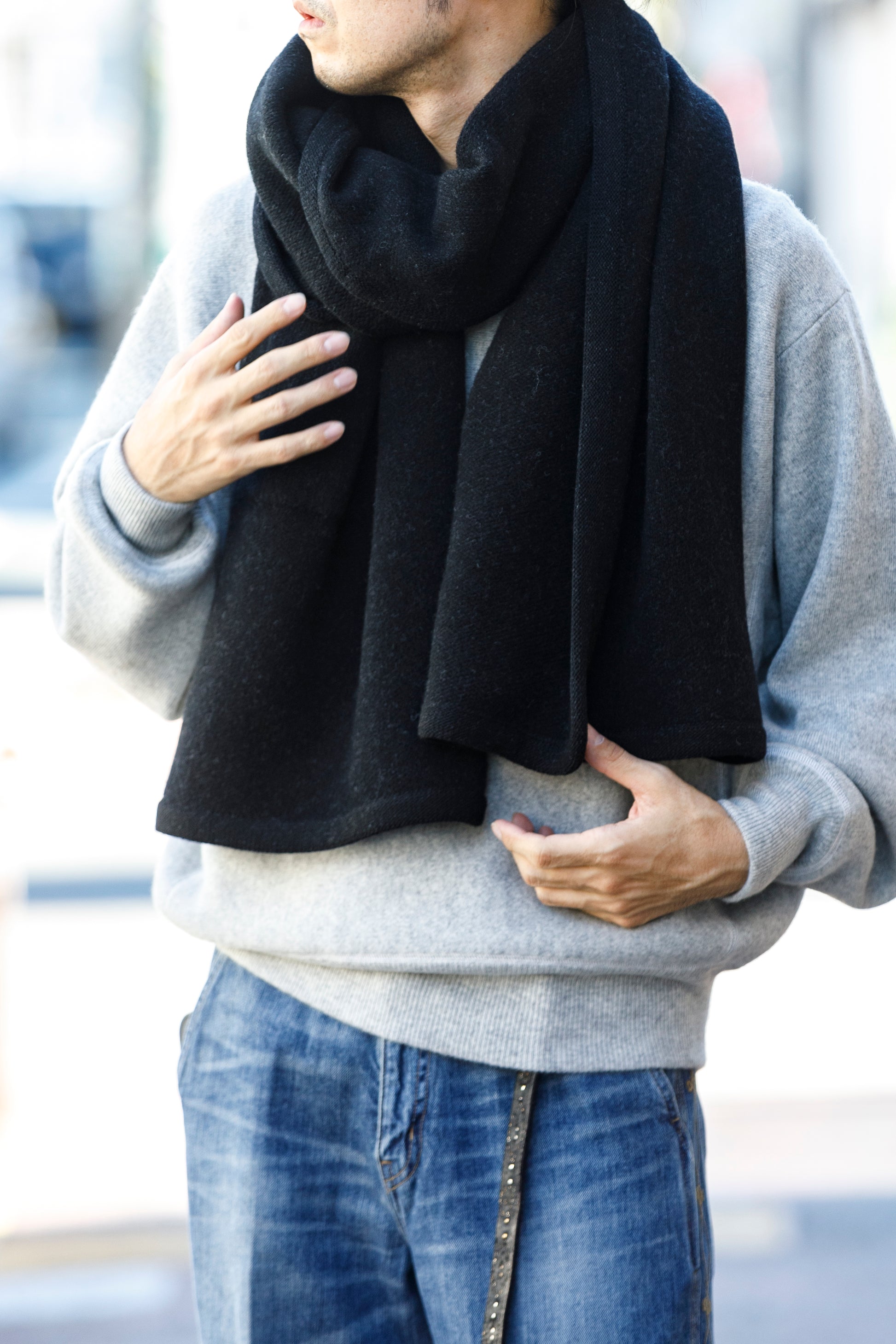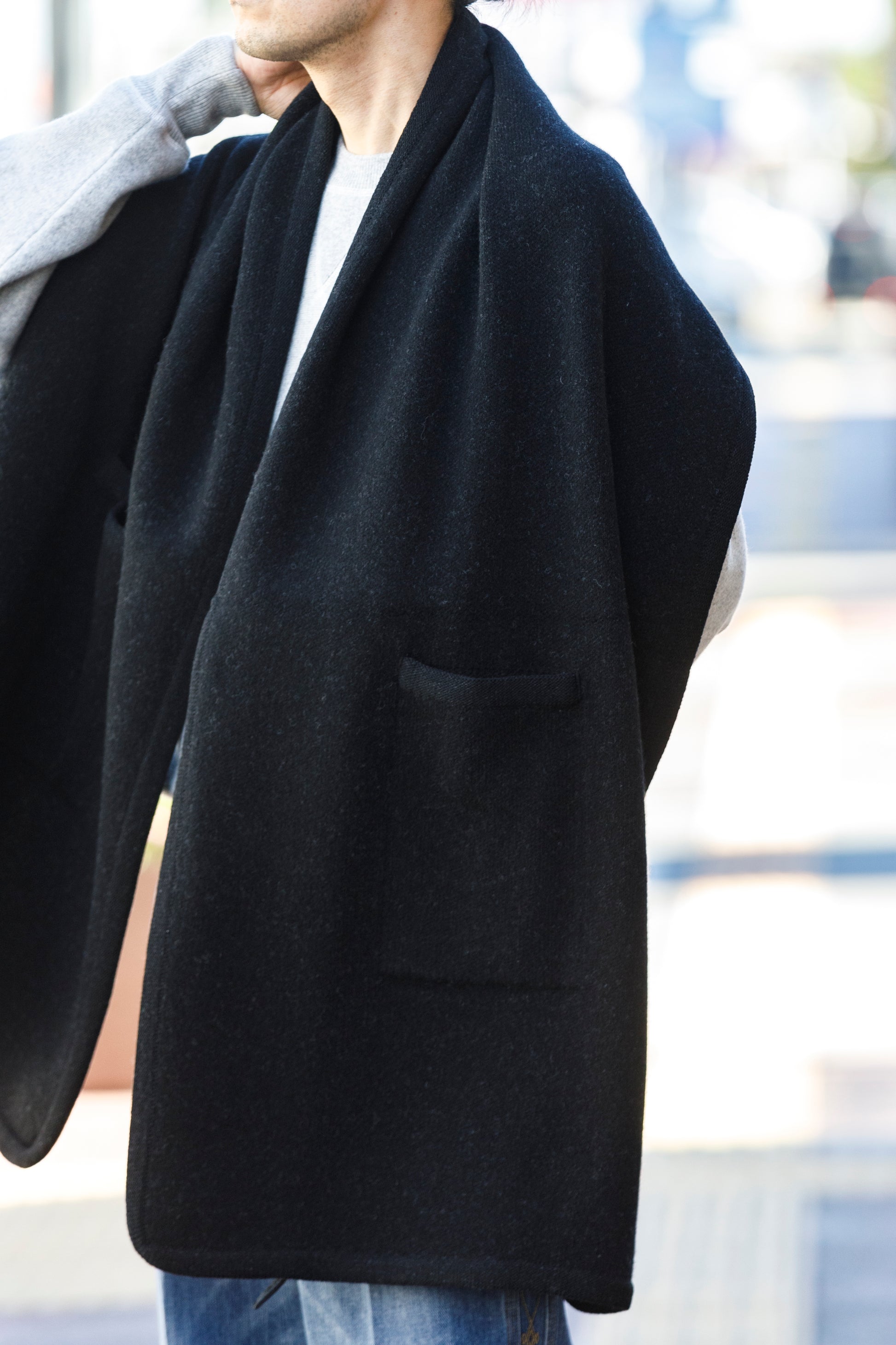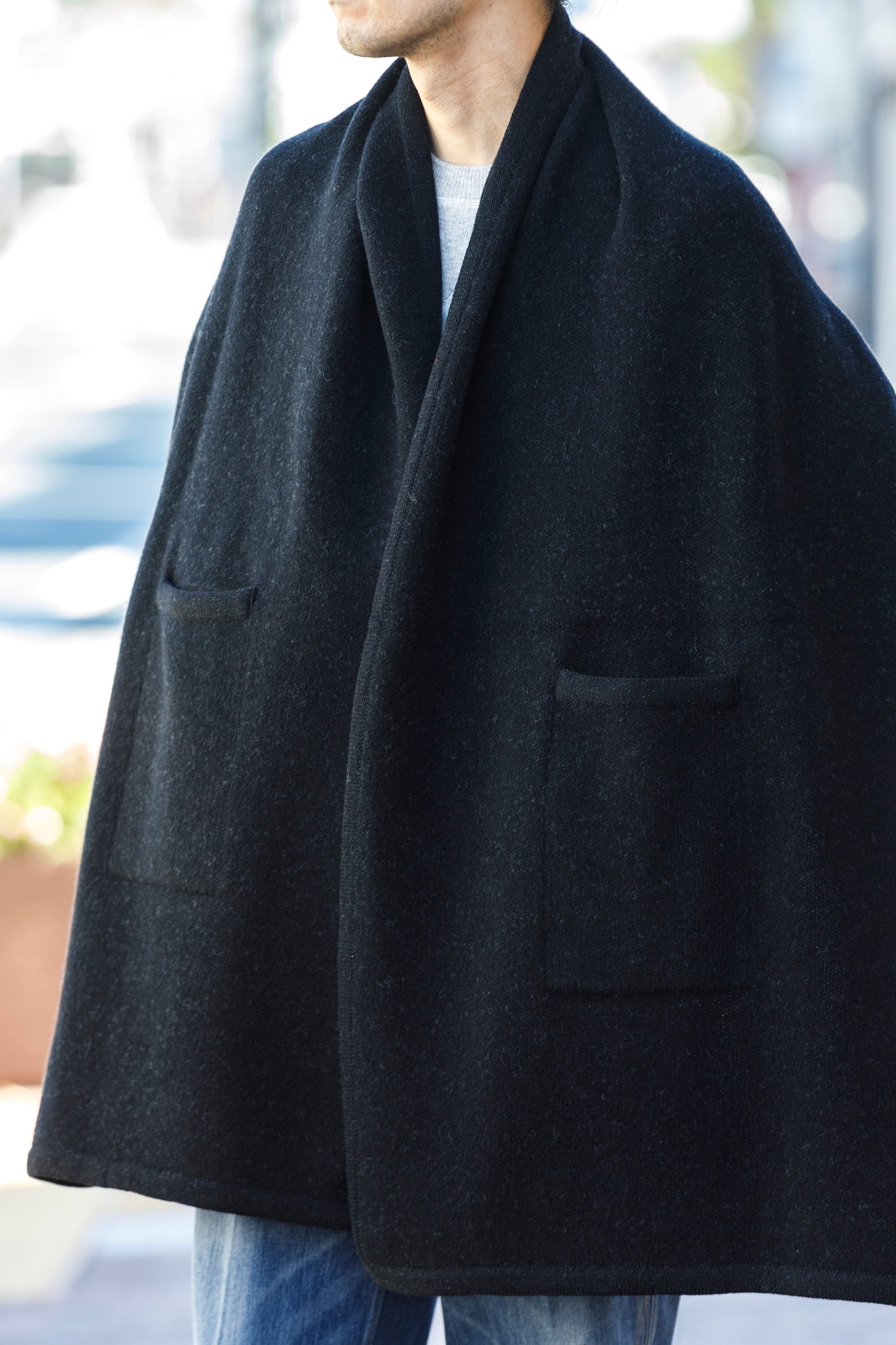 大判のストールにポケットを付けて軽めの羽織アウターのような提案でリリースされた、Felting Wool Over Stole - Chacoal。