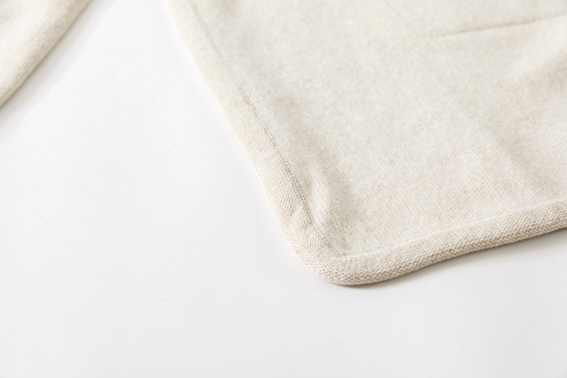 7Gと肉厚な生地に縮絨加工をすることで、保温性の高さと軽さに加えしなやかな質感を備えたファブリックに仕上がりました。