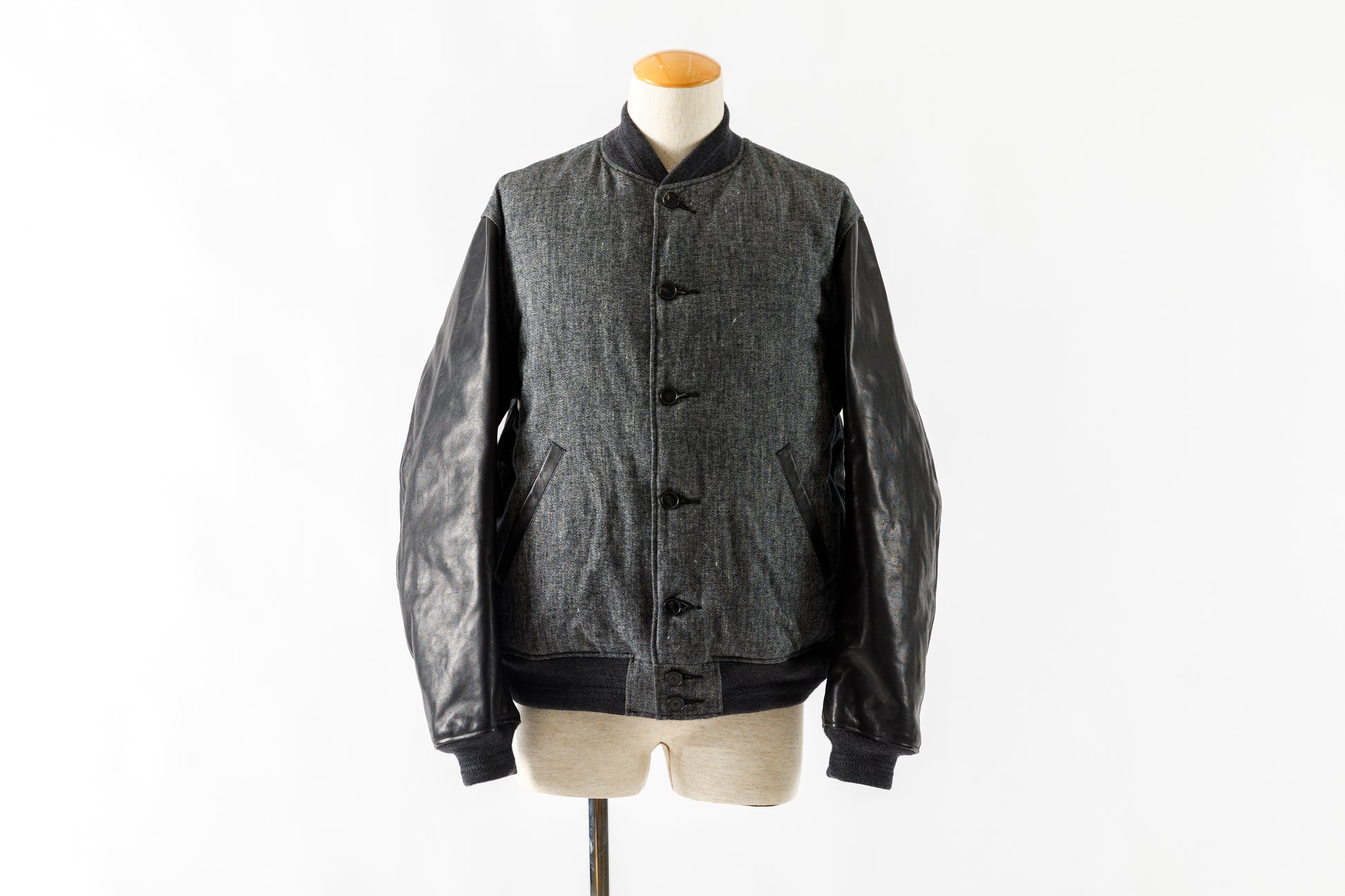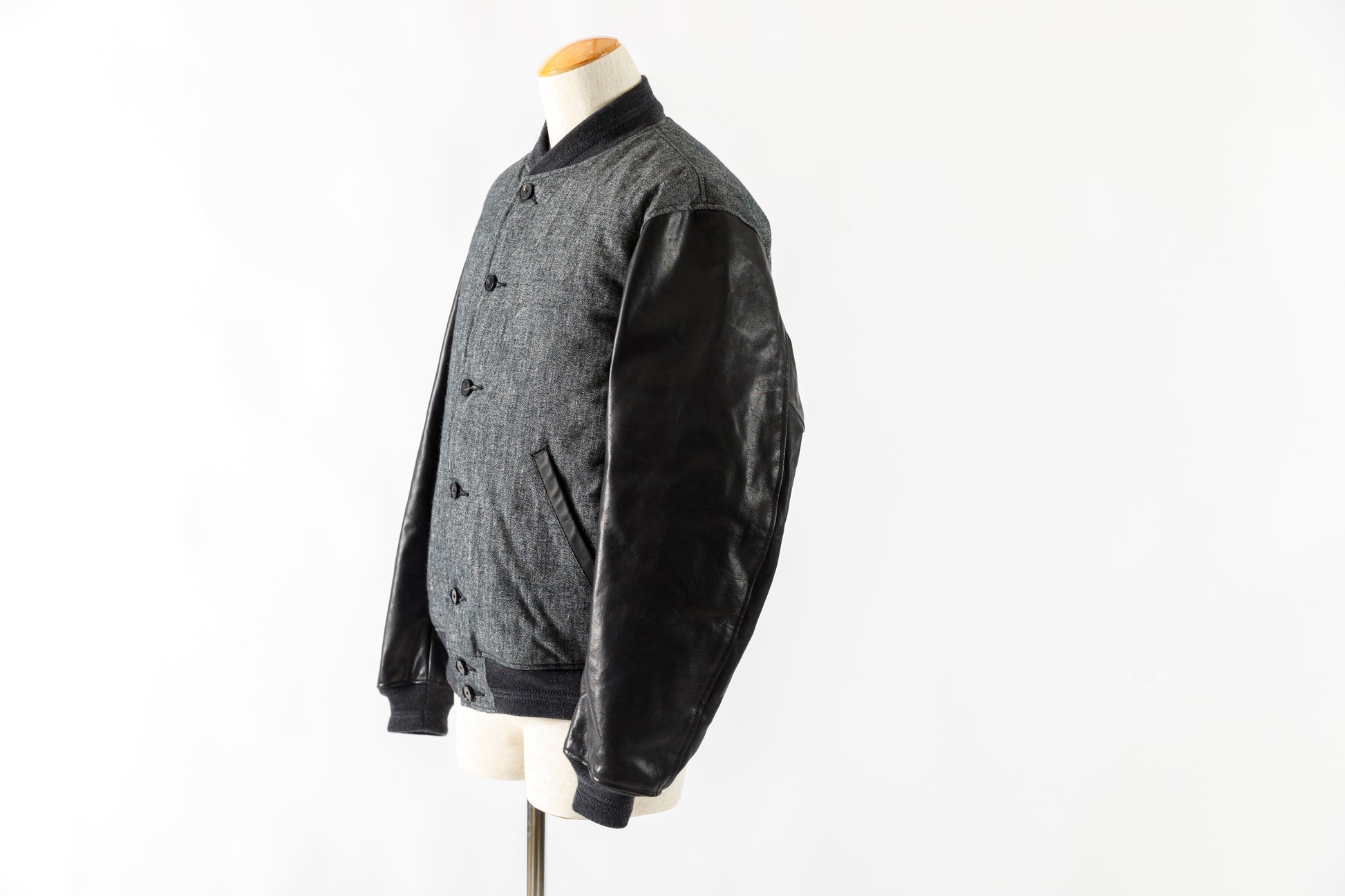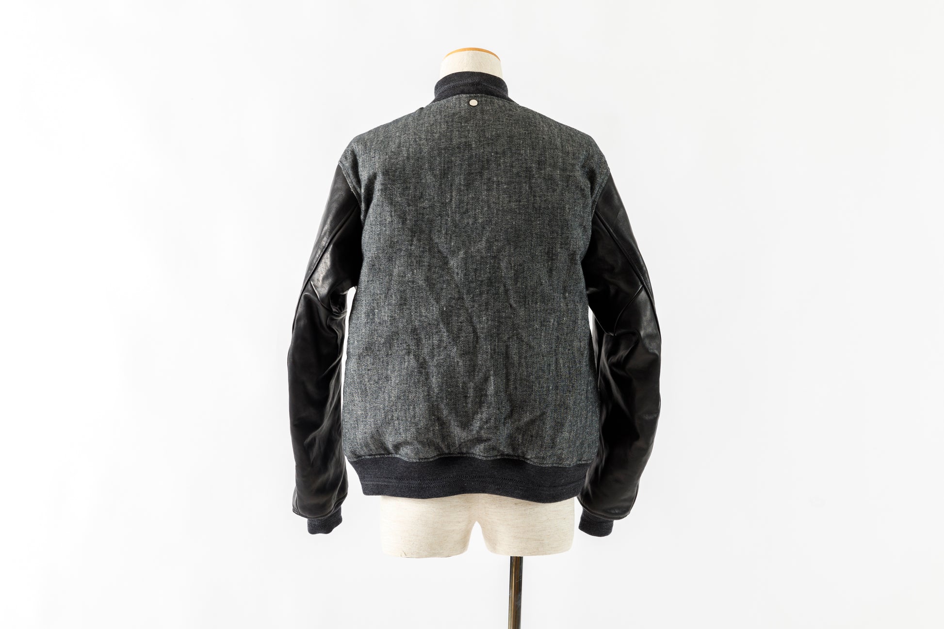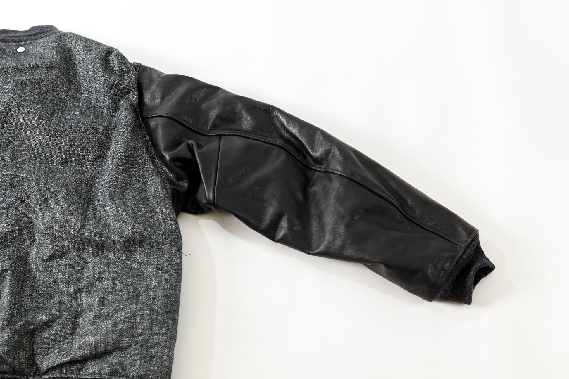 AWARD JACKET(スタジャン)をモチーフに表情のある生地と上質なレザーを用いモダンな印象に仕上がった、DOWN AWARD JACKET - Black。
