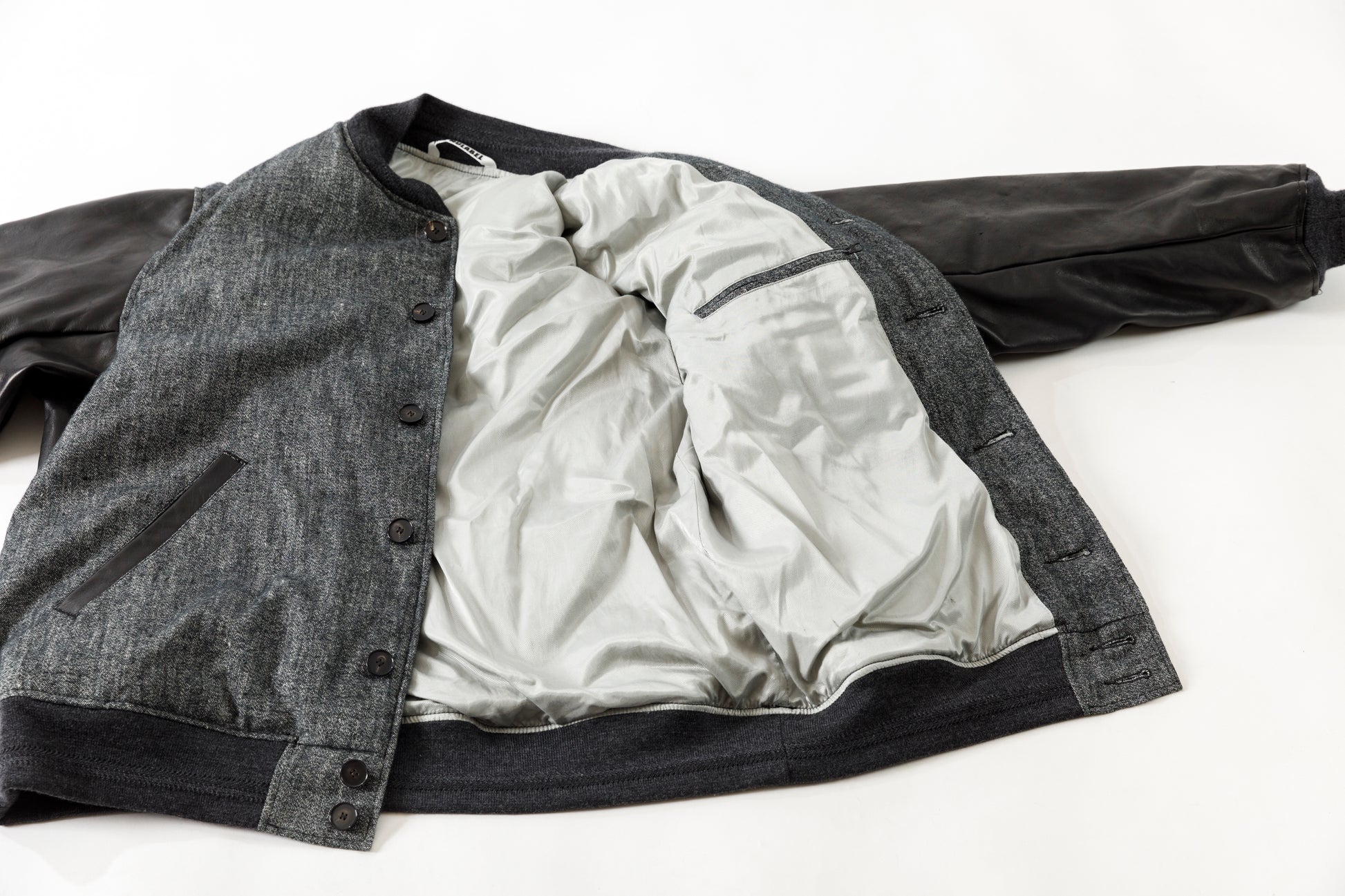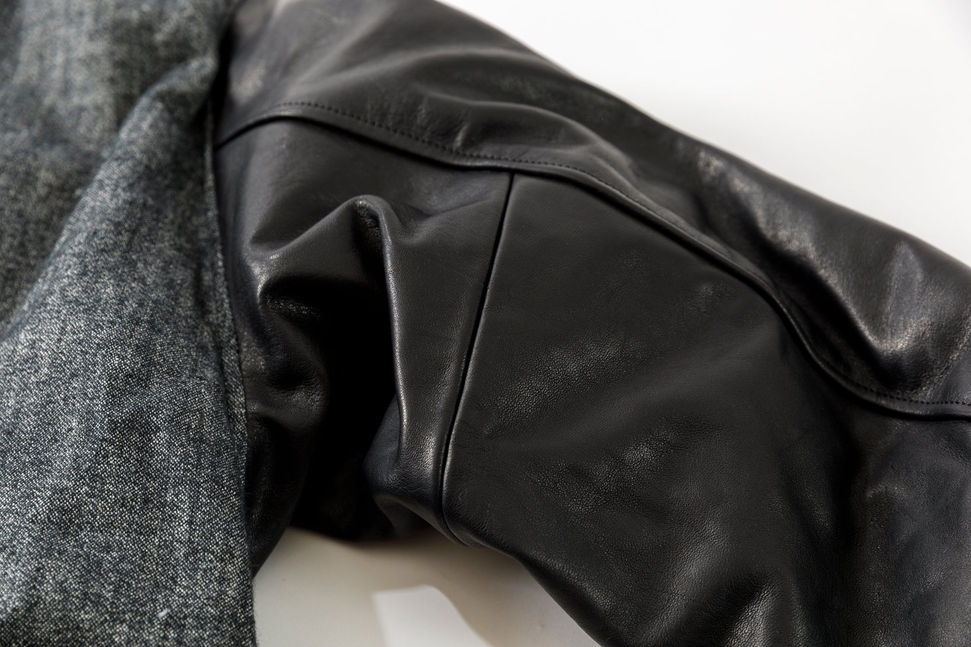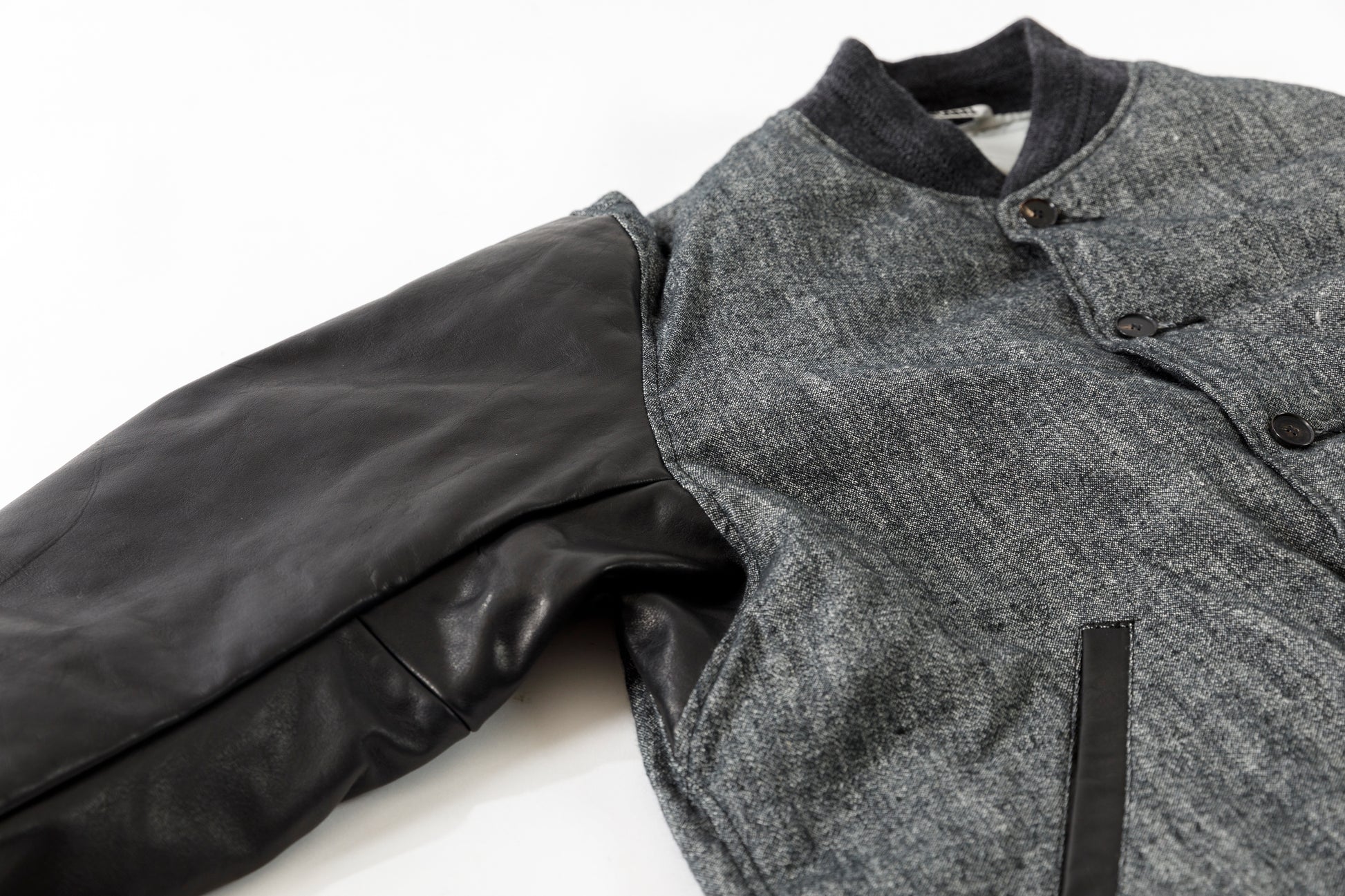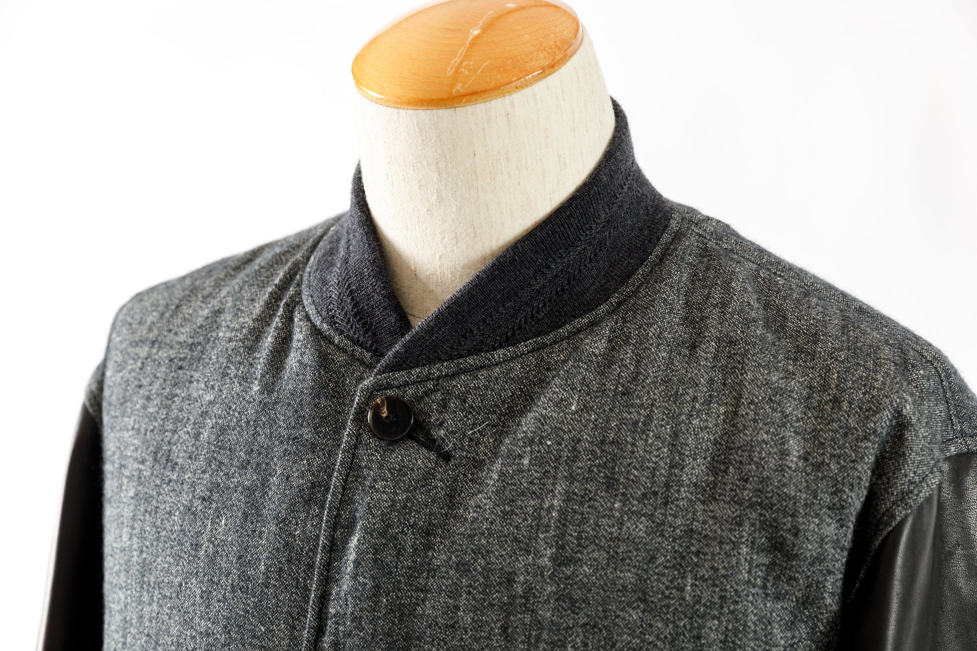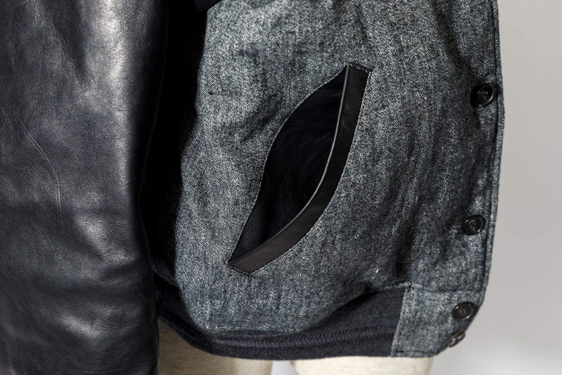 AWARD JACKET(スタジャン)をモチーフに表情のある生地と上質なレザーを用いモダンな印象に仕上がった、DOWN AWARD JACKET - Black。