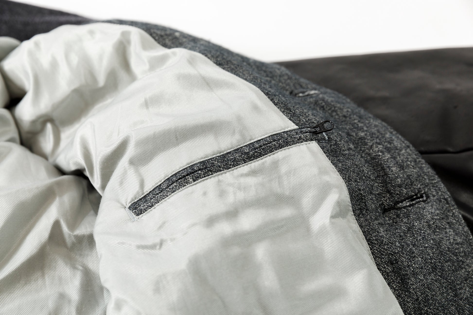 ボディに使用された生地はリネン69%、31%ウールの混率。
