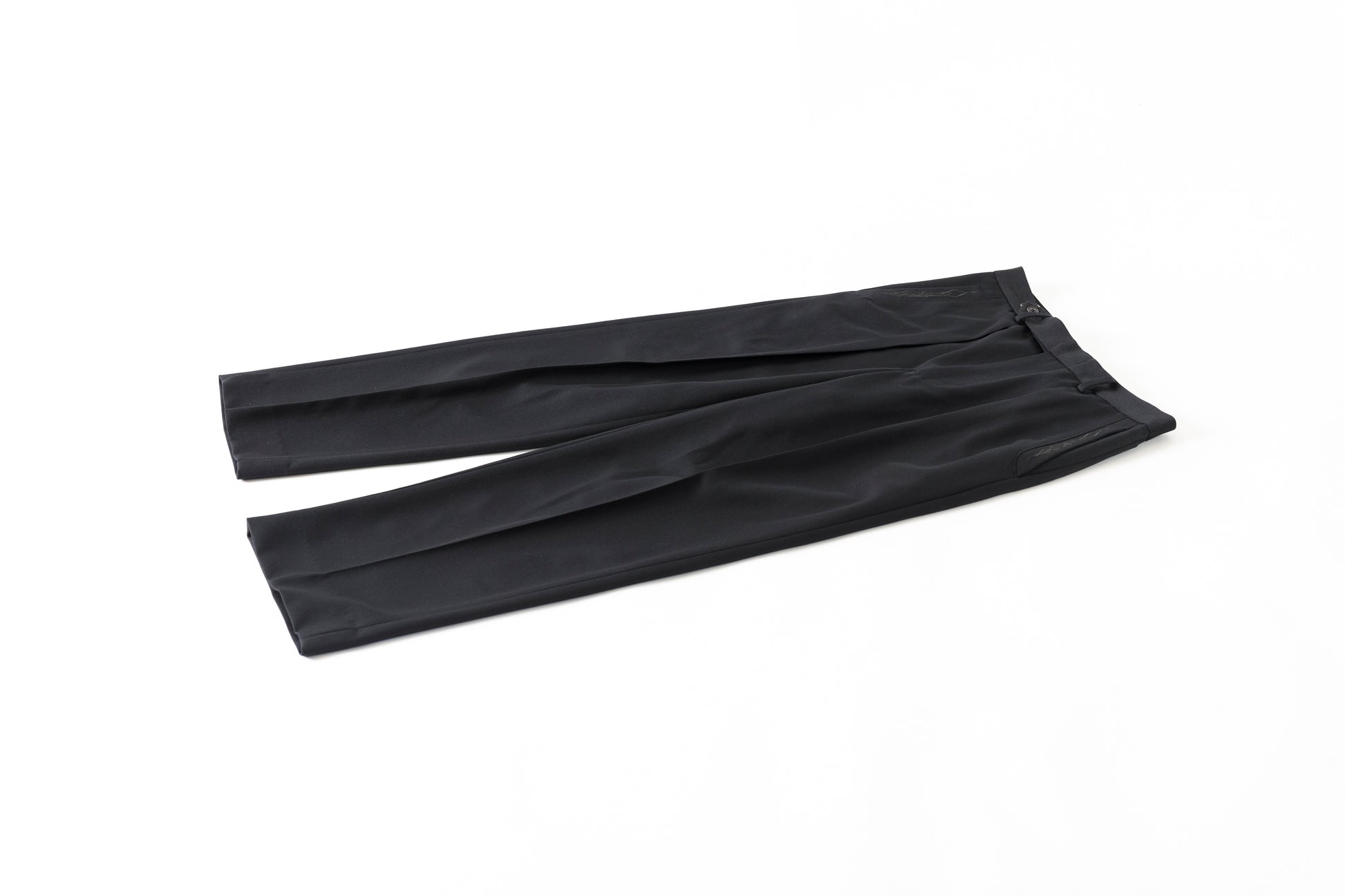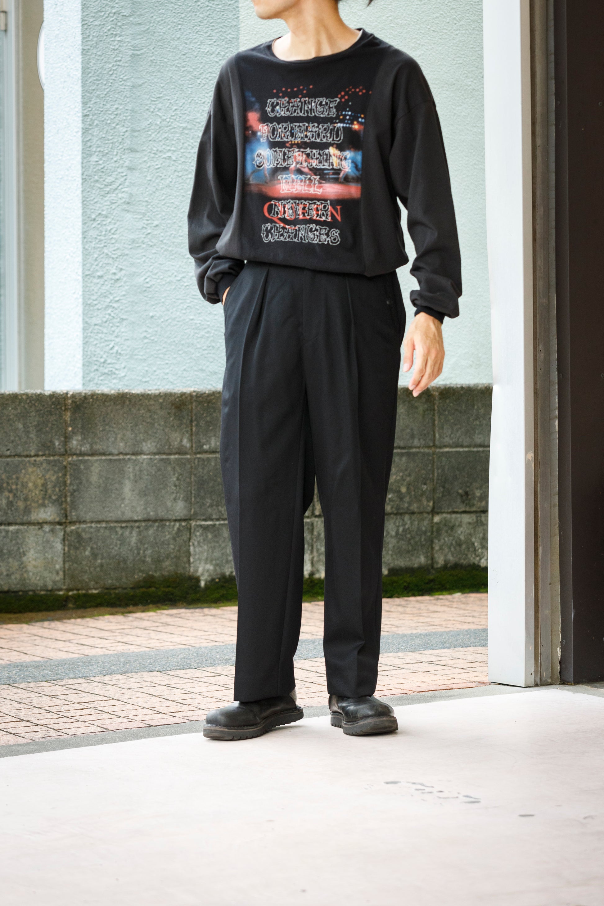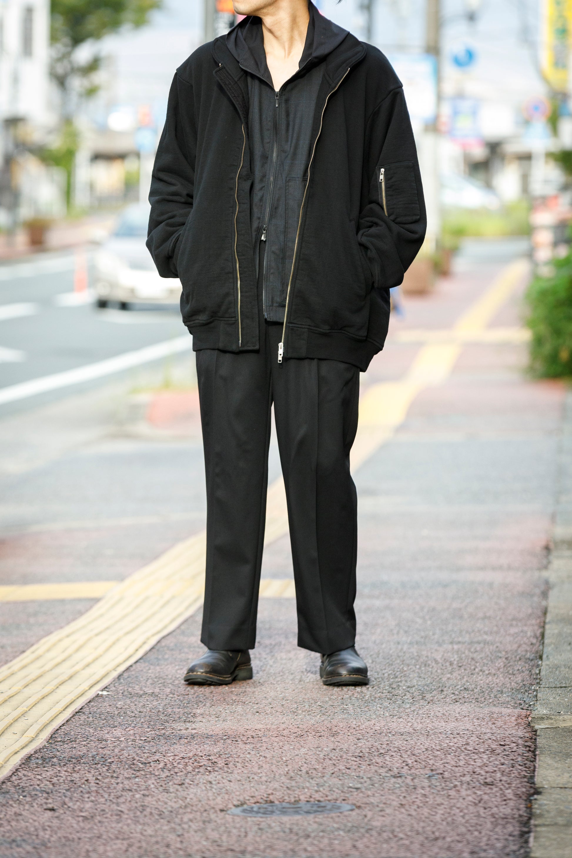 SARTOが提案するウールギャバジンのワイドスラックス品番、TUCKER EMBROIDERY SLACKS - BLACK。