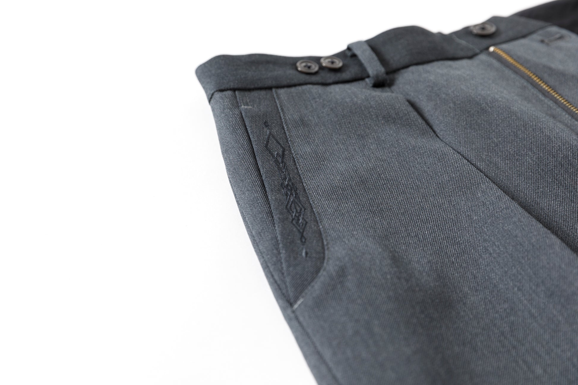 SARTO / 252-11001 TUCKER EMBROIDERY SLACKS(HIGH TWIST WOOL GABADINE) - CHACOAL