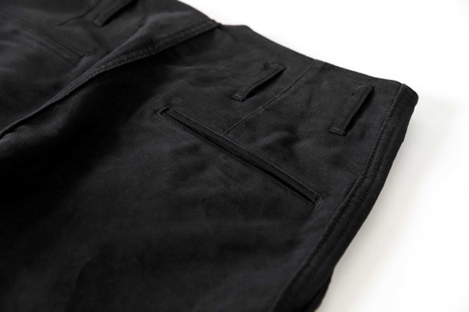 ユーロビンテージのブラックモールスキンのイメージに近い、コシのとれた柔らかな着用感。