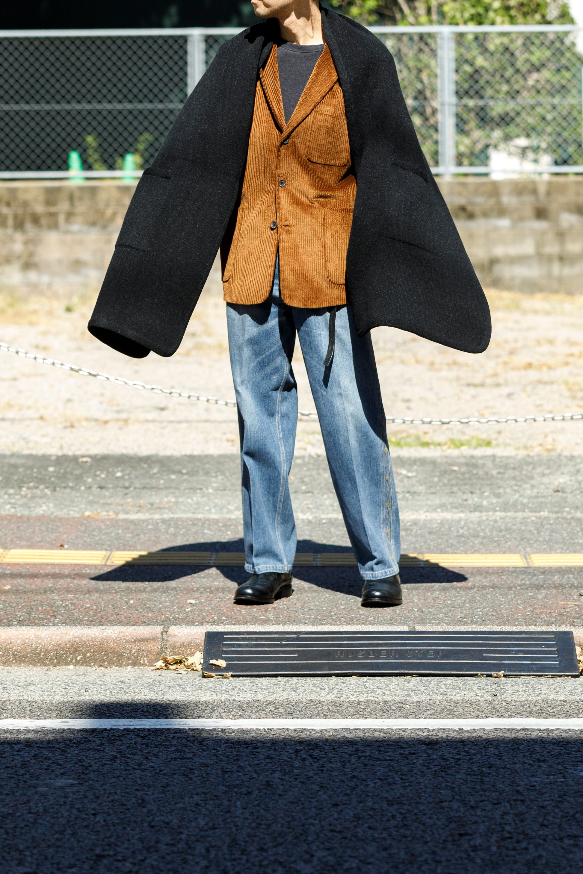 かっちりしたジャストサイズのジャケットではなく、少し緩めにカジュアル着として取り入れられるシルエットバランス。