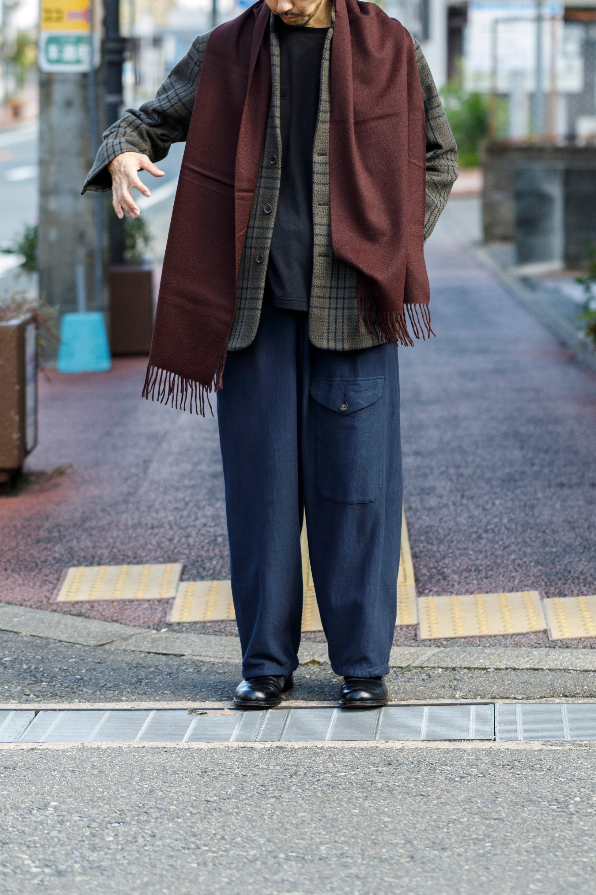 かっちりしたジャストサイズのジャケットではなく、少し緩めにカジュアル着として取り入れられるシルエットバランス。
