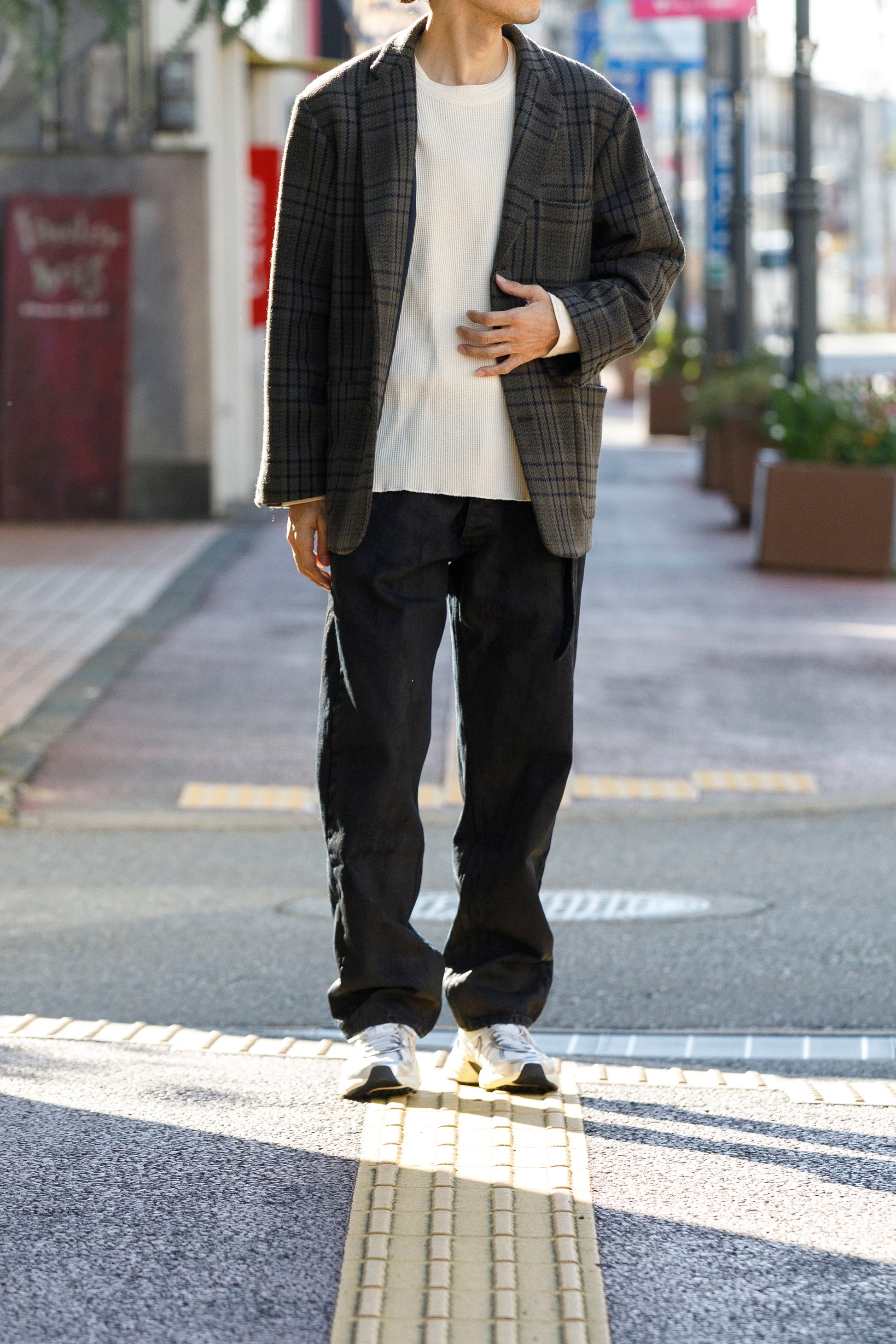 太すぎず細すぎず、革靴かスニーカーまで履き馴染みの良いベーシック型の形です。