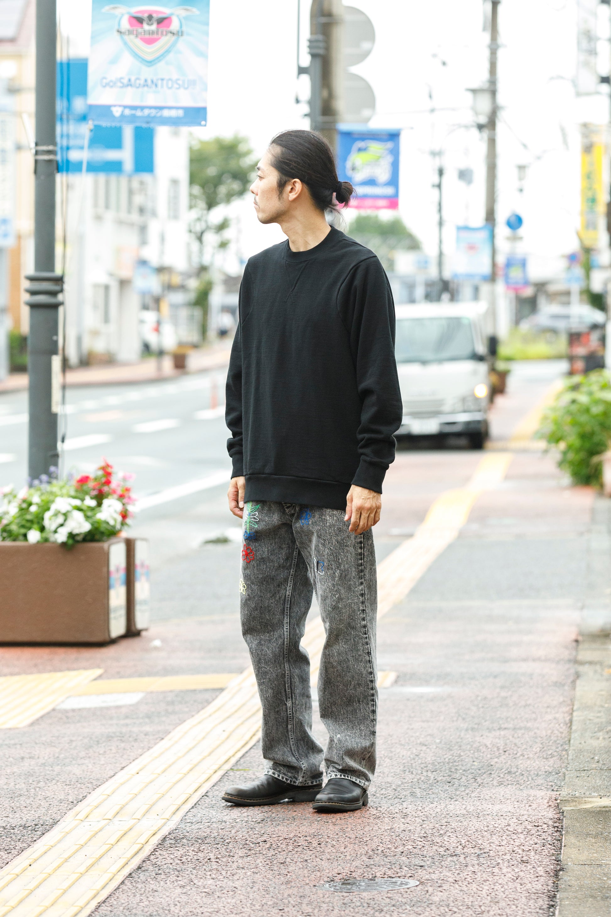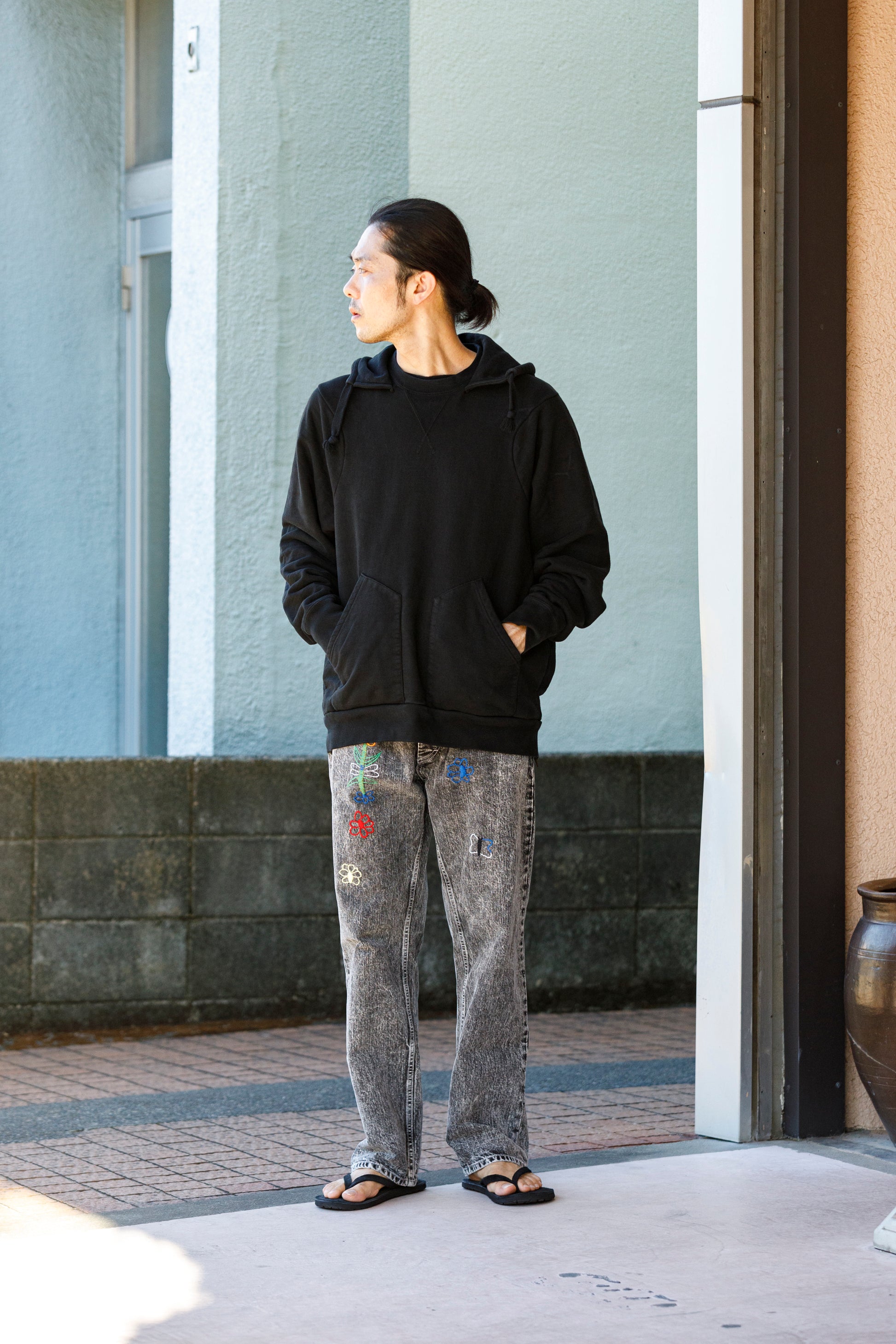 太すぎず細すぎず履き馴染みの良いモデルに、ケミカル加工と刺繍によって気分の上がる1本ができあがったと思います。