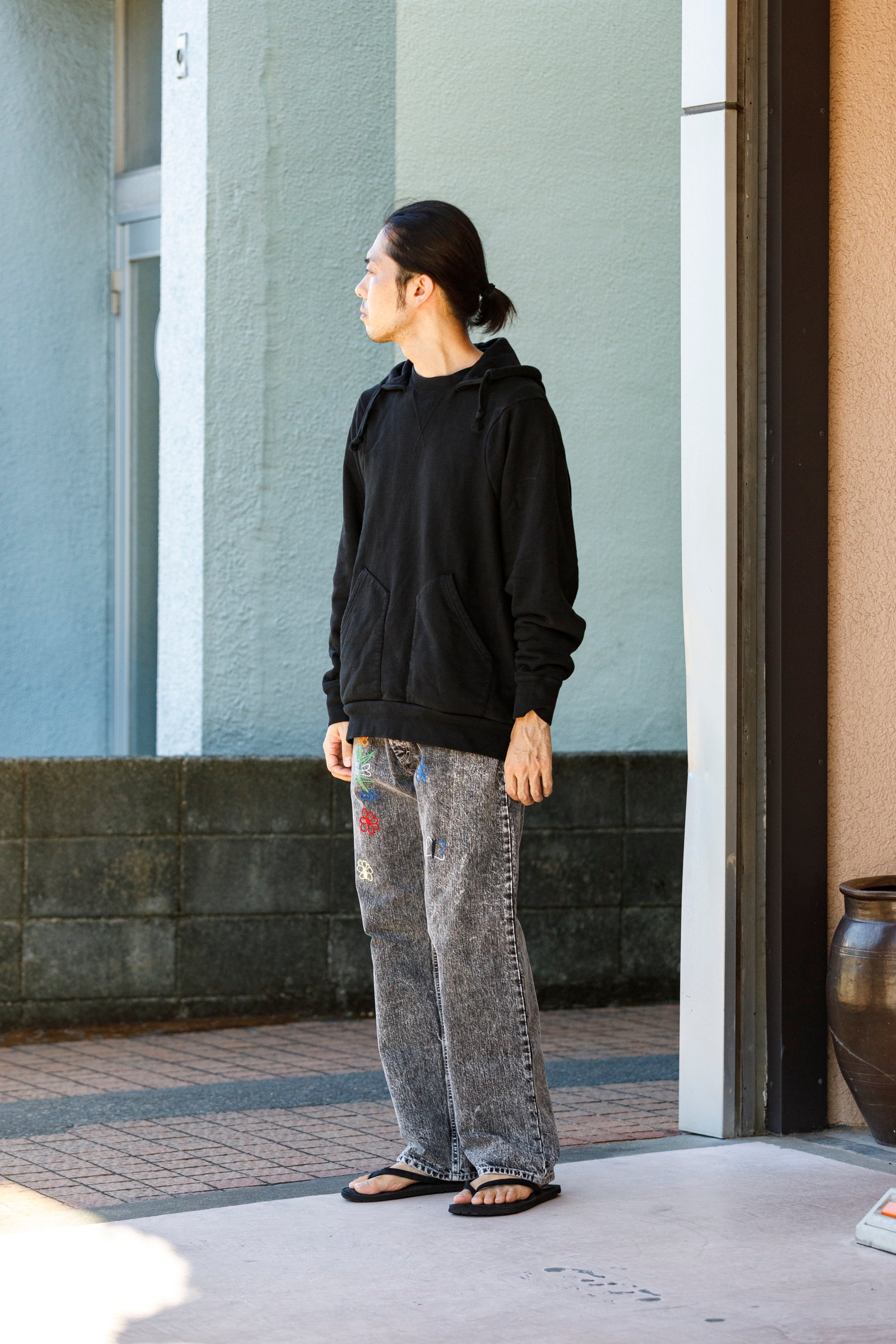 その中で2025SSにインラインでリリースされていた、刺繍のインディゴデニム(インディゴ)をこちらも今季リリースされていたブラックデニム(ケミカルウォッシュ)に変更し当店のみで作っていただいた、Y-004 "Chemical Black" Exclusive 刺繍モデル。