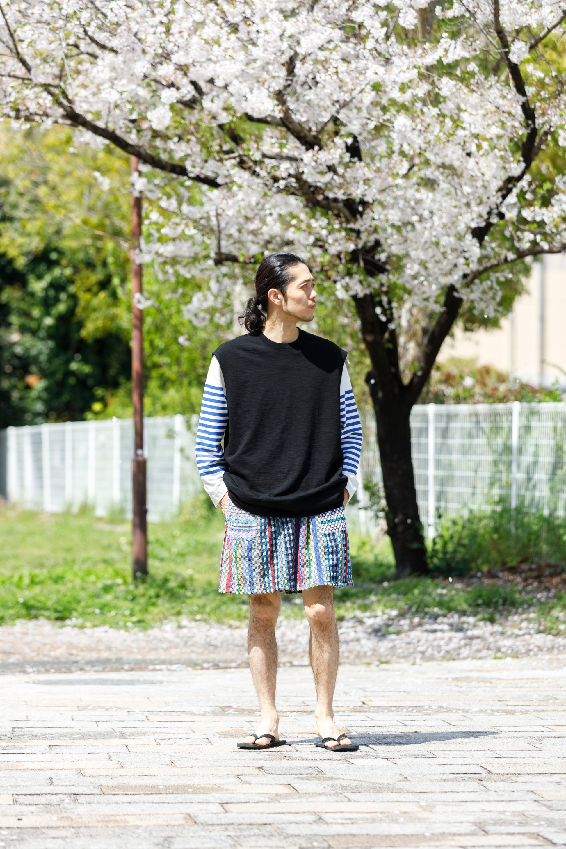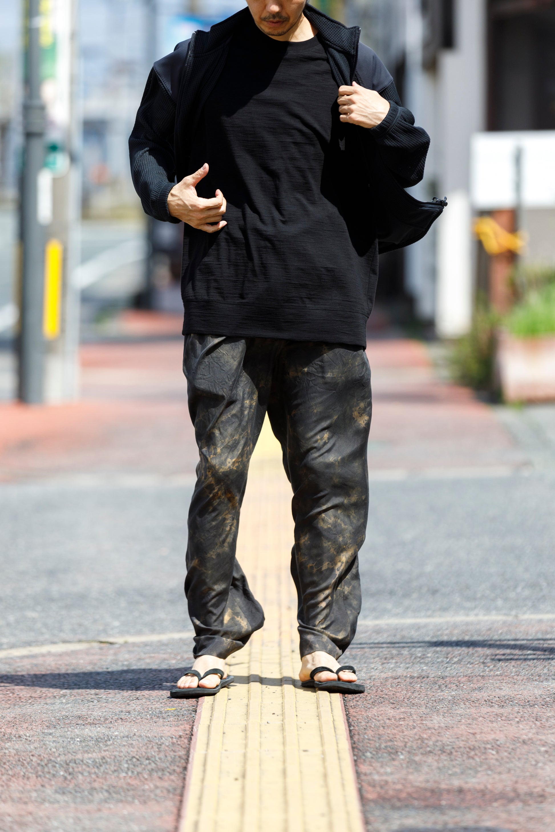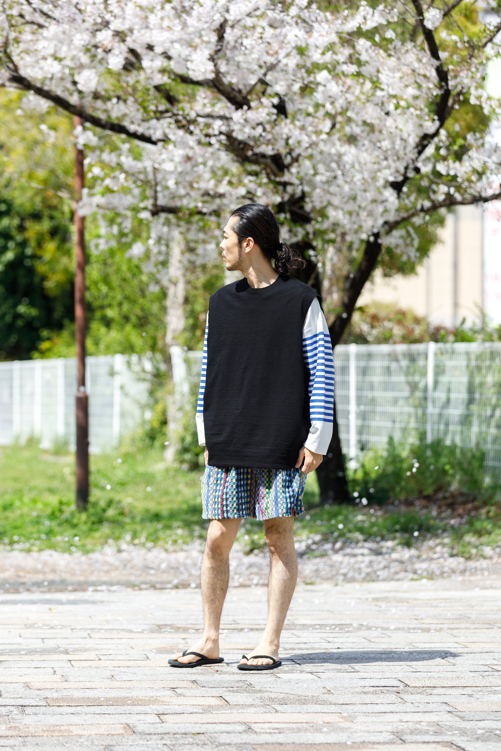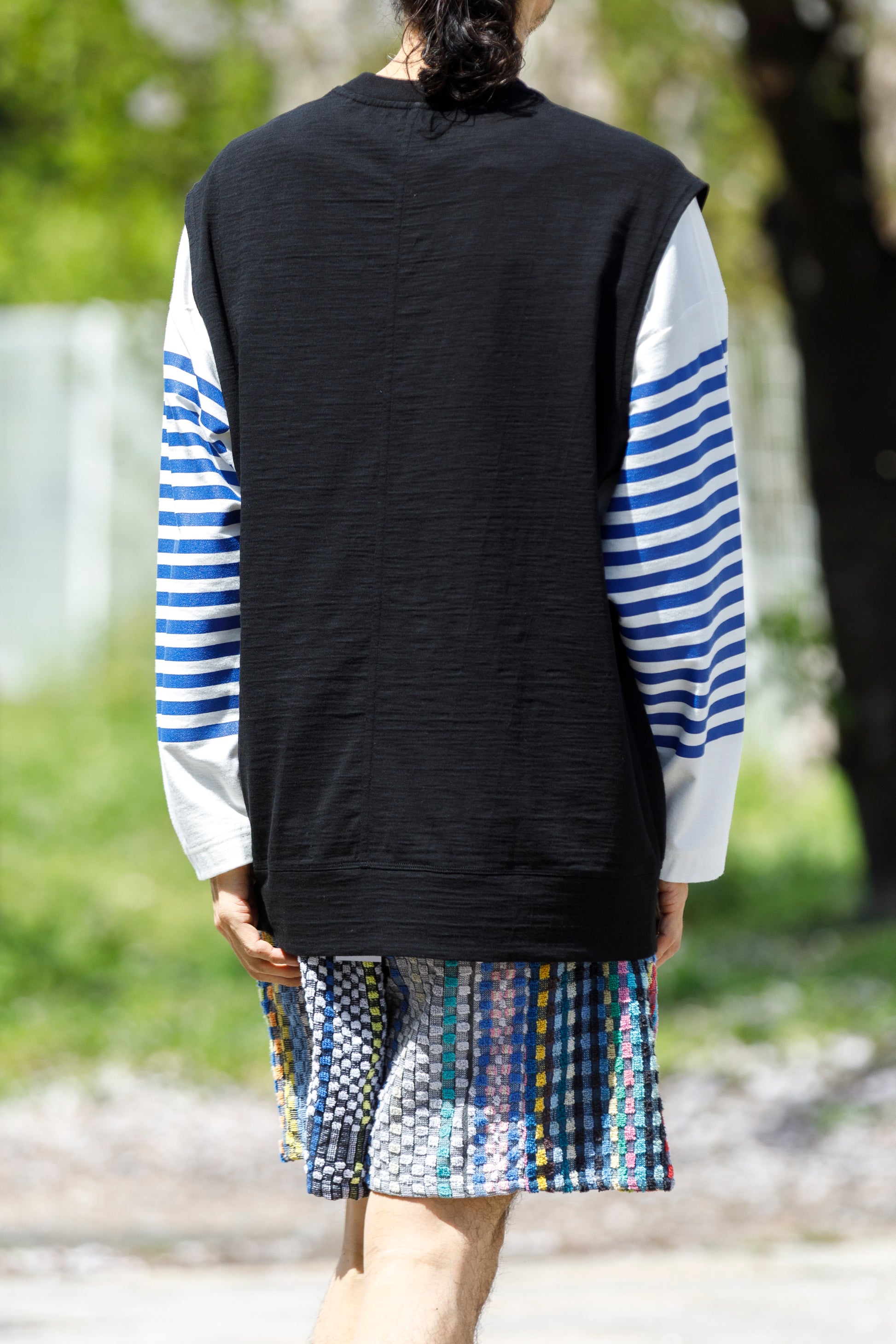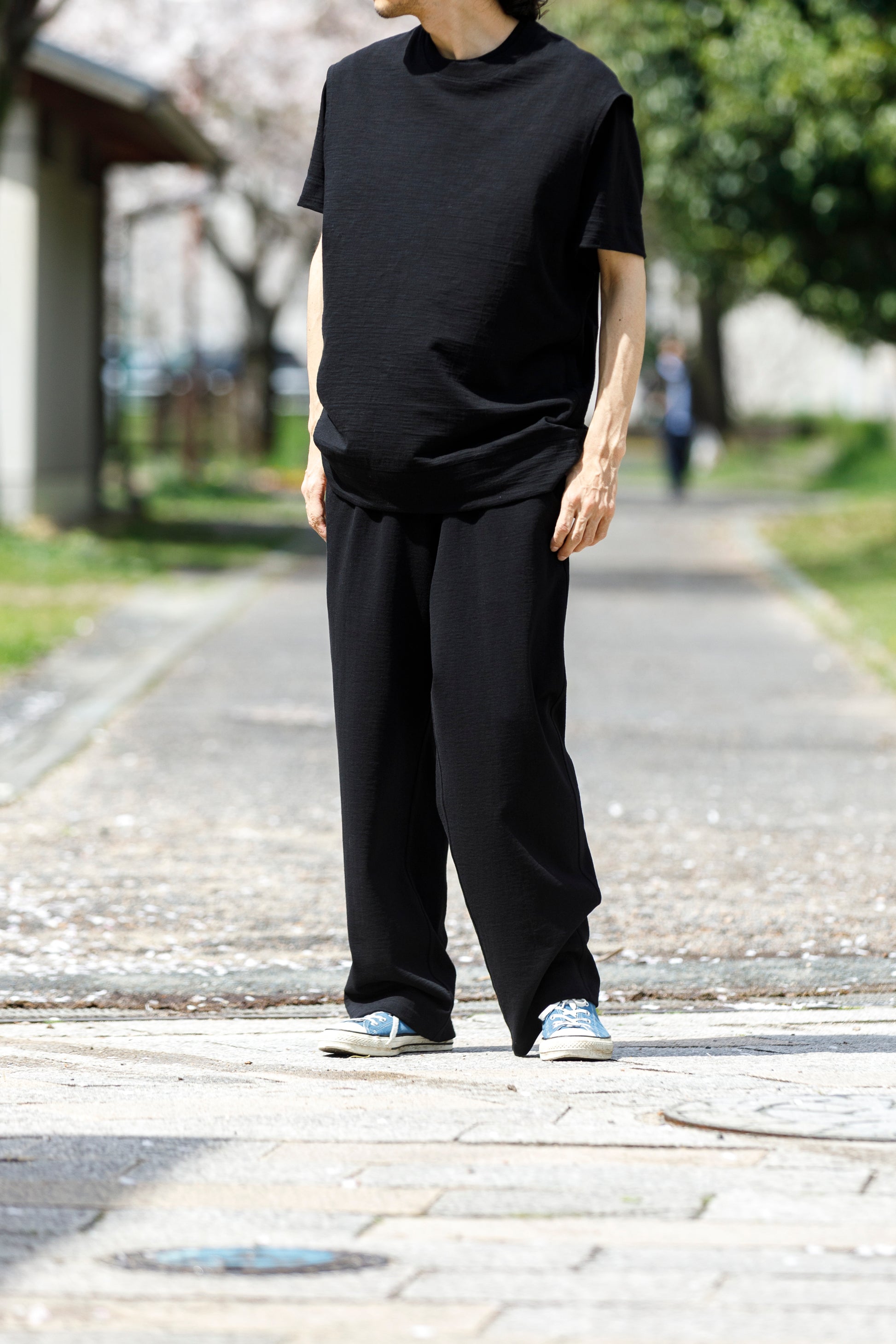 その生地で製作されたノースリーブシャツ品番、The Edge - Black。