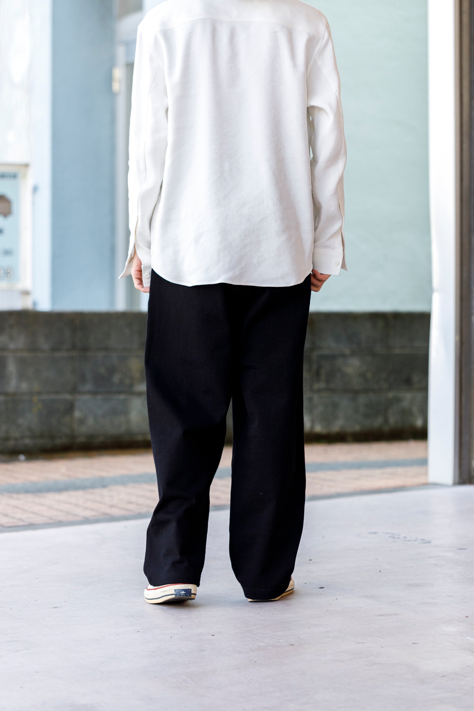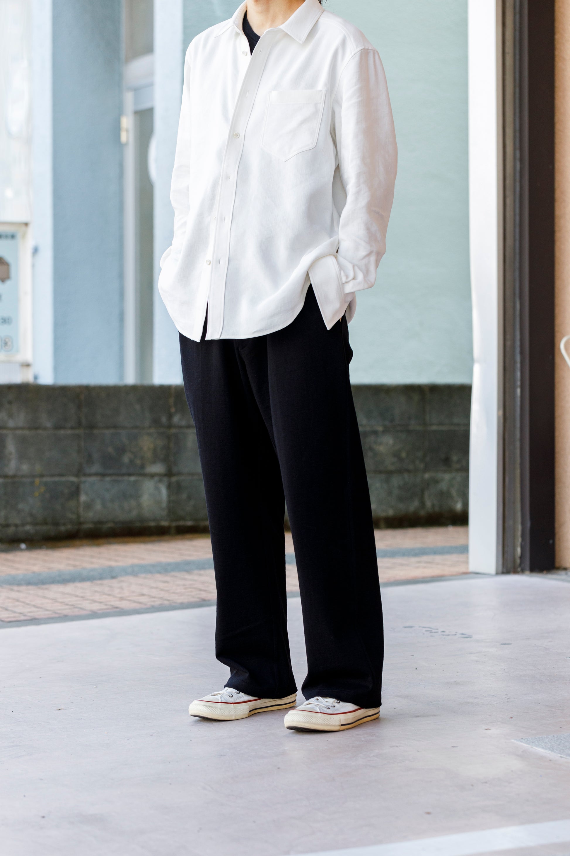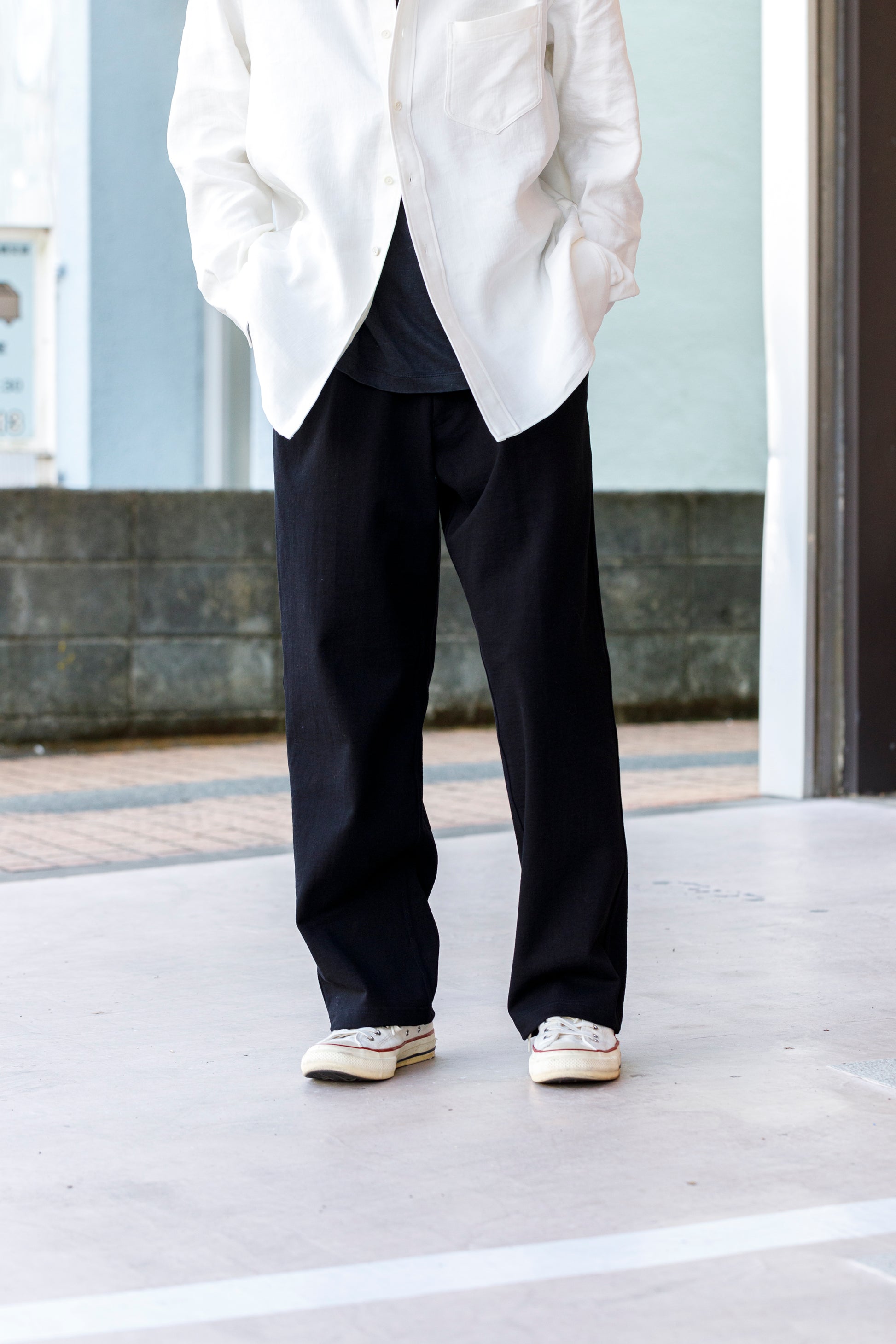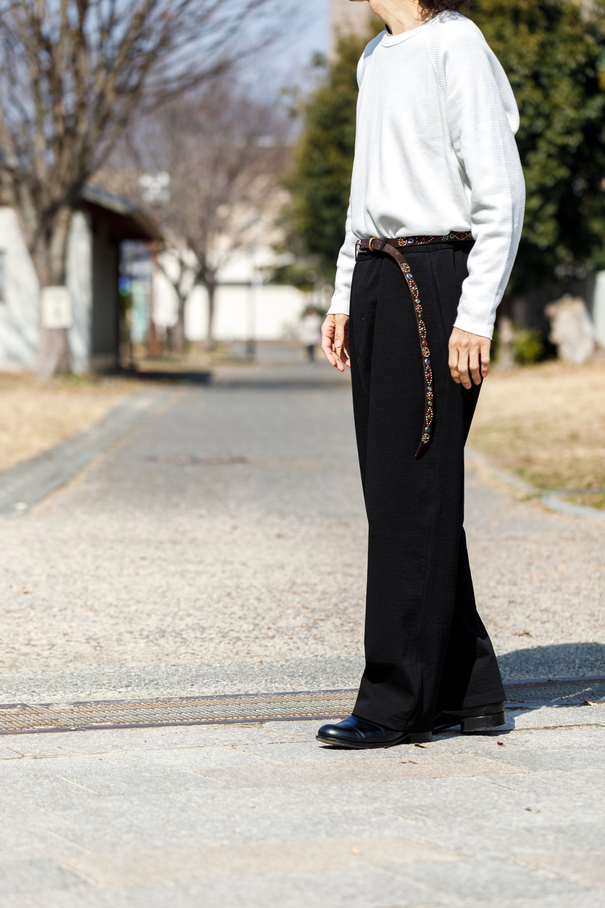 ベルトを付け、革靴を履いても上品に馴染みながら極めて快適な着用を備えた1本です。