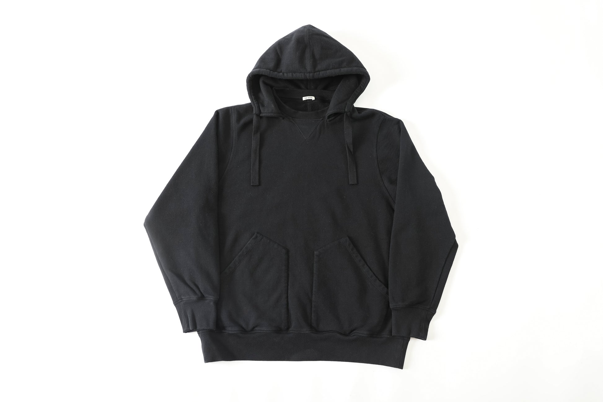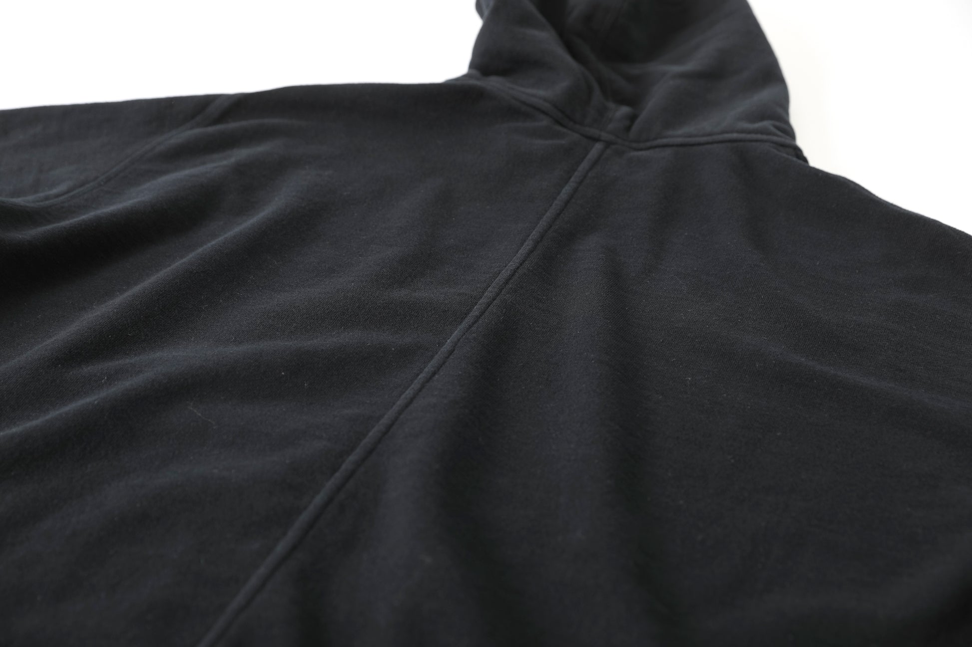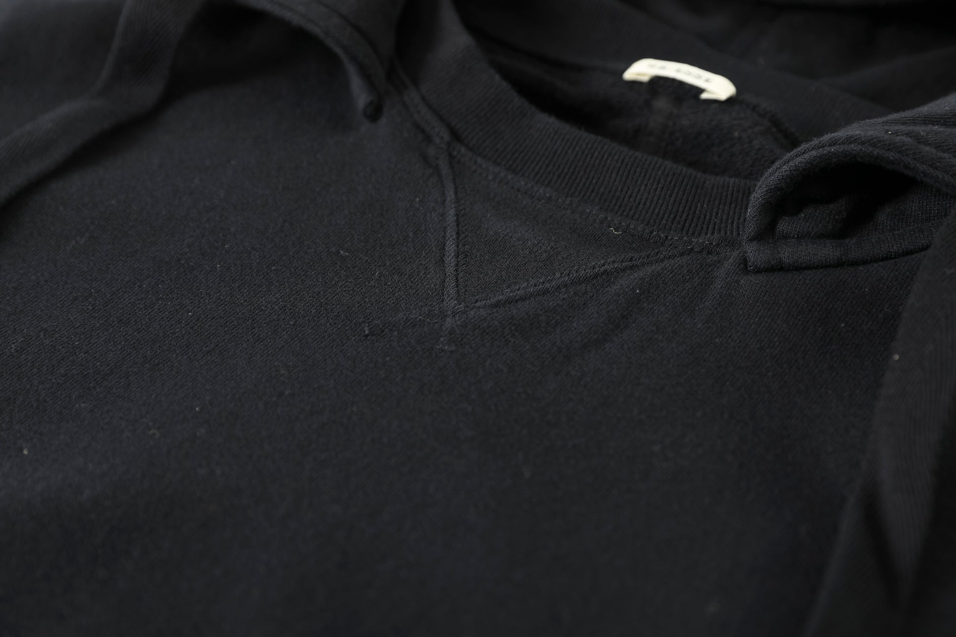 ビンテージのディティールを随所に取り入れ、生地の確かなポテンシャルを活かすために構成された後付けパーカー、WE003S01 The Hood - Black。