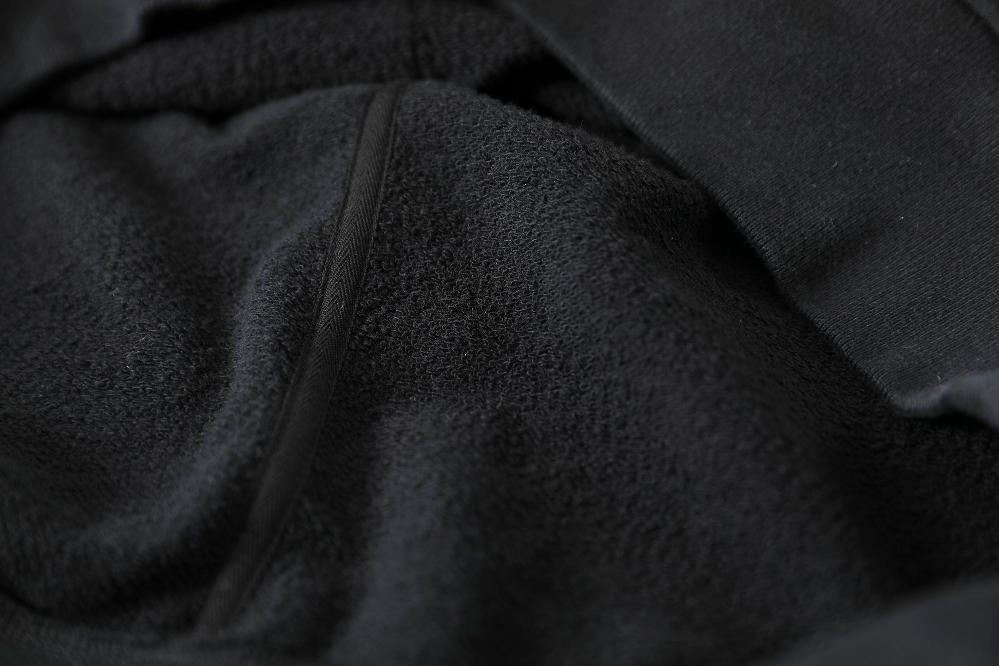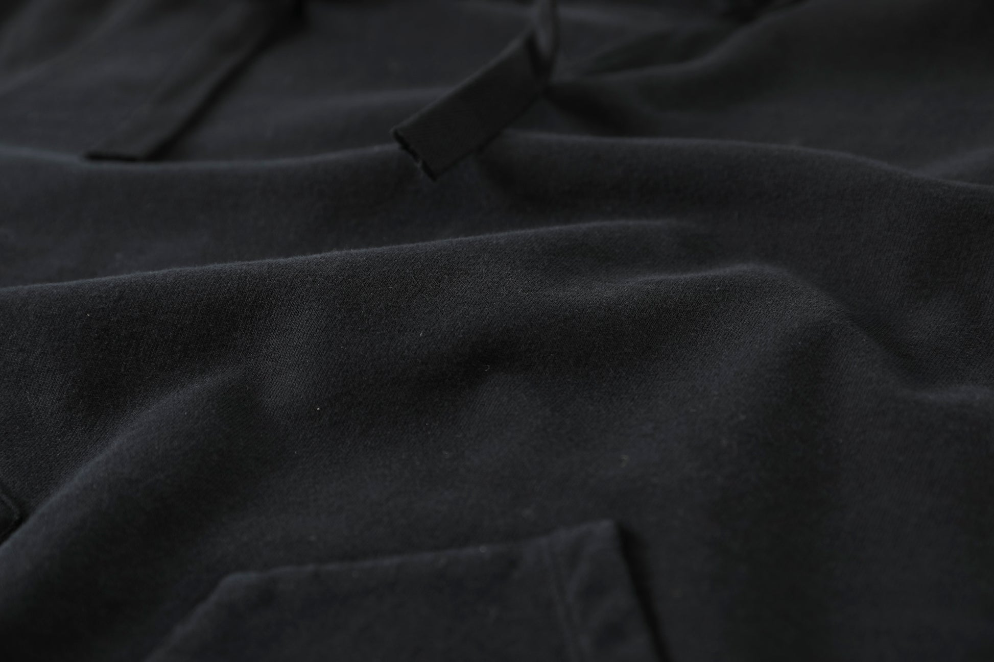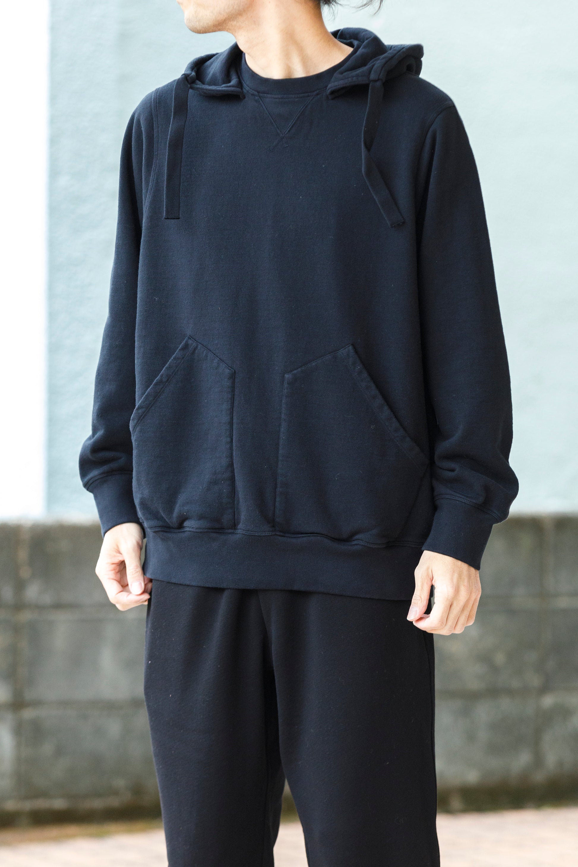 ビンテージのディティールを随所に取り入れ、生地の確かなポテンシャルを活かすために構成された後付けパーカー、WE003S01 The Hood - Black。