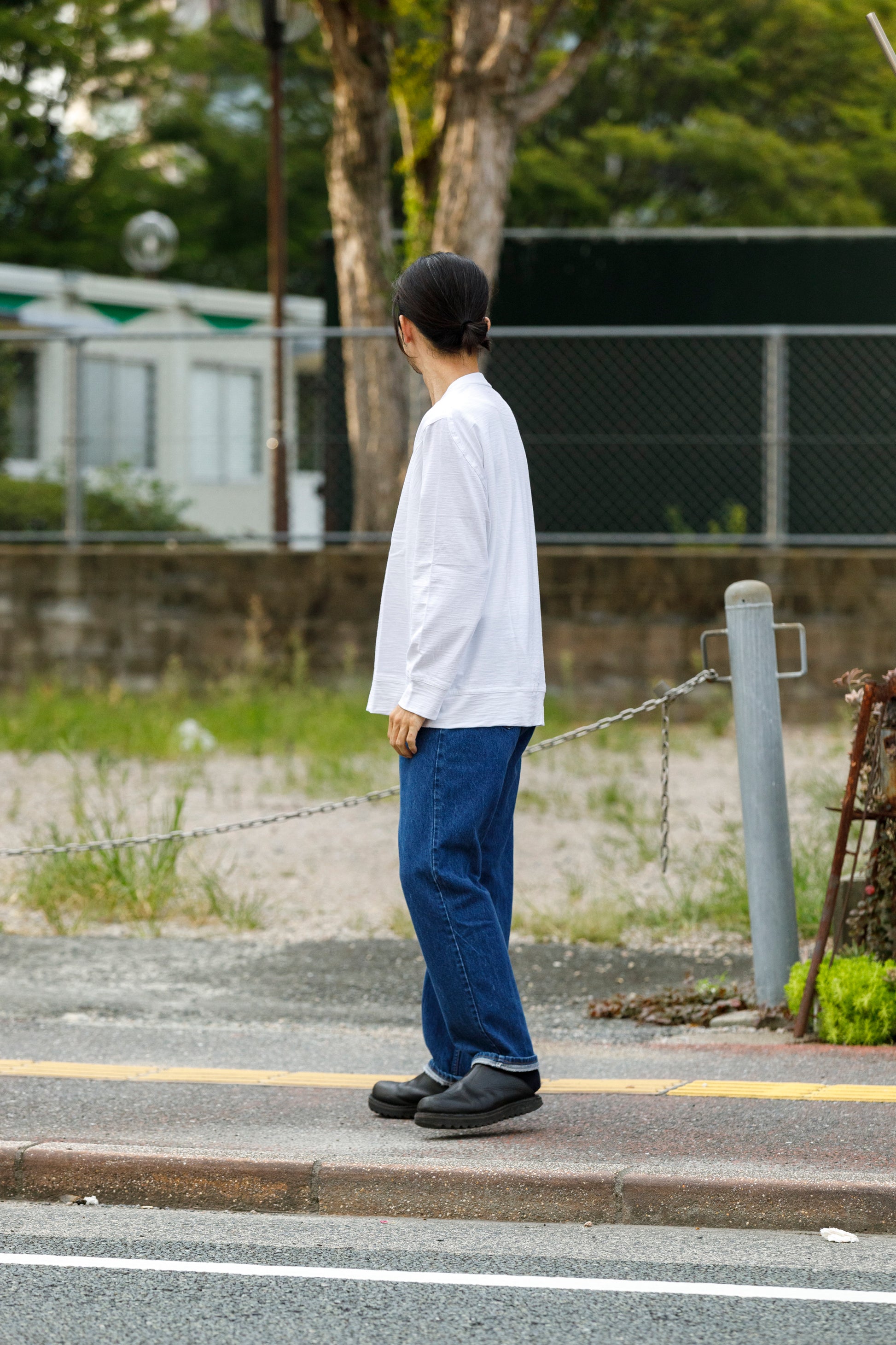 実際展示会時に100回ほど洗濯したサンプルを拝見しましたが、変な色落ちやヨレがなく、自分自身も別の商品を購入し週6で着用し洗濯を繰り返しましたが、劣化することなくむしろ洗濯することで生地本来ポテンシャルが発揮され、肌あたりと風合いが良くなってきました。